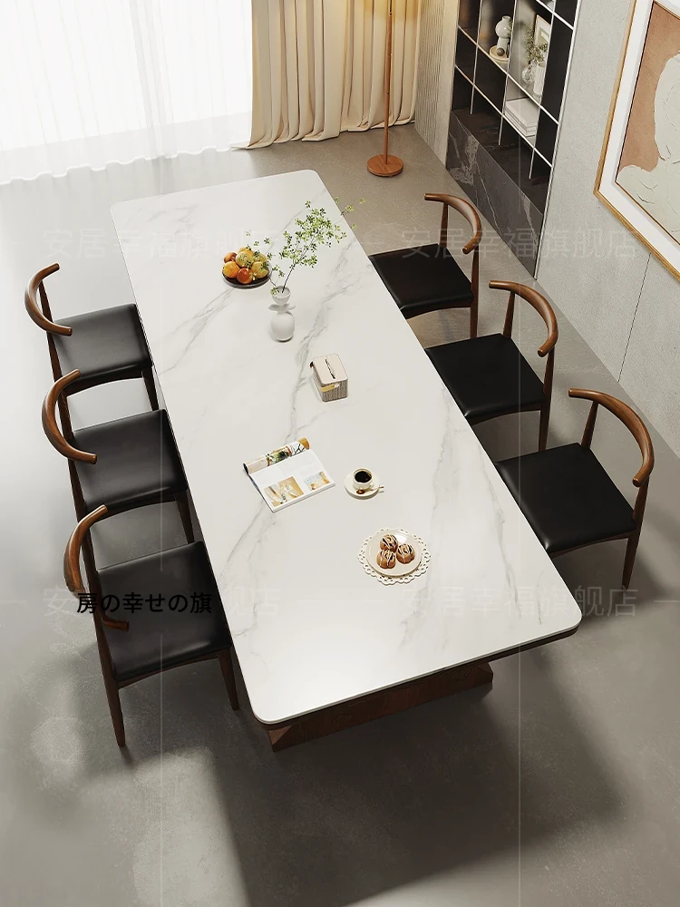 現代的シンプルなデザイン、無垢材製のウォールナット色ロングテーブル!イタリアンスタイルの極簡長方形岩板ダイニングテーブル、家庭用に最適。U字型の美しいフォルムで、食卓を華やかに演出します!