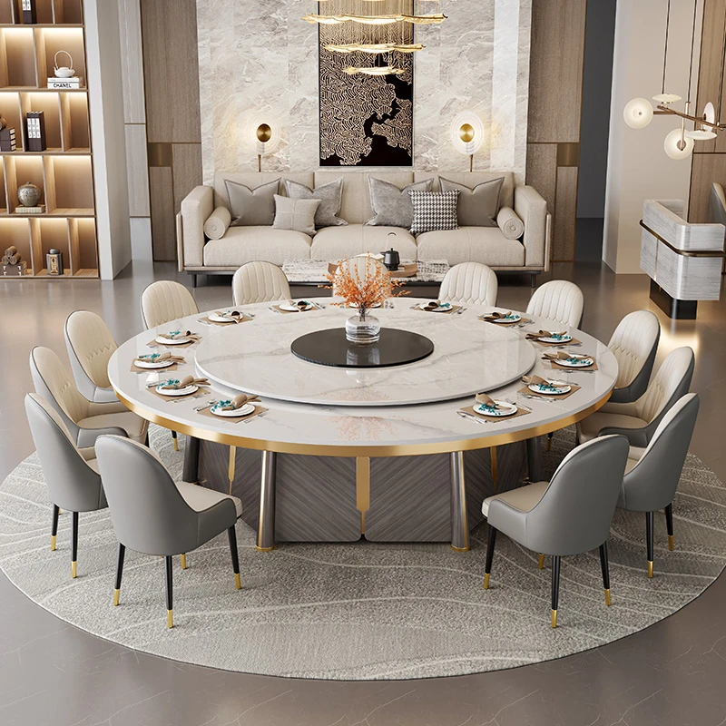 豪華な岩板電動ダイニングテーブル!ホテルの個室や商業レストランに最適。大人数向けの2/3メートルのラウンドテーブルで、15〜20人まで対応可能。特別なひとときを演出します!
