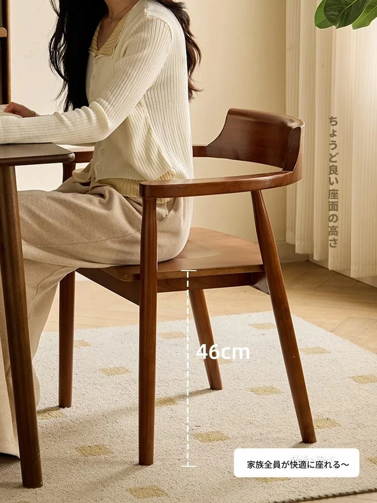 北欧風の天然木製ダイニングチェア|広島シュメイトのアームチェア|モダンでシンプル、リラックスできるカフェスタイルの家庭用椅子!