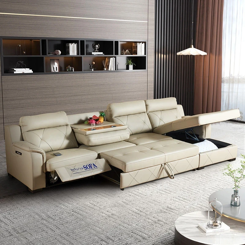 Luxury Space-Efficient Electric Sofa Bed - Modern Convertible Couch for Living Room with Automatic Stretching Function, Multi-Functional Straight Leather Sofa