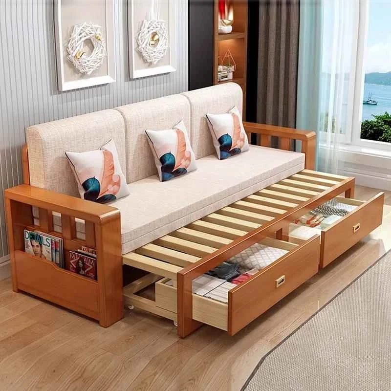 Free Shipping in Hong Kong: 2023 New Multi-Functional Solid Wood Folding Sofa Bed - Space-Saving Solution for Small Living Rooms!