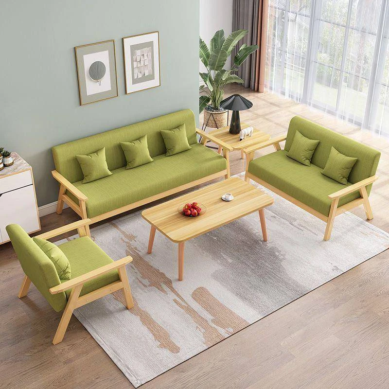 Modern Minimalist Solid Wood Sofa and Tea Table Set for Small Apartments – Stylish and Functional 3-Seater, Perfect for Renters and Compact Living Spaces!