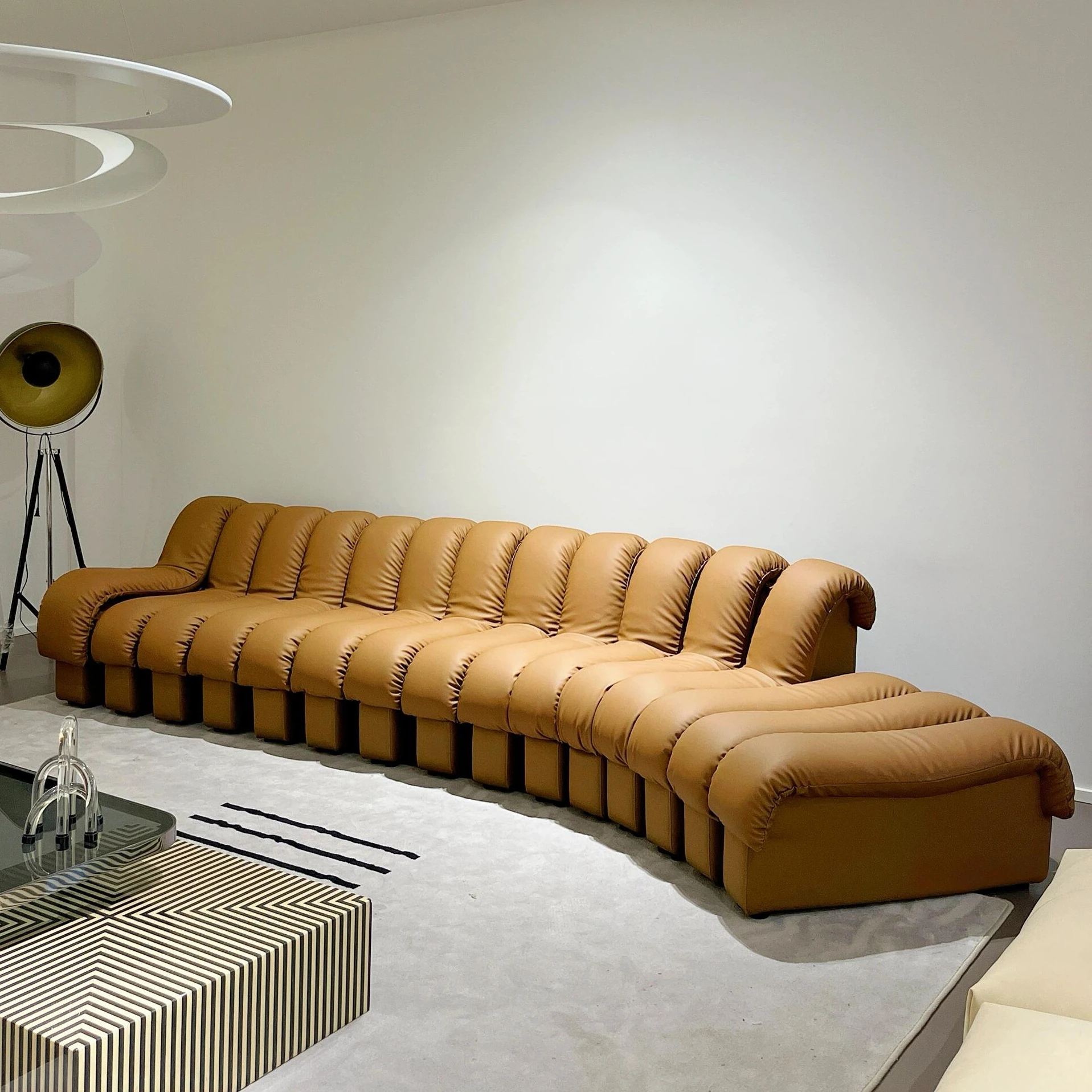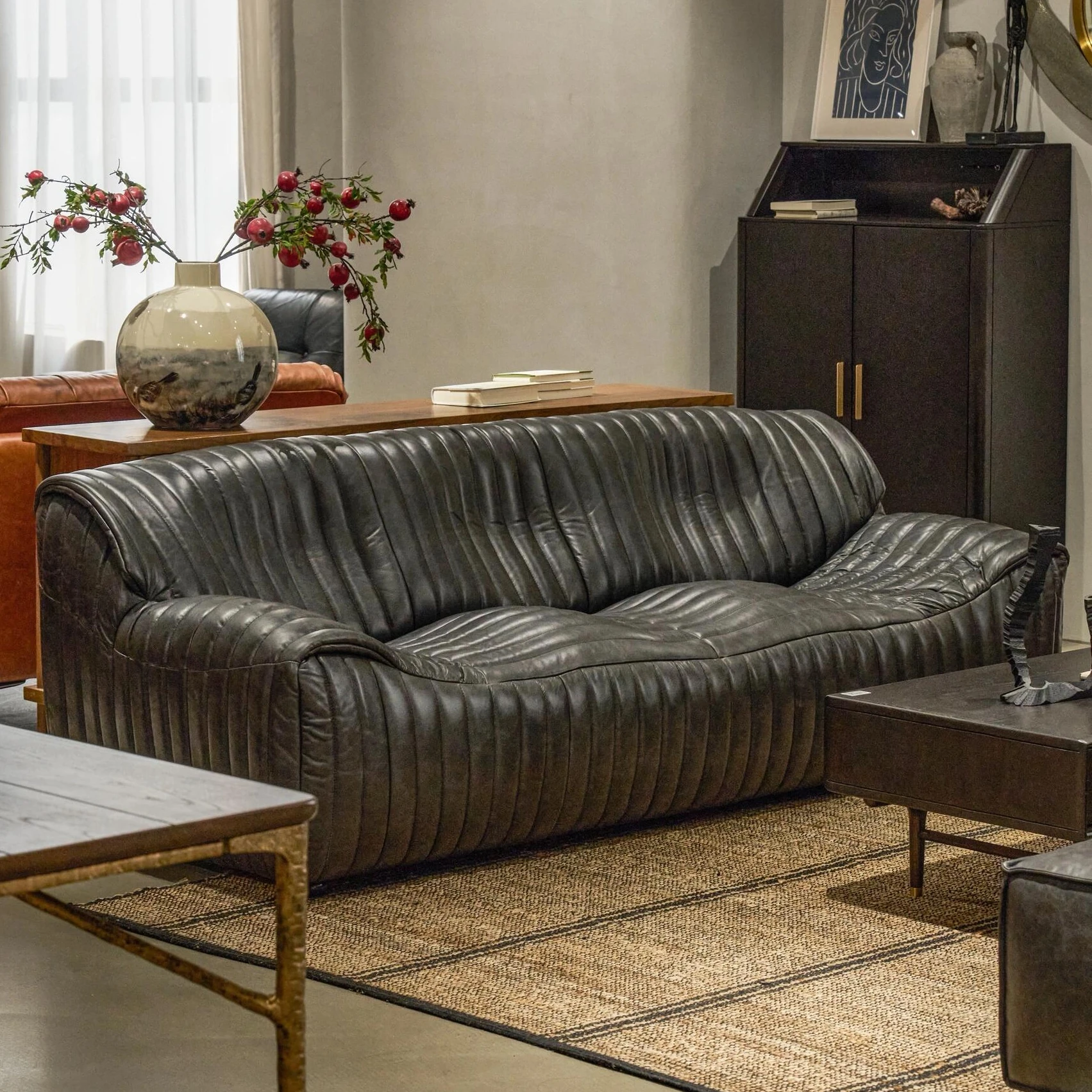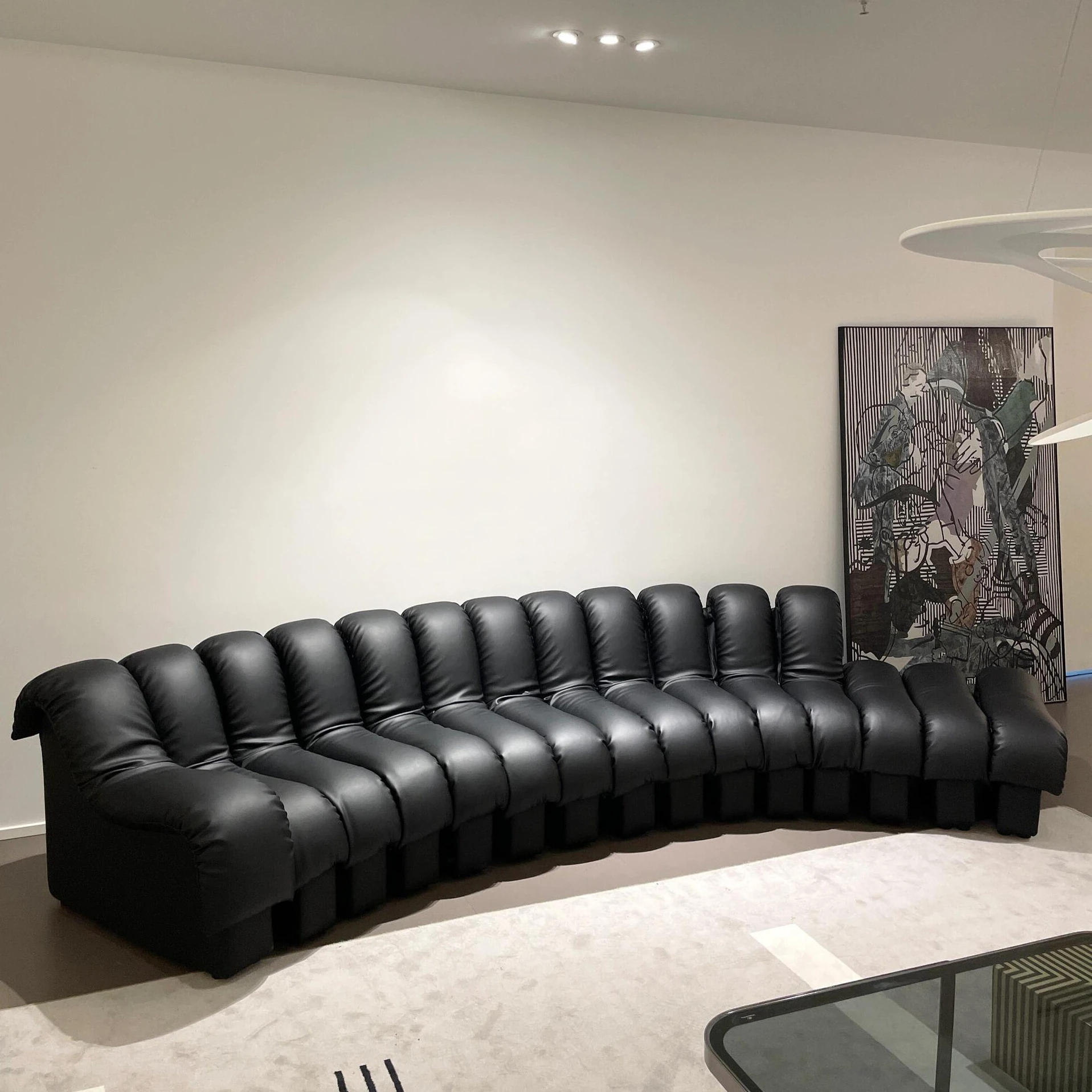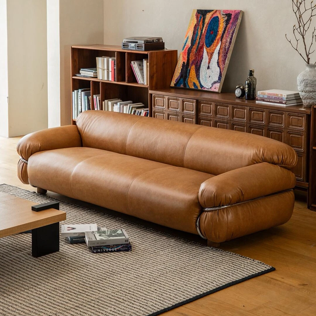 Vintage-Inspired Genuine Leather Sofa - Modern Minimalist Designer Sectional for Living Room, Villa, and Serpentine Style Sofa