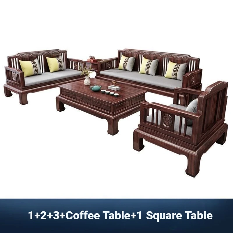 Premium Teak Wood Sofa - Elegant New Chinese Style, Versatile for Winter & Summer, Antique Design, Perfect for Living Room, Luxurious Rosewood Furniture