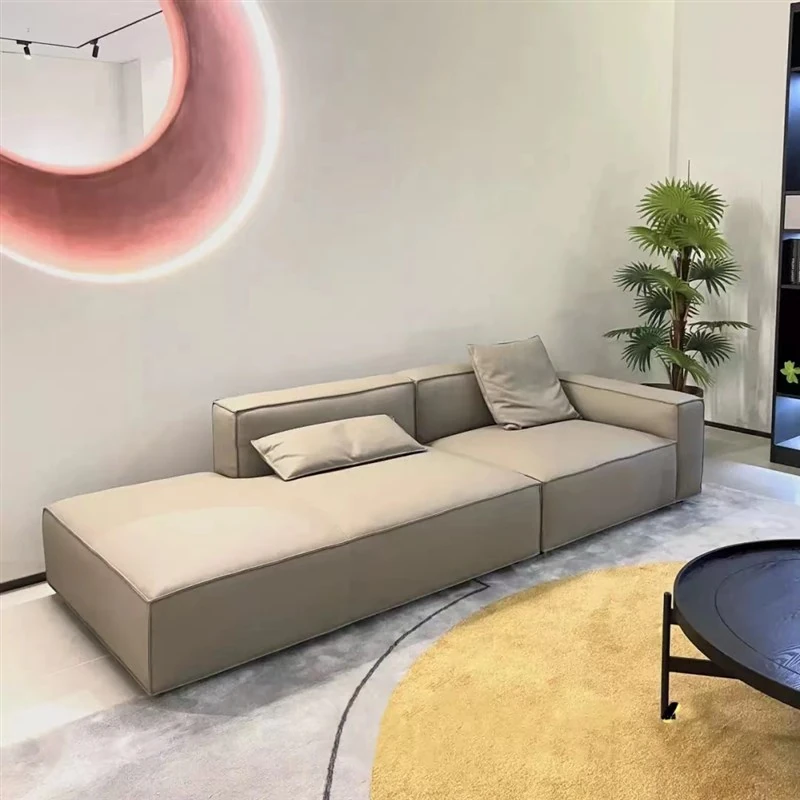 Italian Minimalist Tofu-Style Sofa Chaise Lounge Set - B-Side Armrest, Simple Design with Silicone Leather and High-Tech Fabric for Modern Living Room