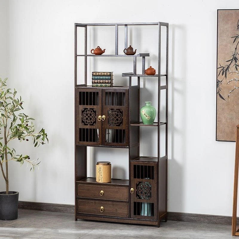 Elegant Solid Wood Chinese Style Tea Display Cabinet - Perfect for Showcasing Teapots and Accessories in Your Tea Room. Ideal Storage Solution for Tea Sets and Decorative Items.