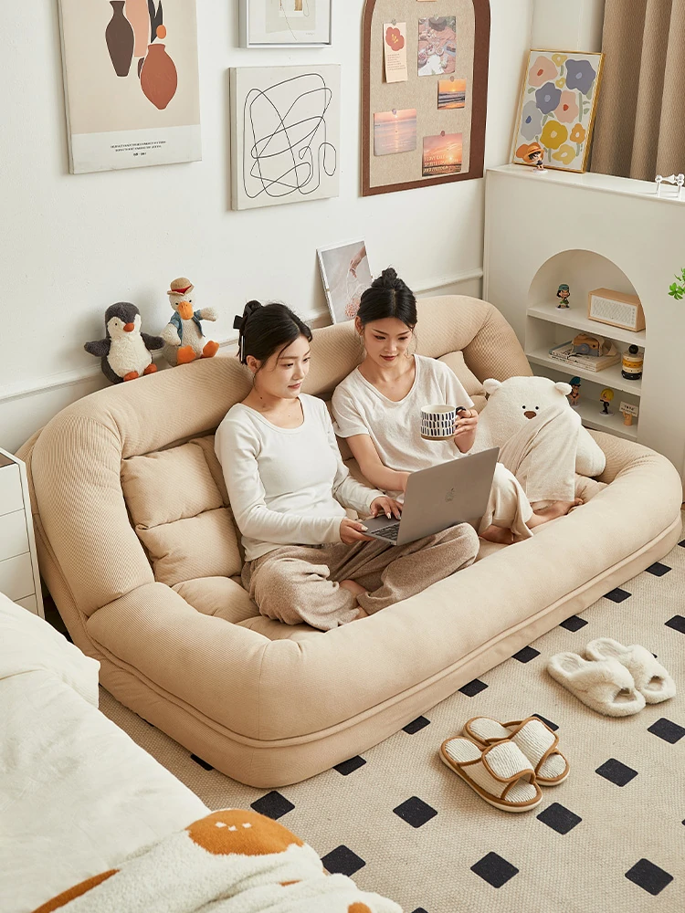 Foldable Sofa Bed - Versatile Lazy Sofa for Single or Double Use, Expandable for Balcony Naps, Trendy Cream Aesthetic Design