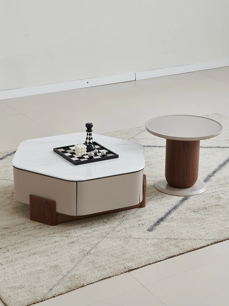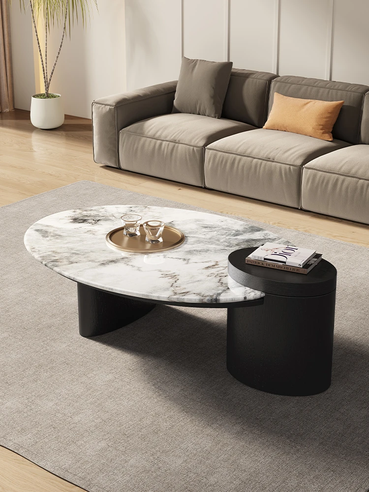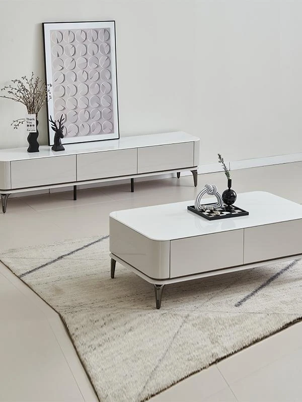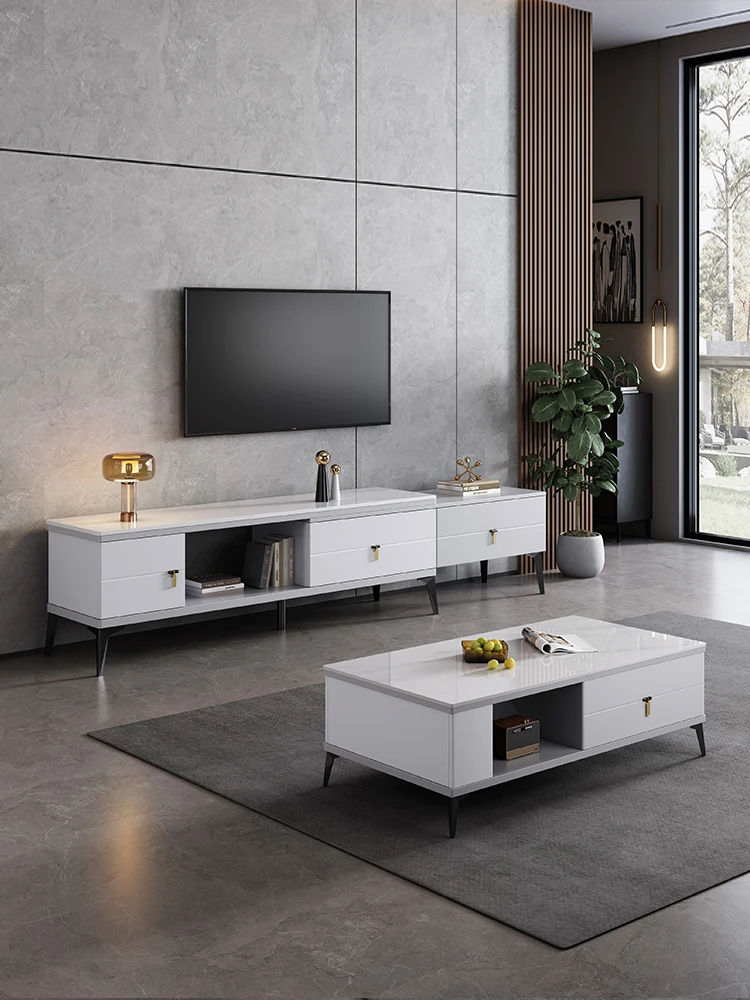 Italian Minimalist Ultra-Compact Stone Coffee Table & TV Cabinet Set - Stylish Luxury for Small Living Rooms, Featuring Quiet Self-Absorption and Multi-Functional Storage Solutions.