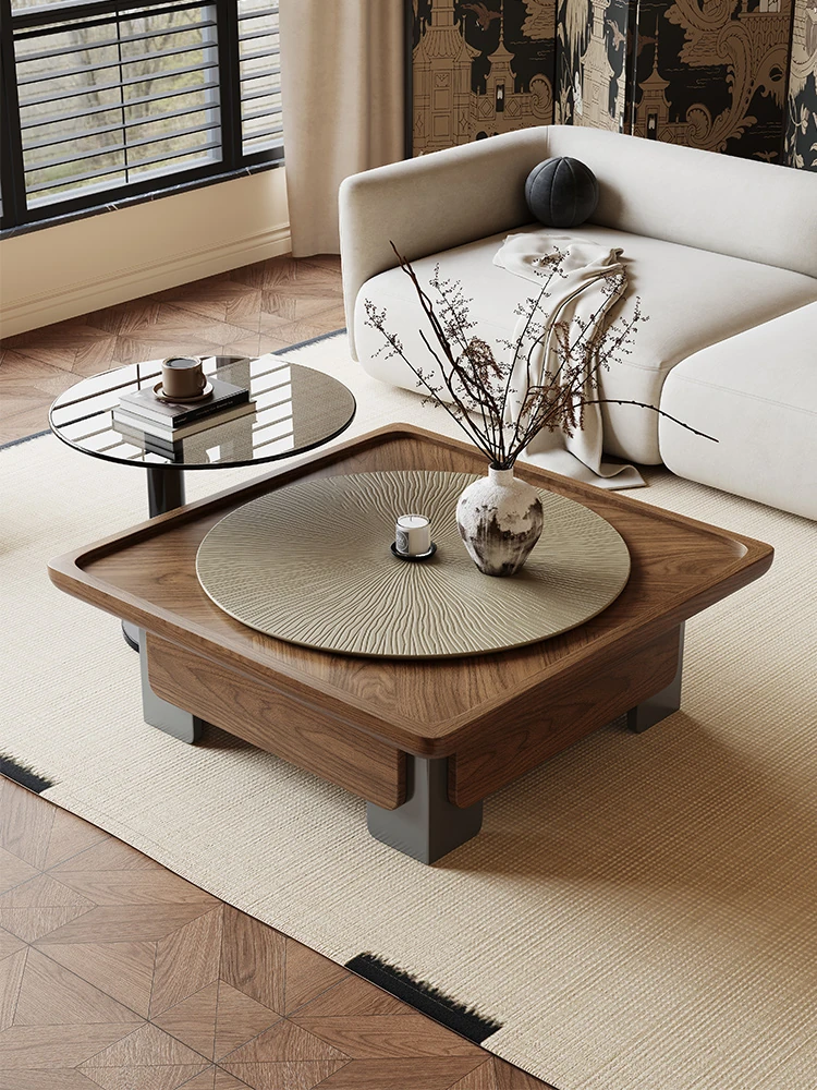 Modern Minimalist Round Coffee Table for Small Spaces - Creative Rotatable Design for Living Room - Vintage Style and Versatile Size Combinations