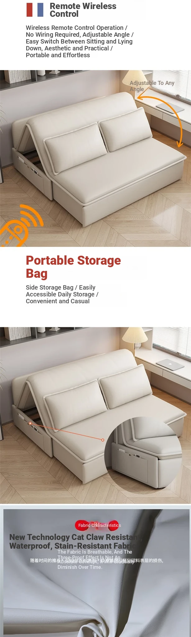 2023 New Multifunctional Cat Paw Fabric Sofa Bed - Stylish Foldable Electric Sofa for Small Spaces, Perfect for Modern Living Rooms!