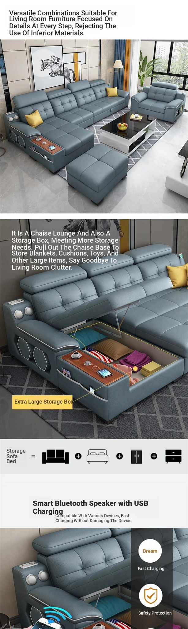 2023 New Multi-Functional Foldable Sofa Bed with Storage - Trendy Tech Fabric Design for Small Living Spaces, Perfect for Modern Homes!