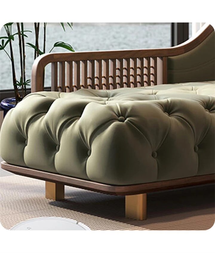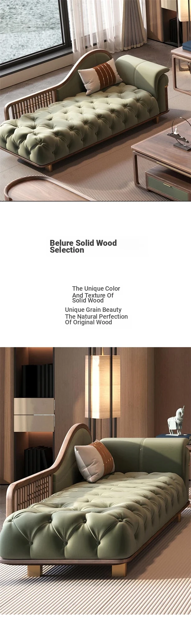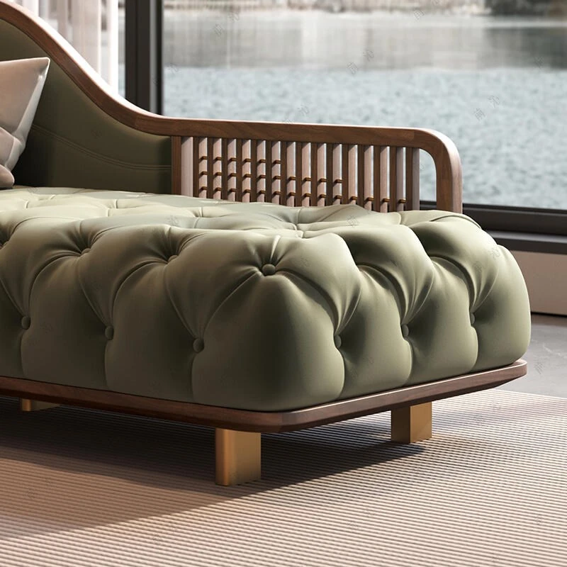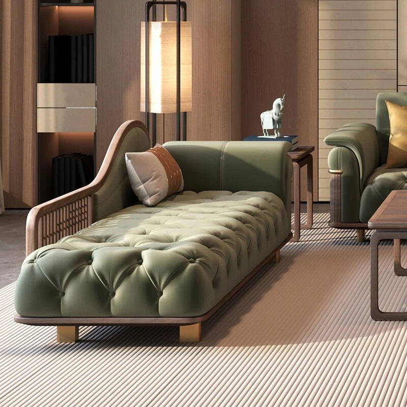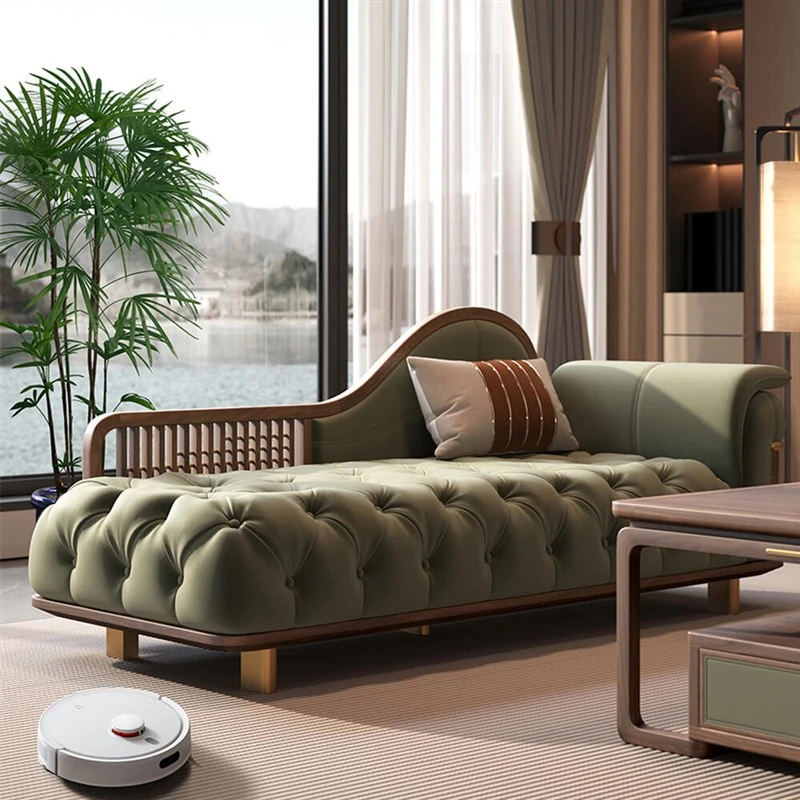 2024 New Arrival Premium Black Walnut & Ash Wood Chaise Lounge - Elegant New Chinese Style for High-End Living Rooms, Hotels, and Homestays