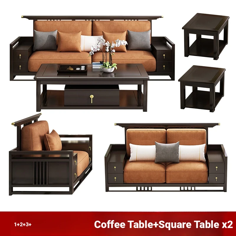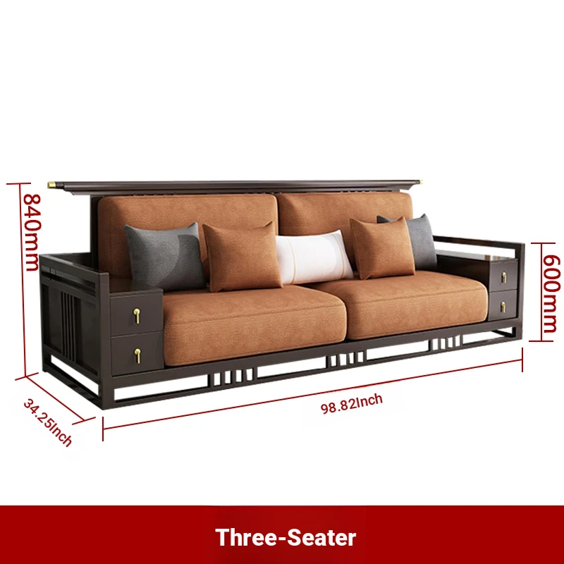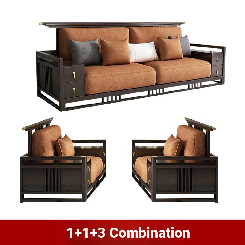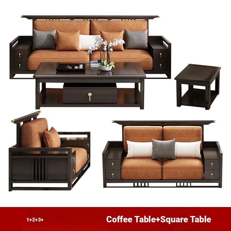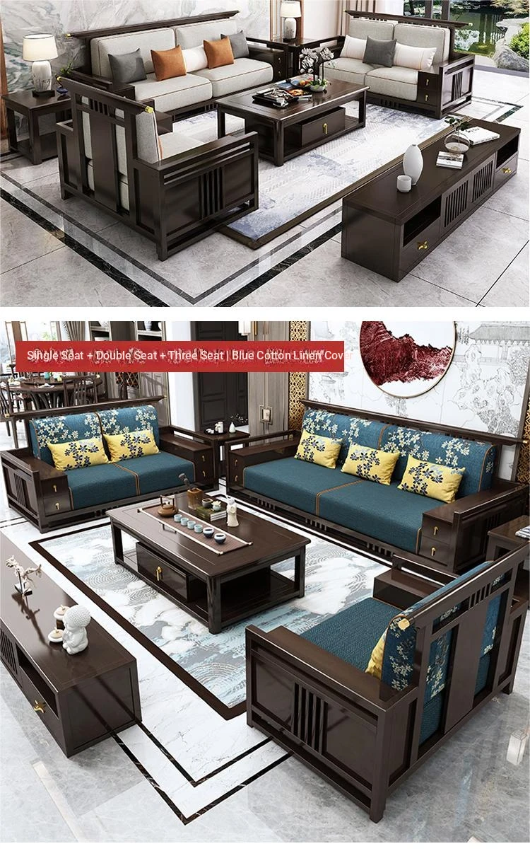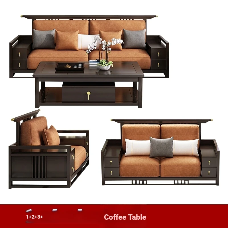 2024 New Chinese Style Solid Wood Sofa - Modern Design for Living Rooms of All Sizes, Versatile for Winter and Summer, with Convenient Storage Features