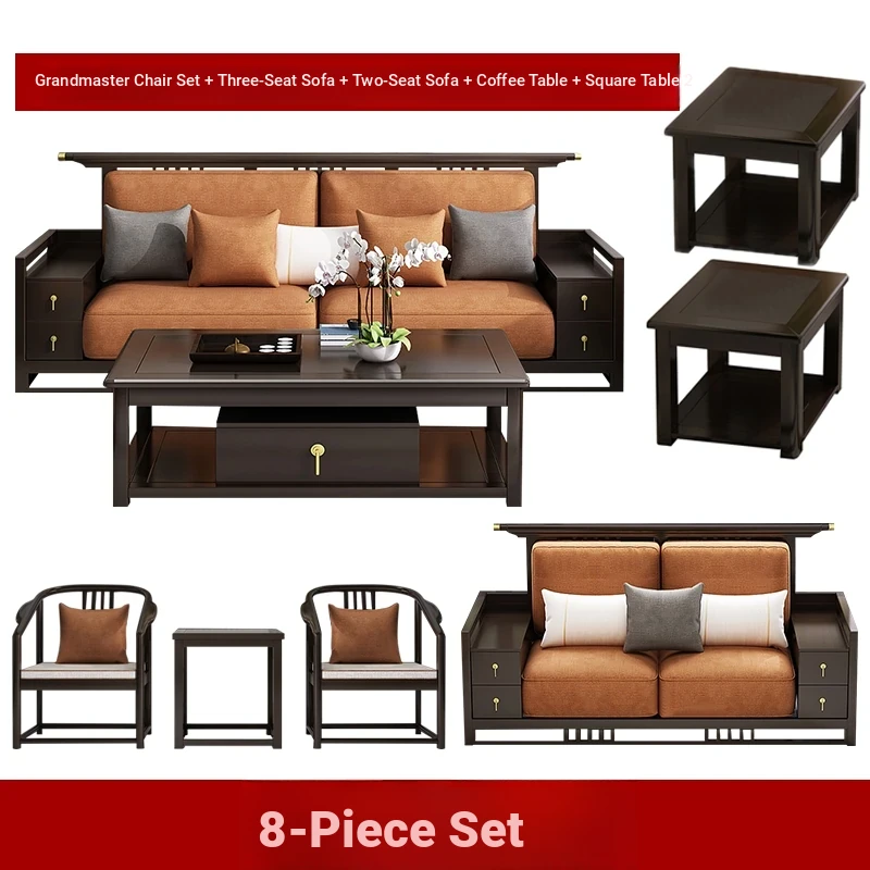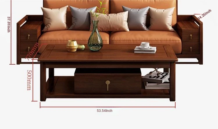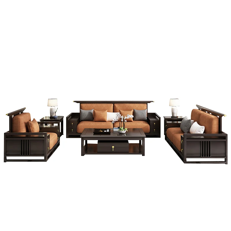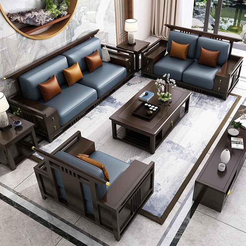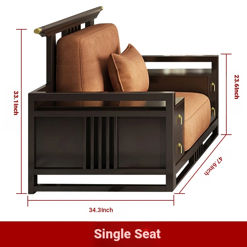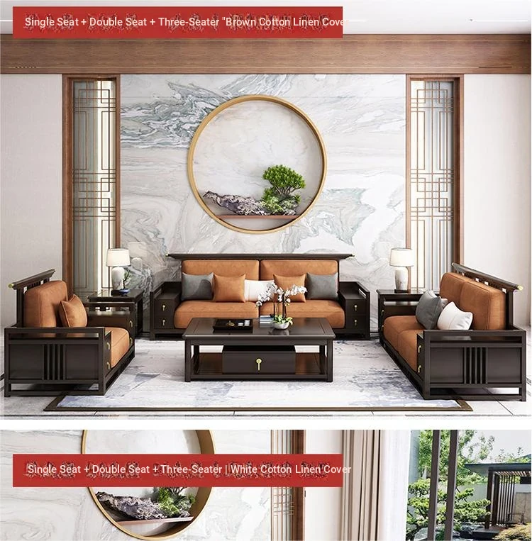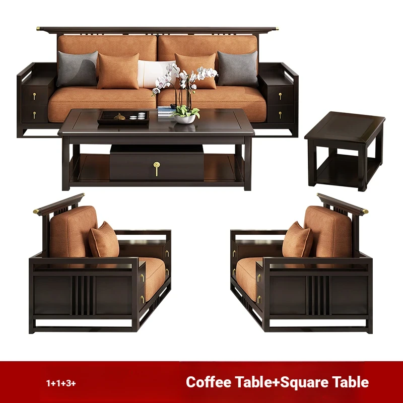 2024 New Chinese Style Solid Wood Sofa - Modern Design for Living Rooms of All Sizes, Versatile for Winter and Summer, with Convenient Storage Features