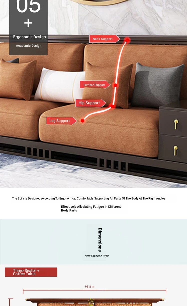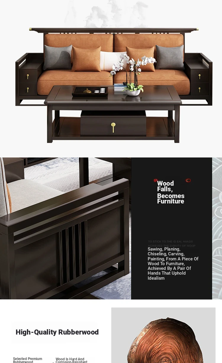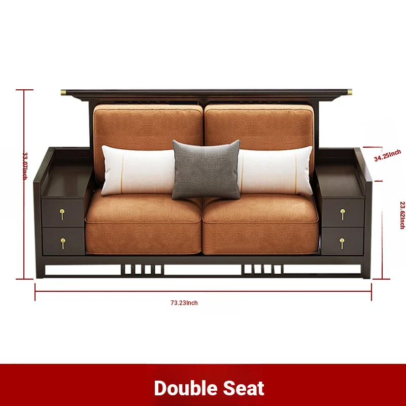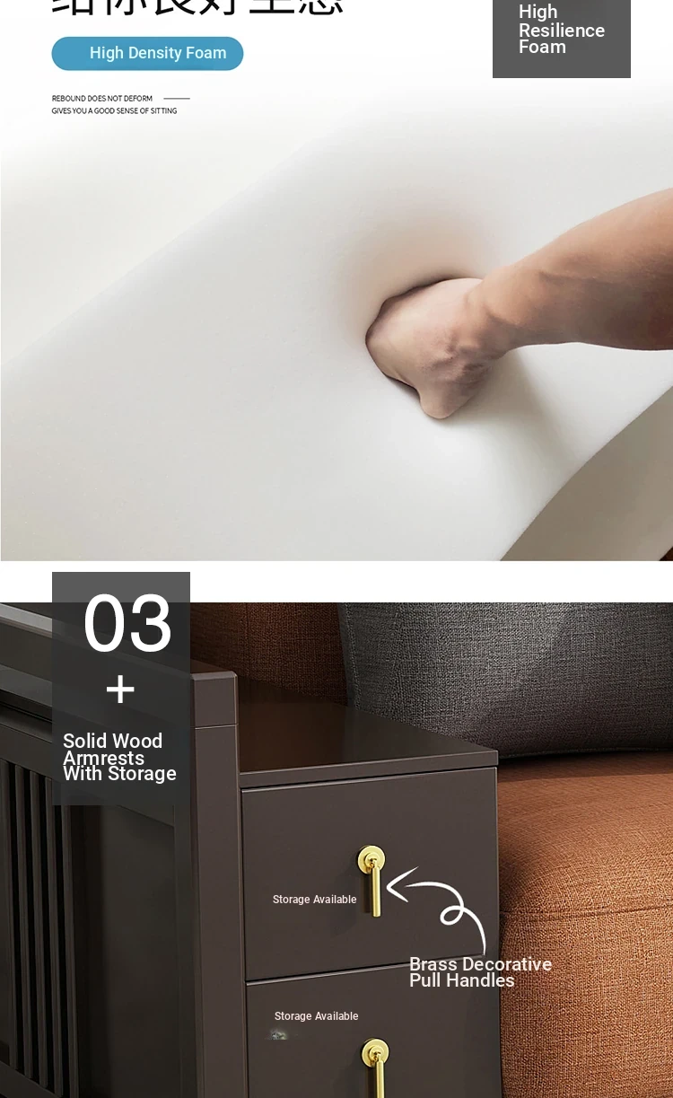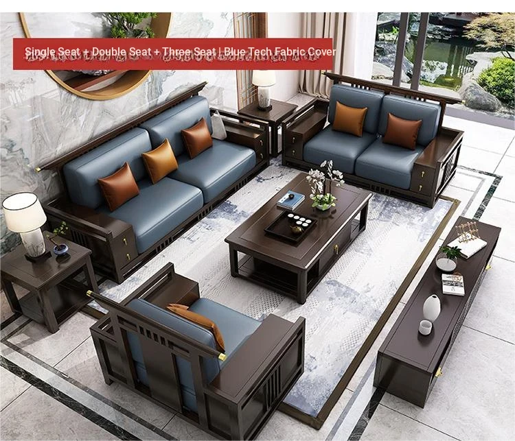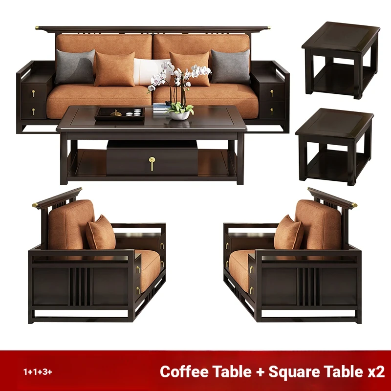 2024 New Chinese Style Solid Wood Sofa - Modern Design for Living Rooms of All Sizes, Versatile for Winter and Summer, with Convenient Storage Features