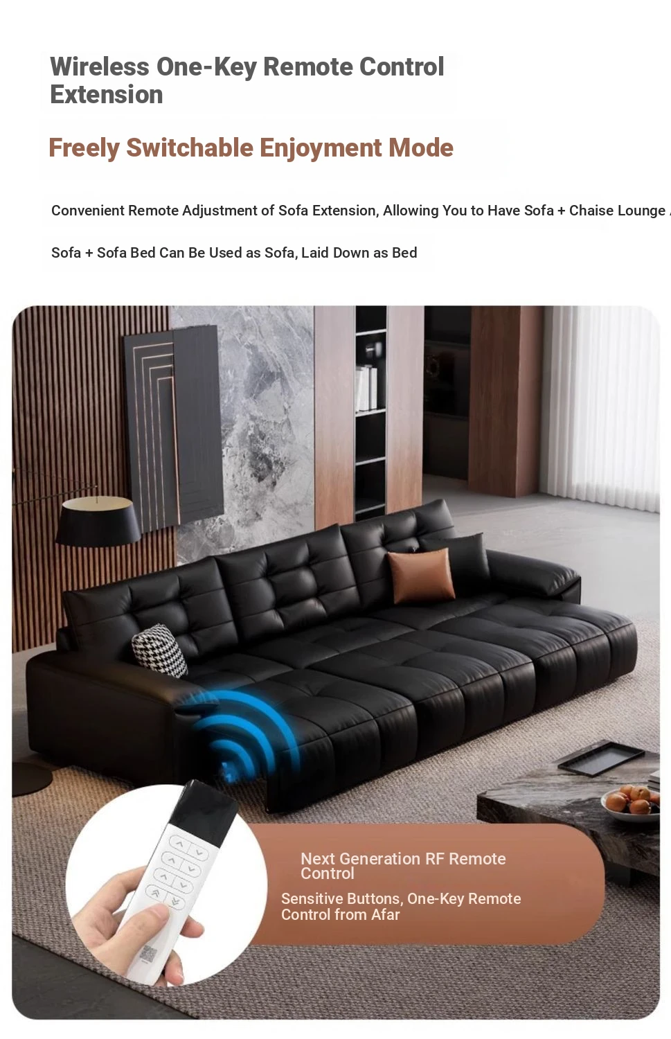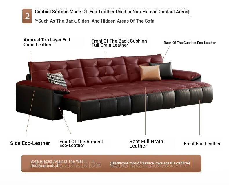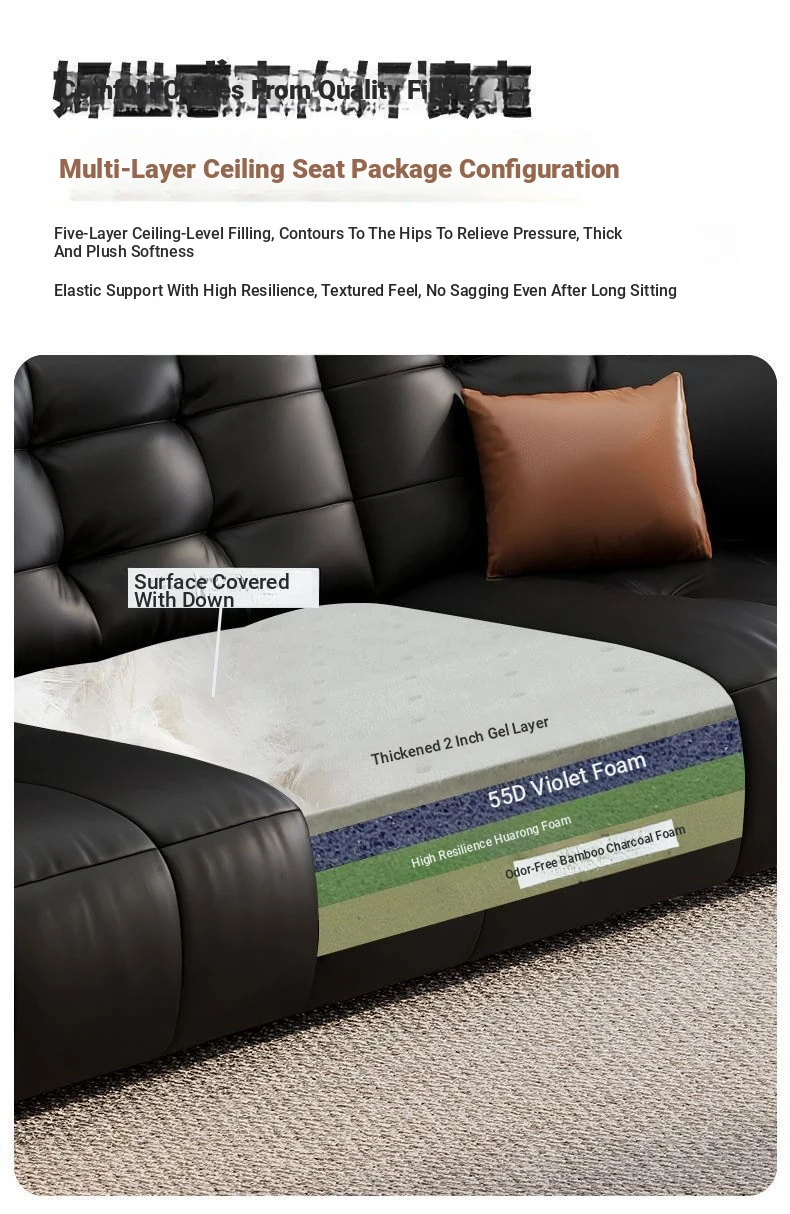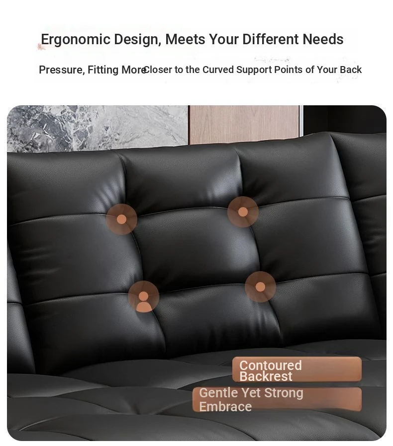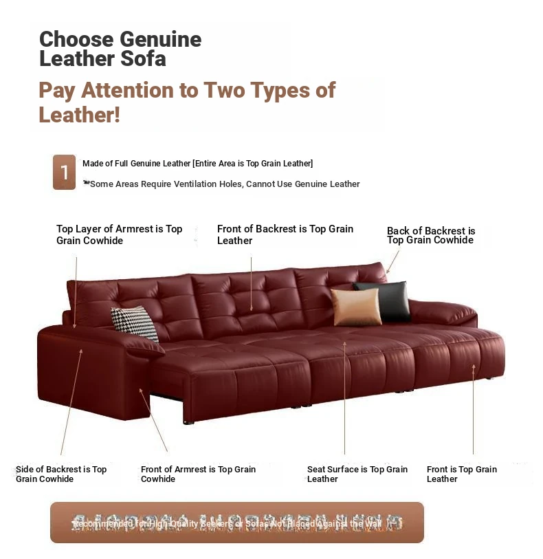 2025 New Wall-Hugging Electric Reclining Sofa with Extendable Headrest - Sleek Black Genuine Leather Bed Combo with Top-Grain Cowhide