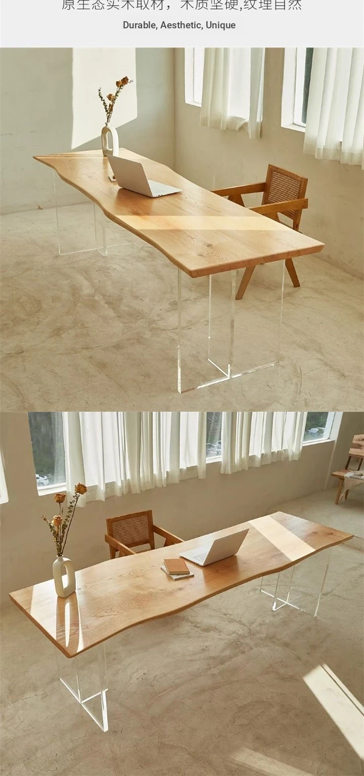Acrylic Solid Wood Floating Dining Table - Perfect for Office Tea Breaks, Guesthouses, and Meetings - Stylish Long Table with Chairs for Tea Gatherings