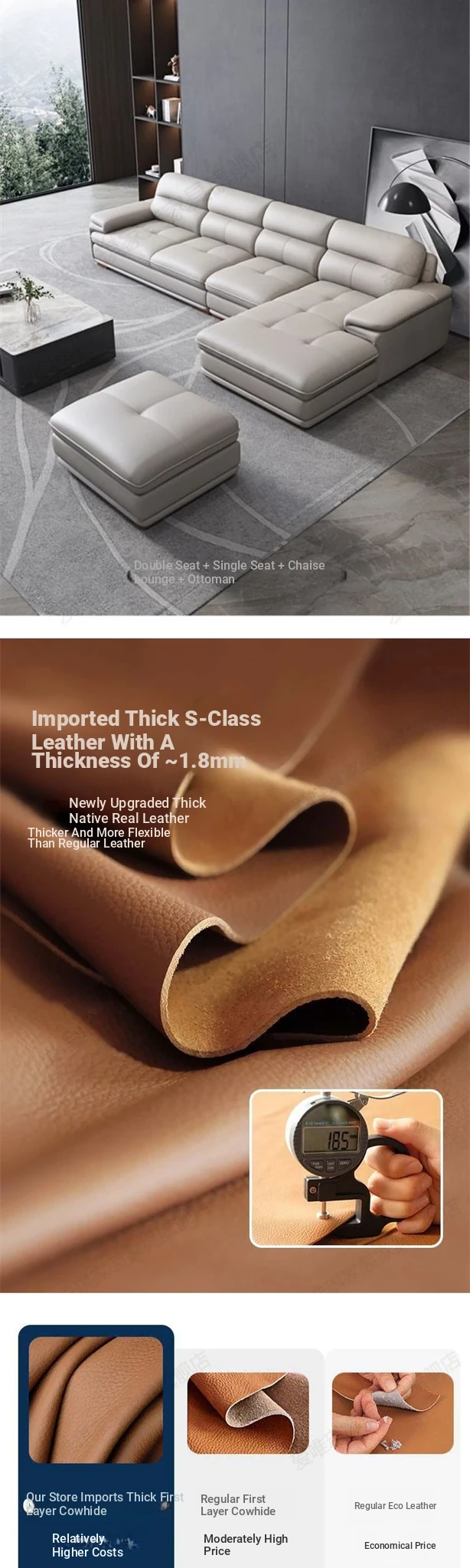 AIVIQ Modern Minimalist Luxury Leather Sofa - Scandinavian Style, Made of Top Grain Cowhide and Iron Frame, Perfect for Your Living Room - Elevate Your Space with Elegance and Comfort