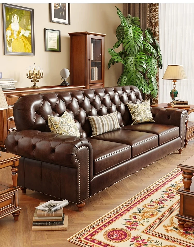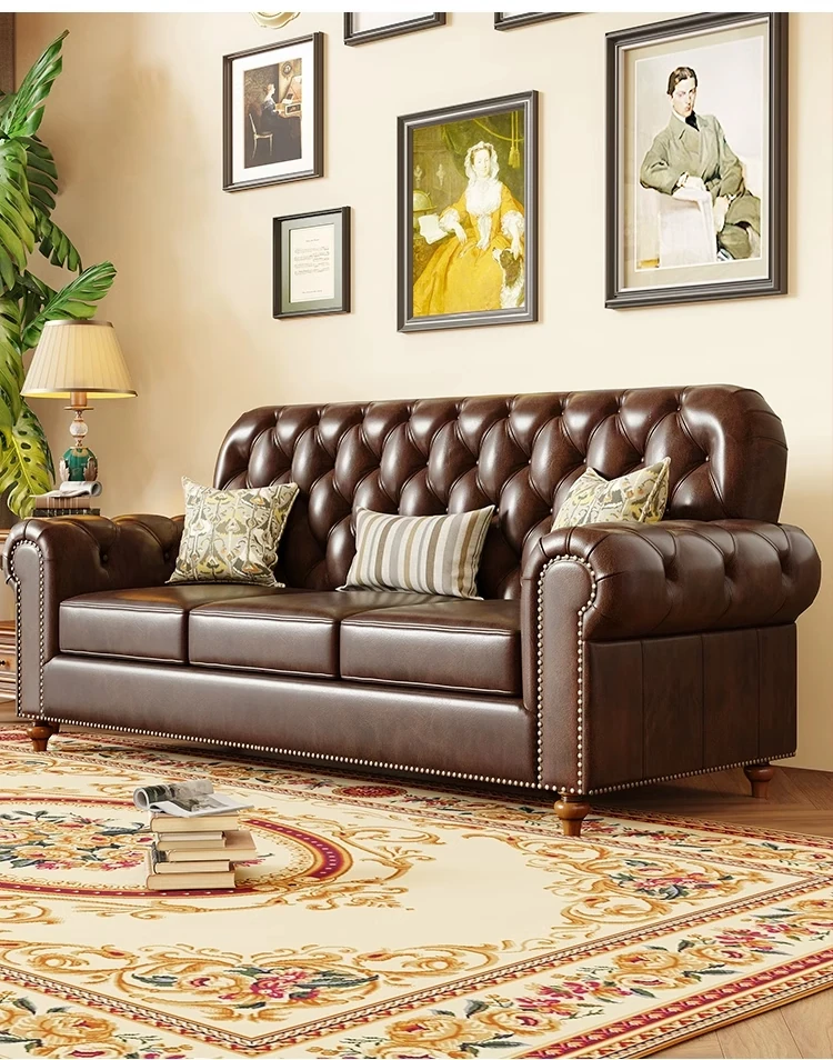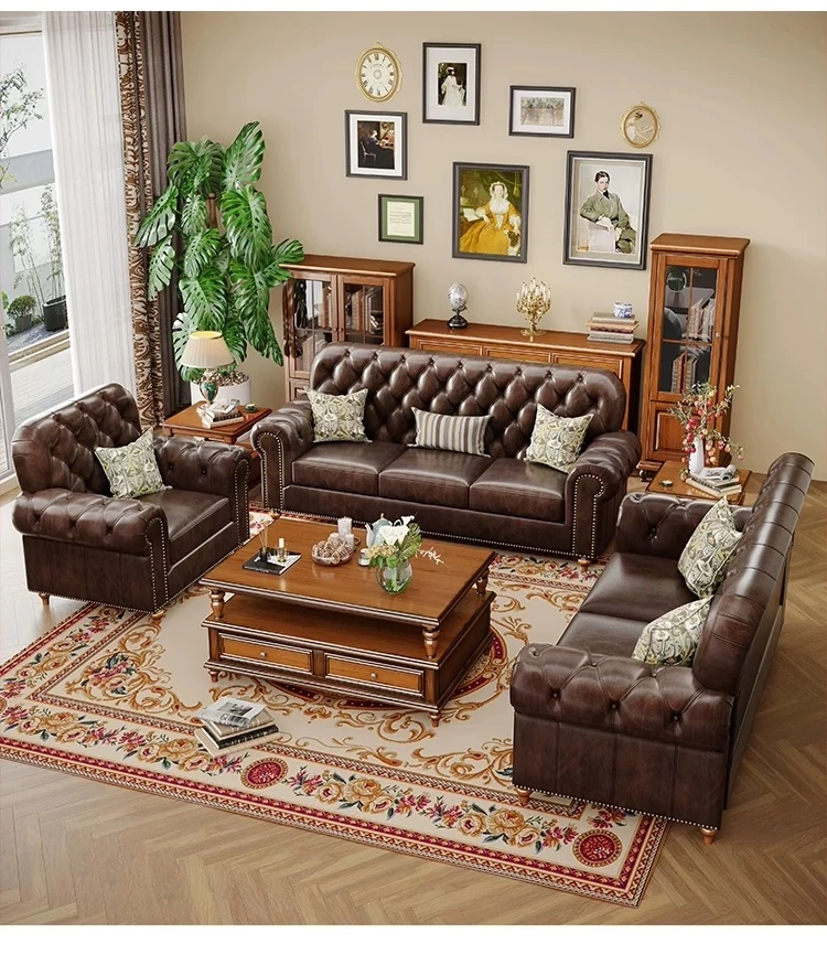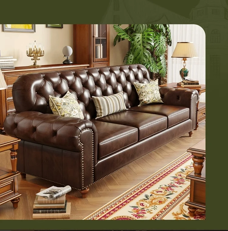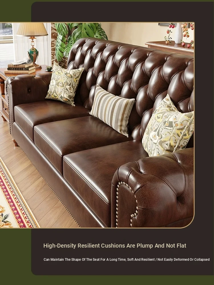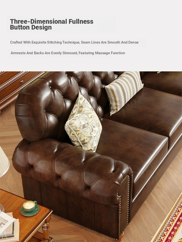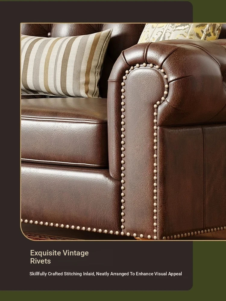 American Vintage Luxury Distressed 123 Sofa Set for Small to Medium Country Villa Living Rooms - Genuine Top Grain Leather