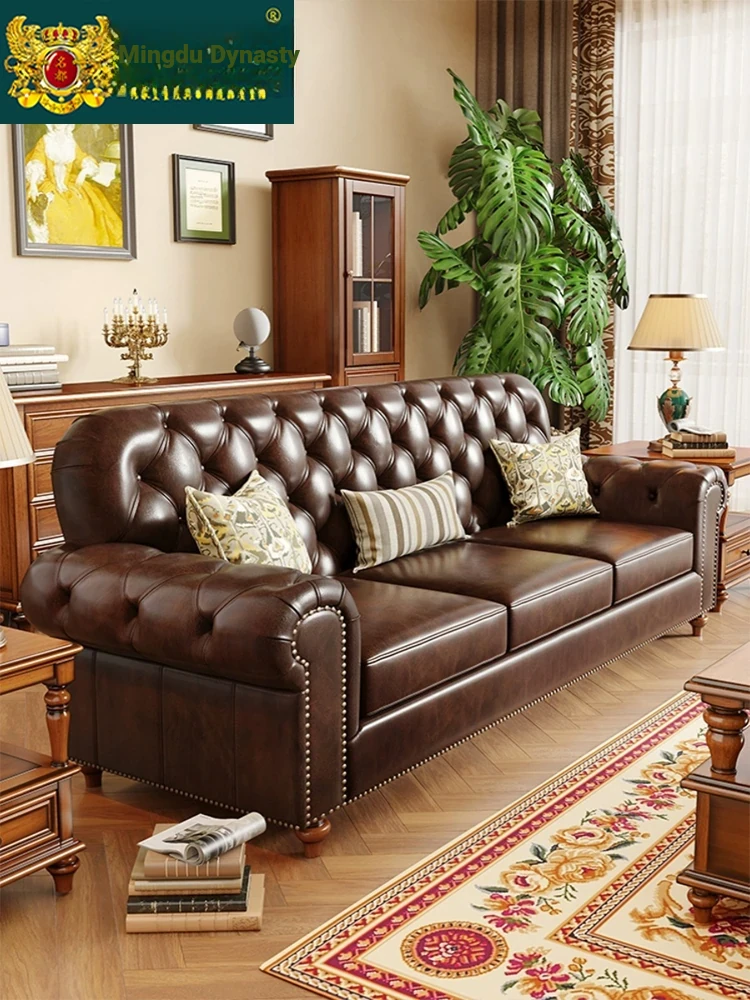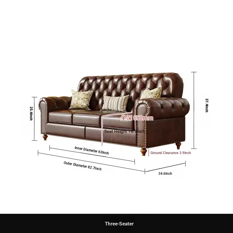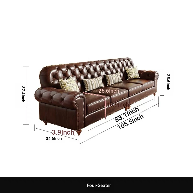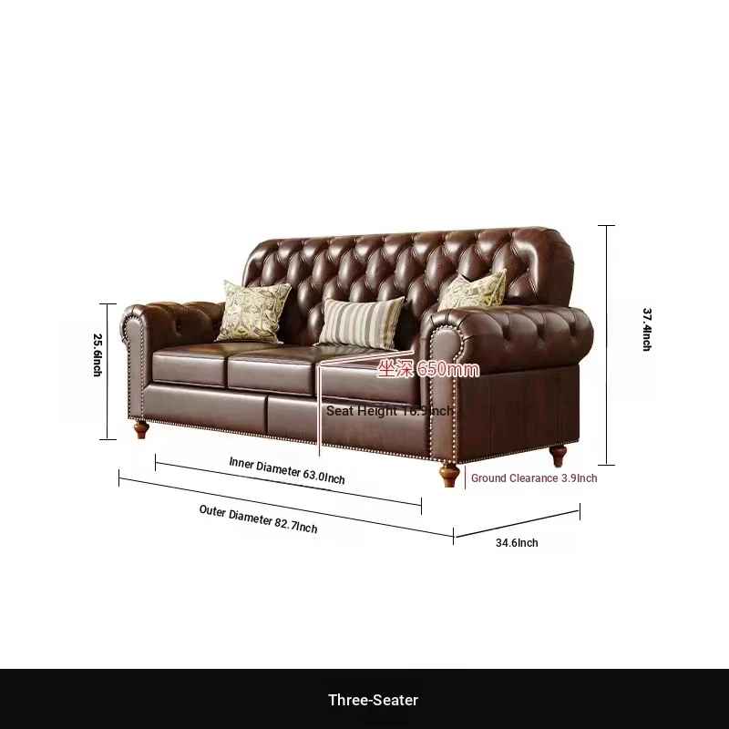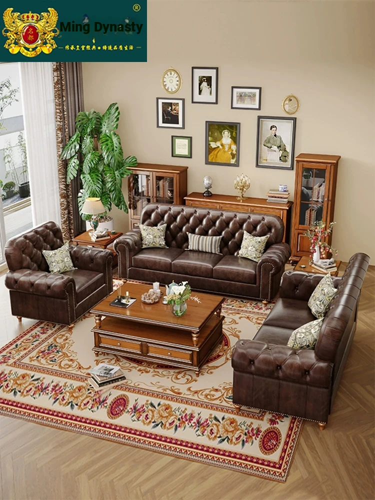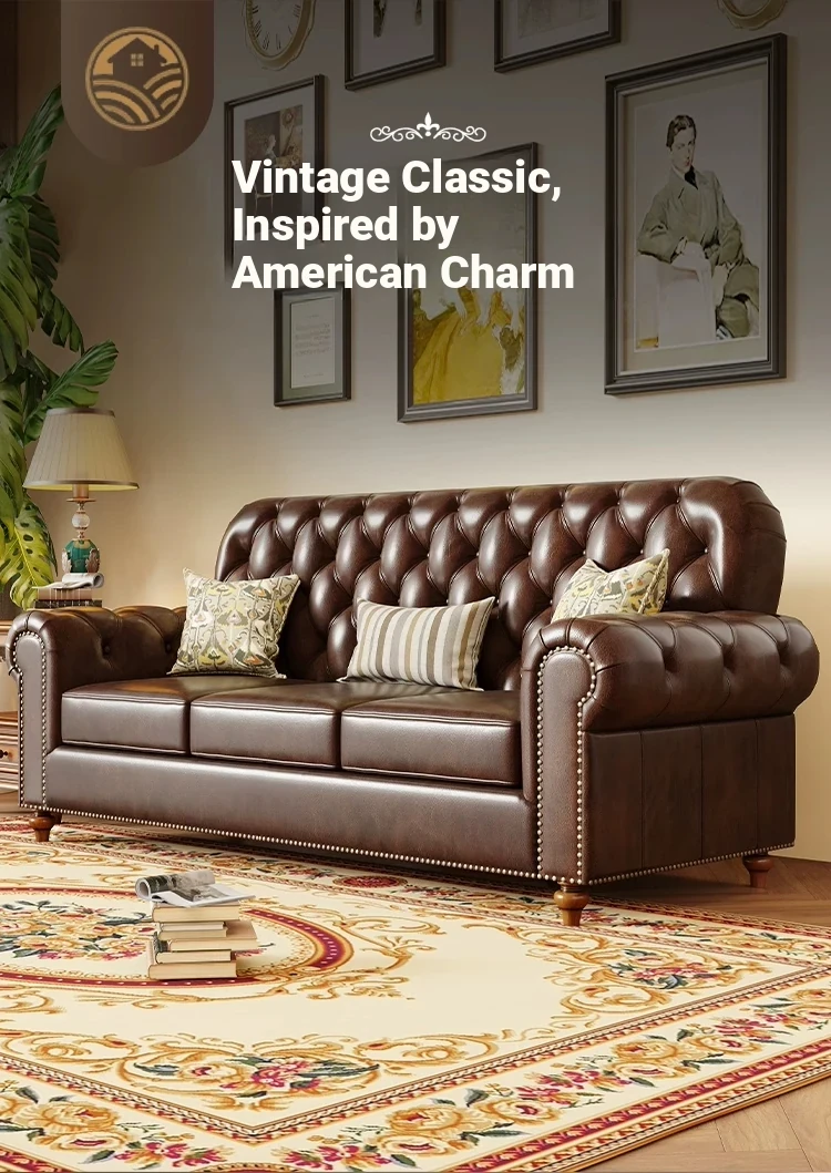 American Vintage Luxury Distressed 123 Sofa Set for Small to Medium Country Villa Living Rooms - Genuine Top Grain Leather