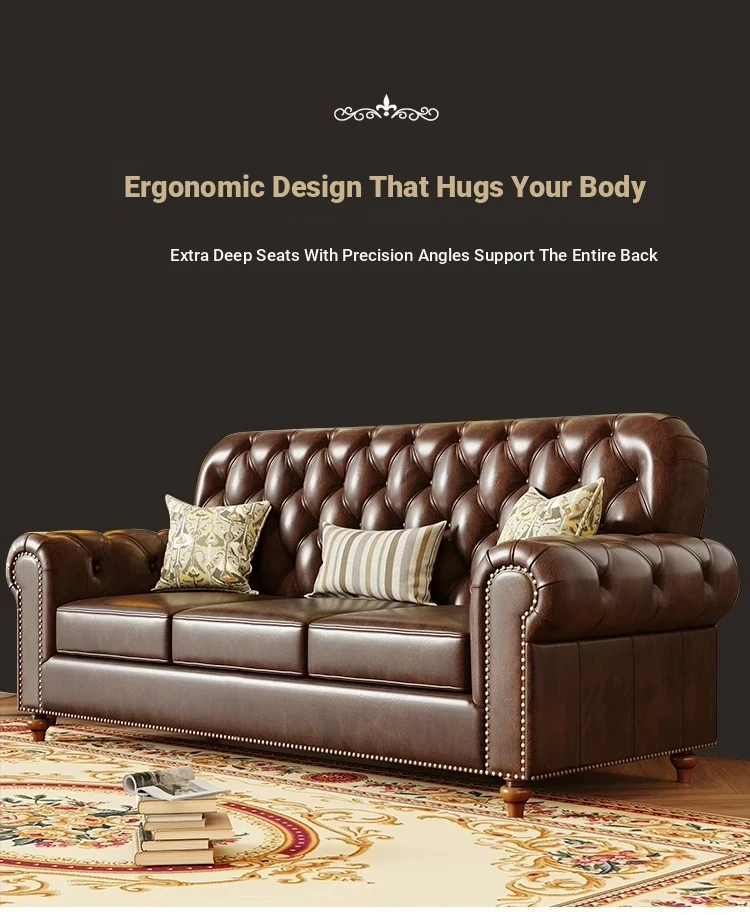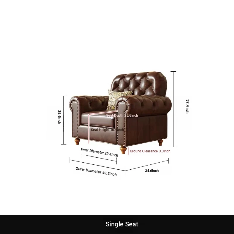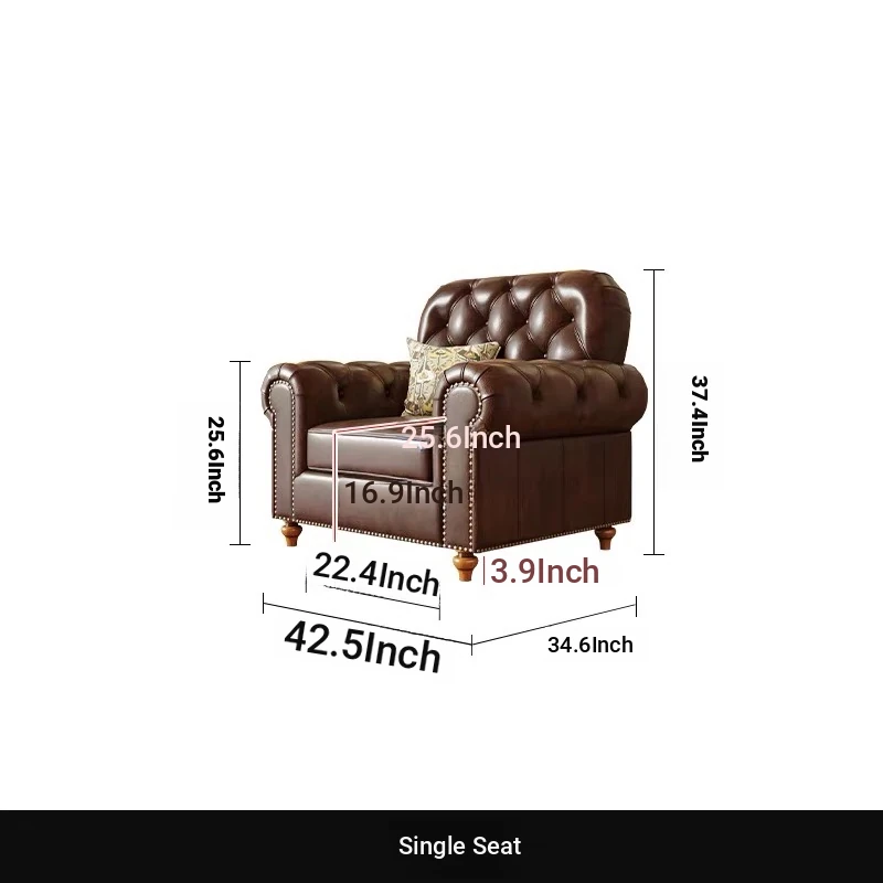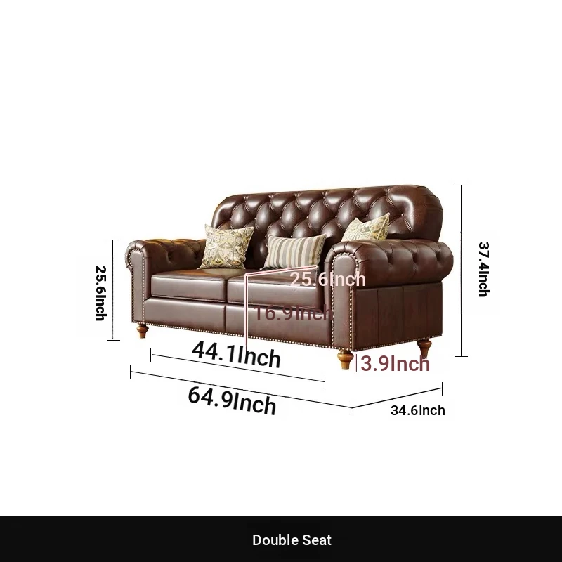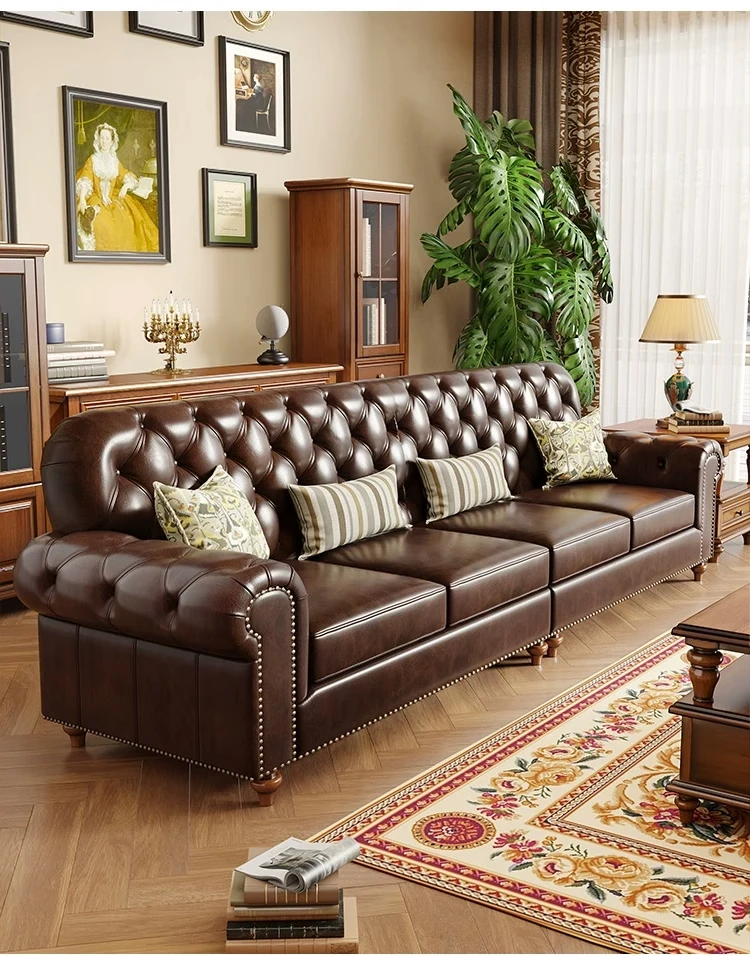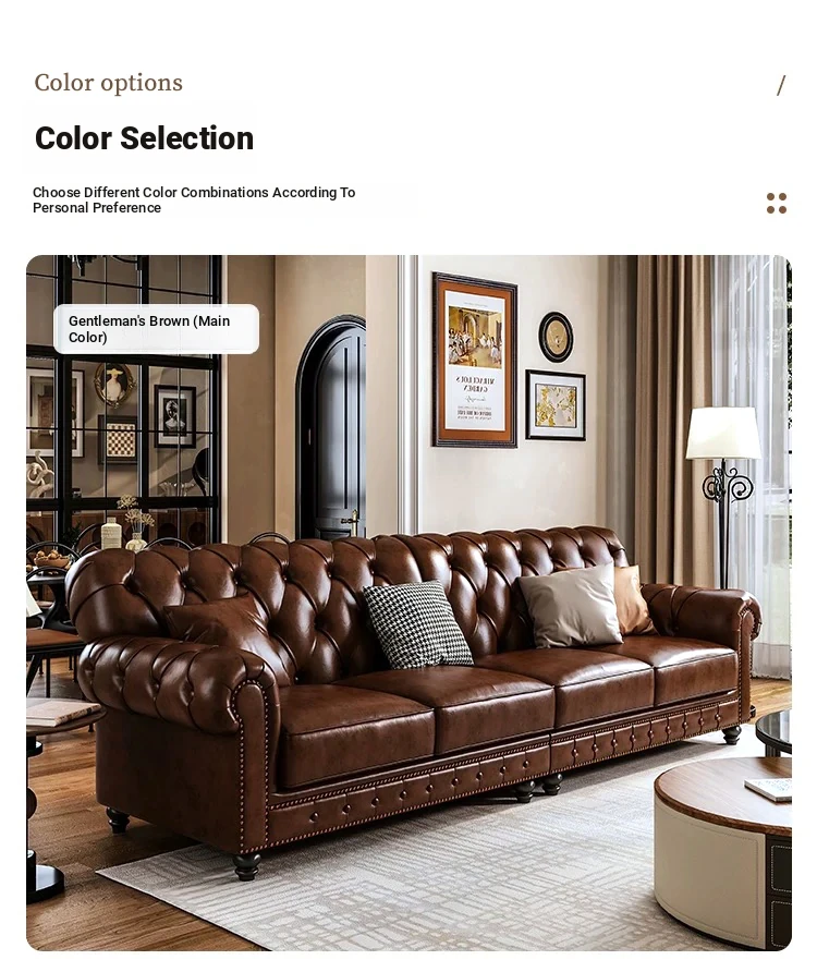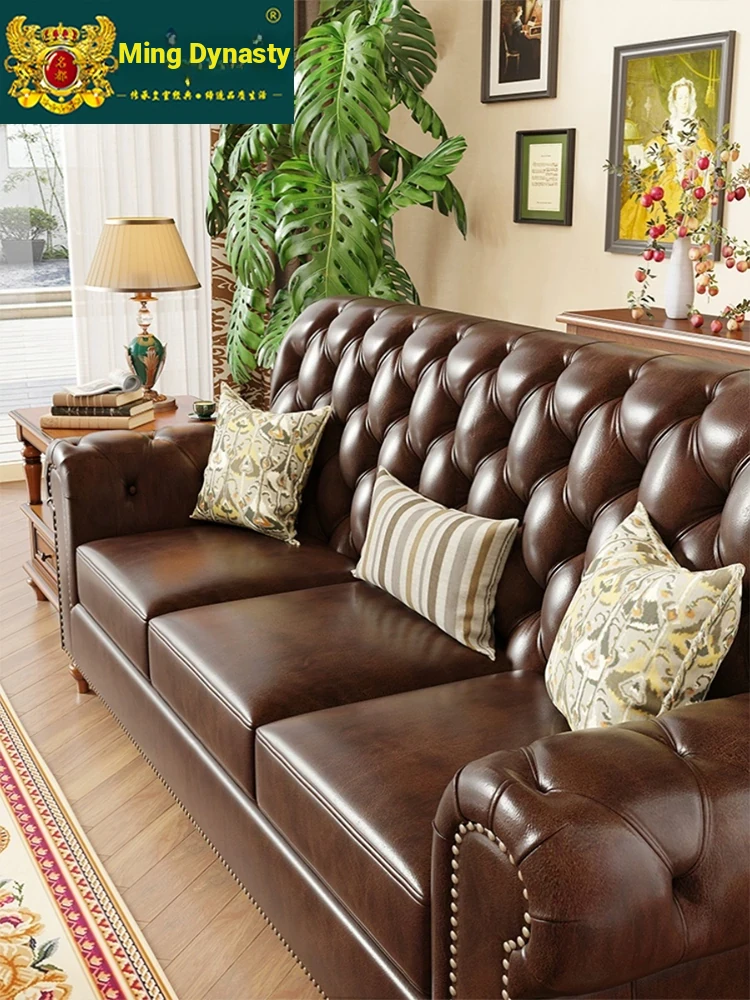 American Vintage Luxury Distressed 123 Sofa Set for Small to Medium Country Villa Living Rooms - Genuine Top Grain Leather