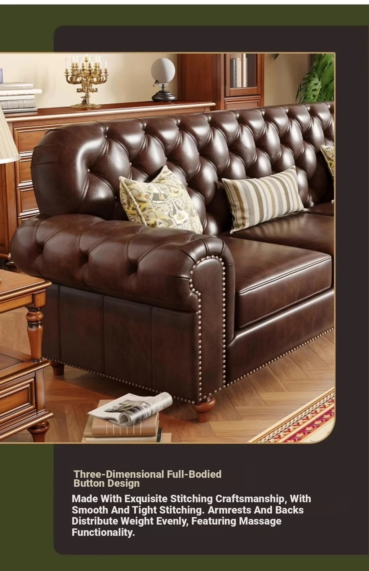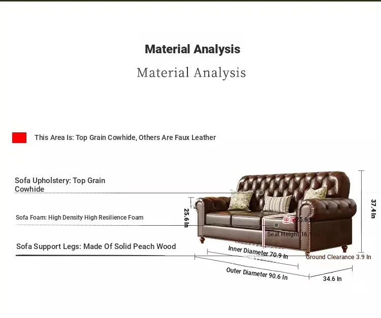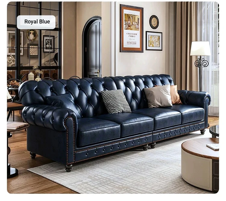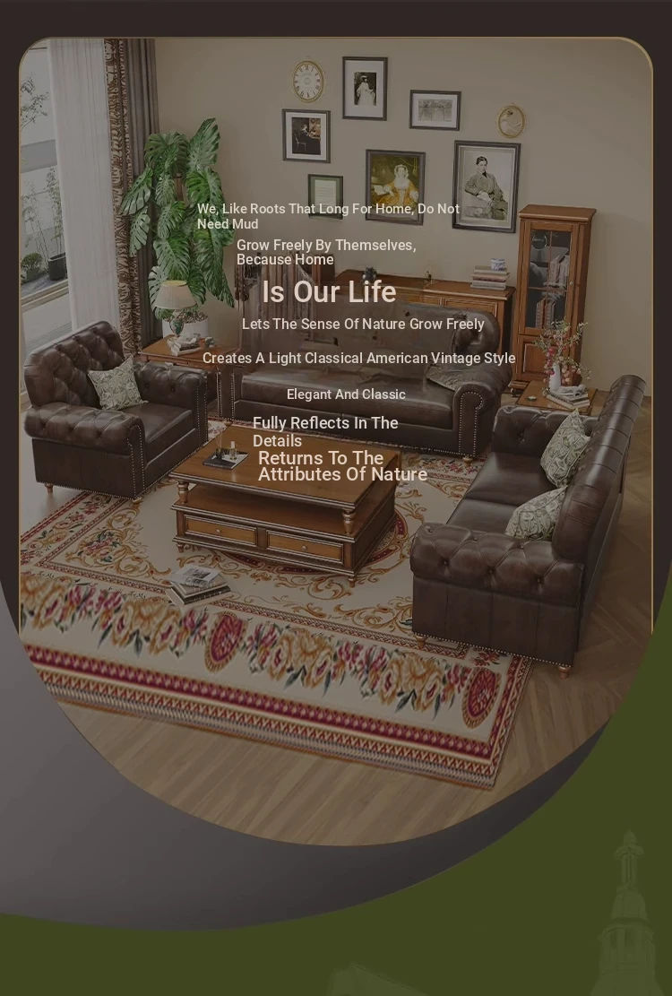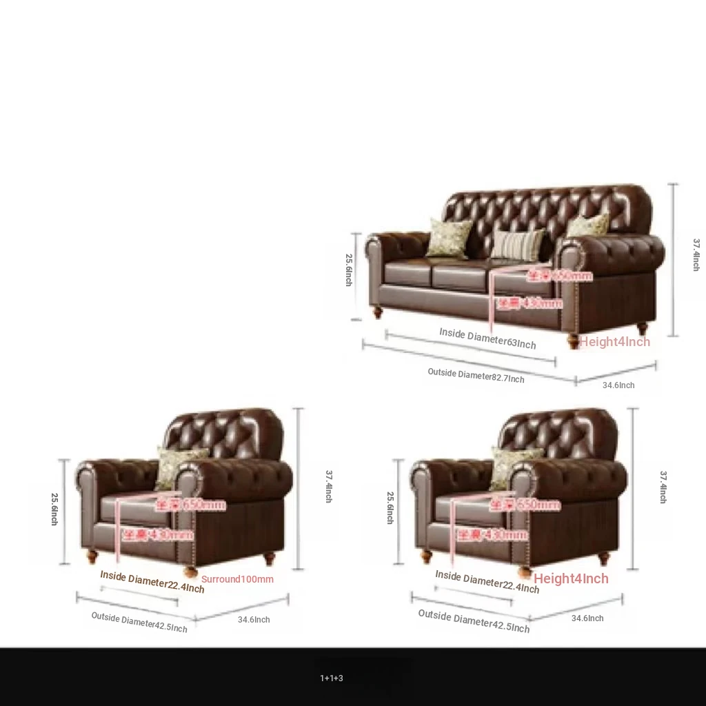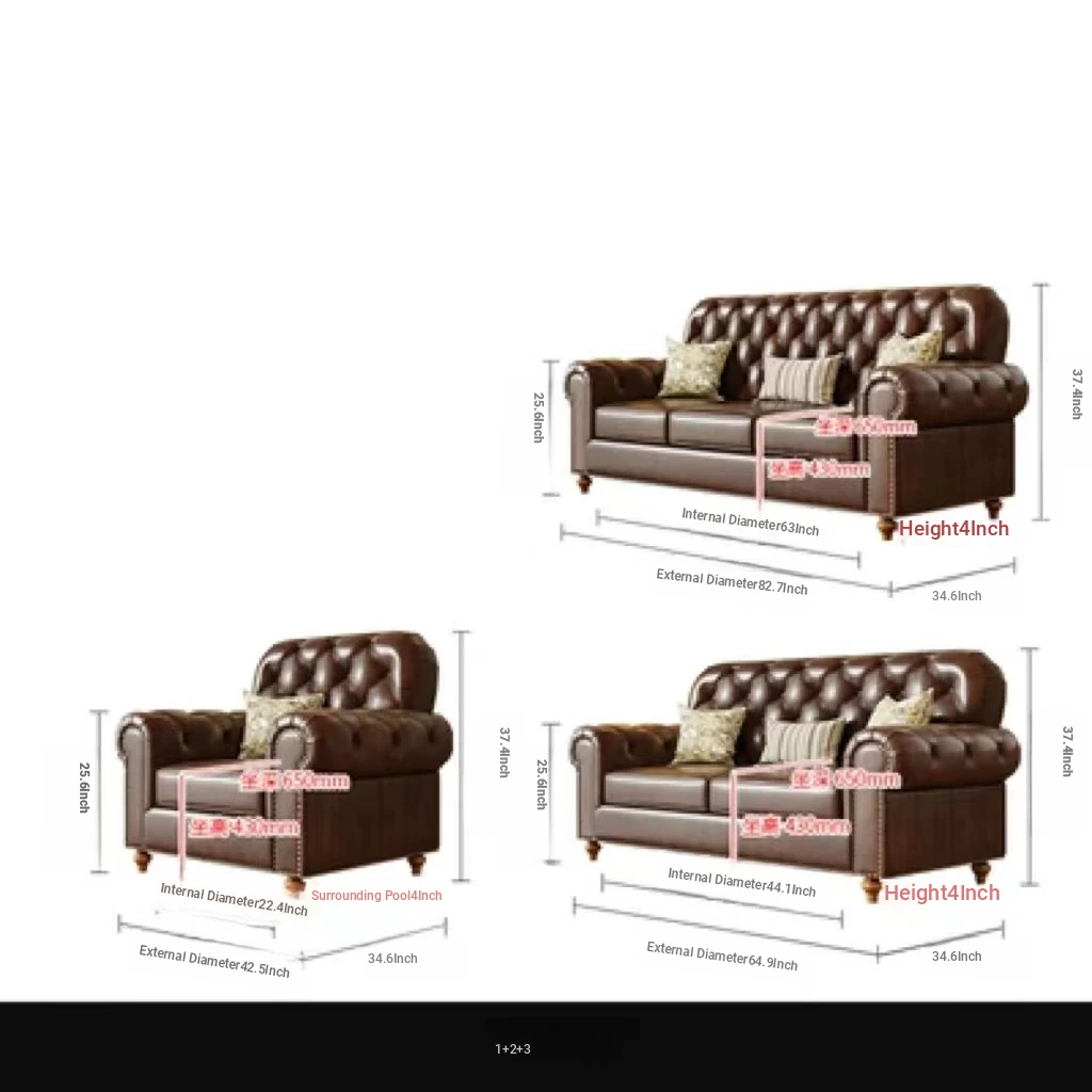 American Vintage Luxury Distressed 123 Sofa Set for Small to Medium Country Villa Living Rooms - Genuine Top Grain Leather