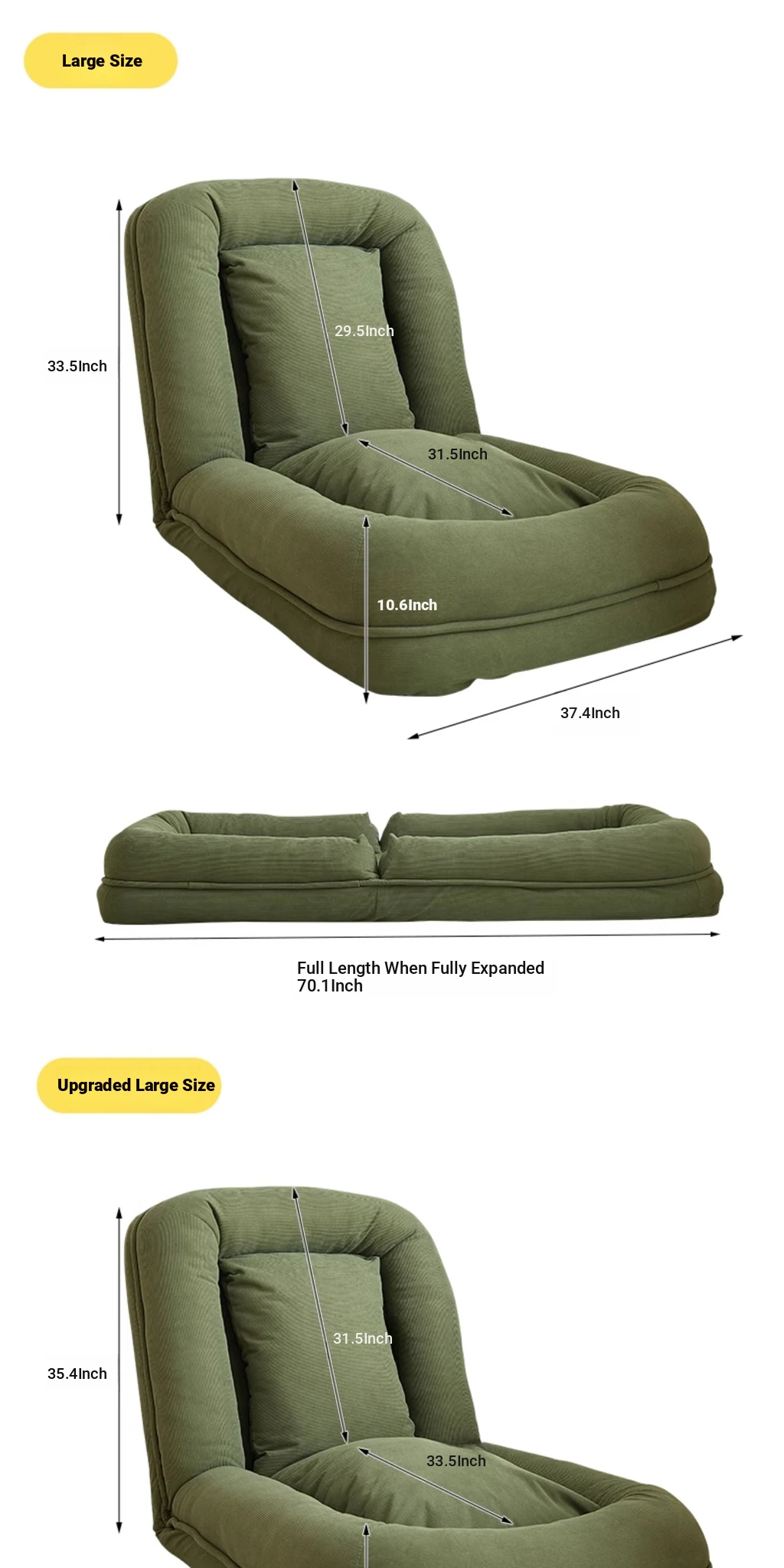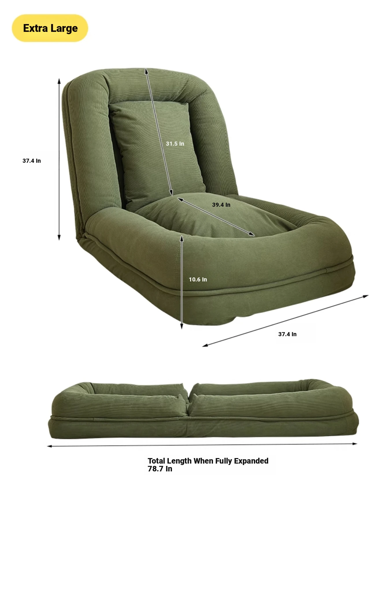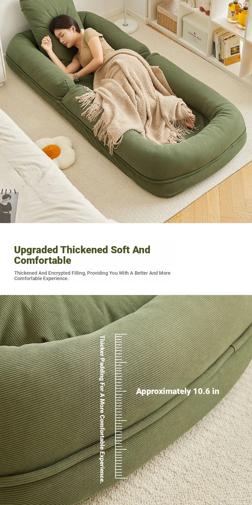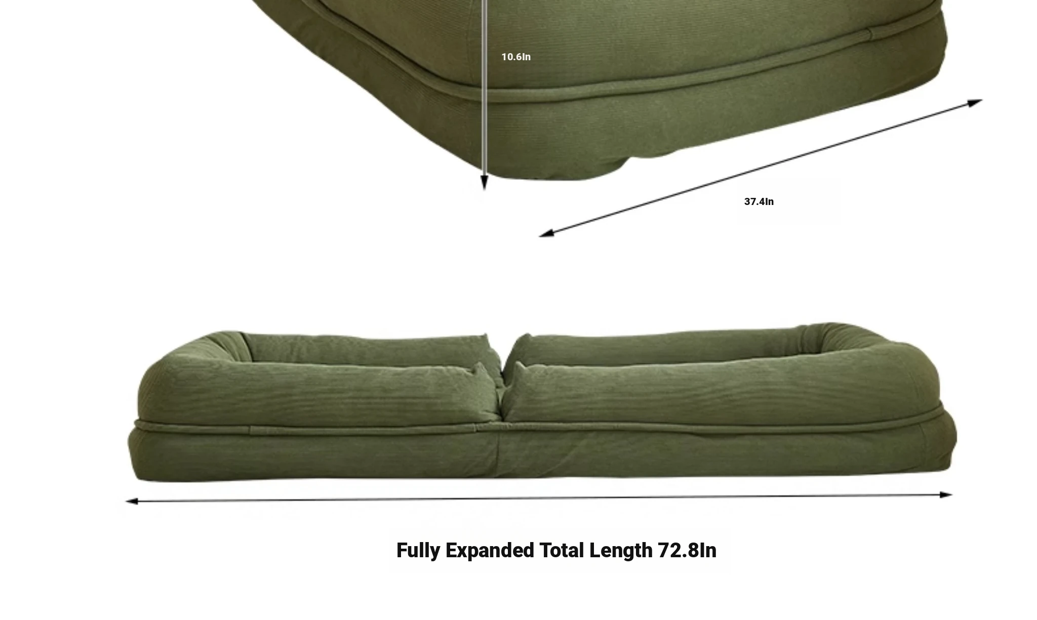 Upgraded Large Size - Thickened New Model [Unfold 185Cm*95Cm] Skin-Feeling Corduroy Fabric - Dark Green [Free Backrest + Cushion]