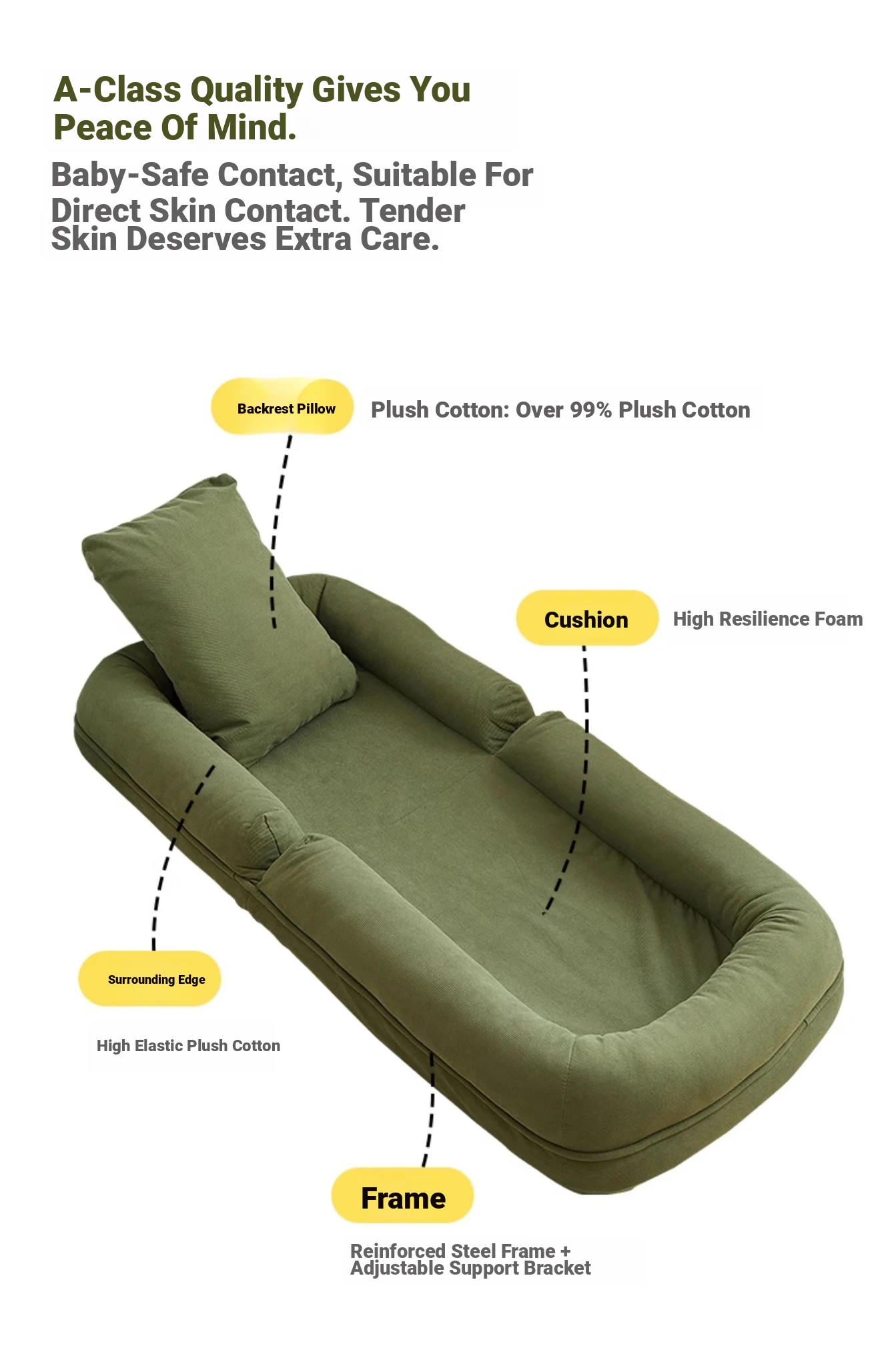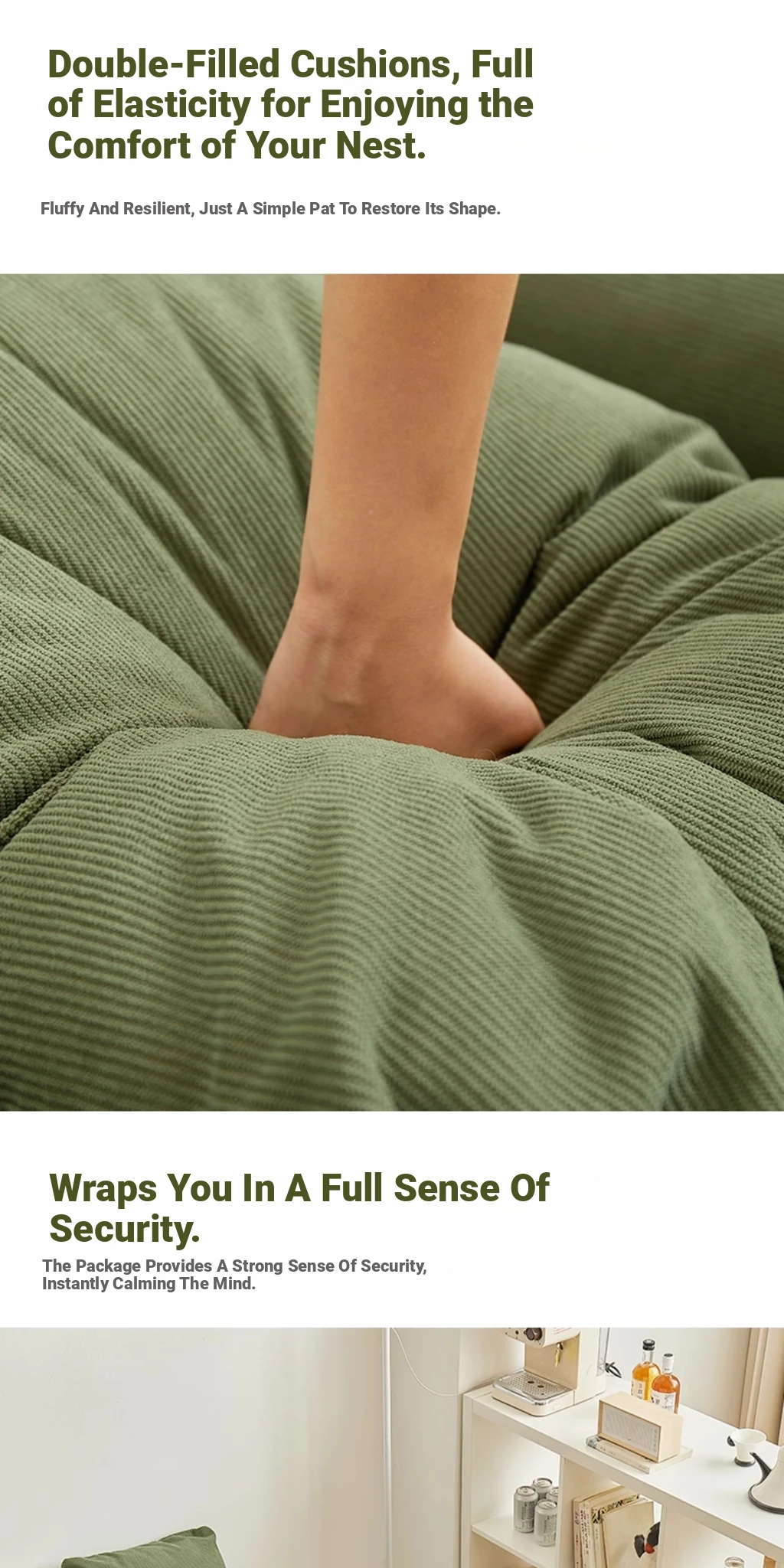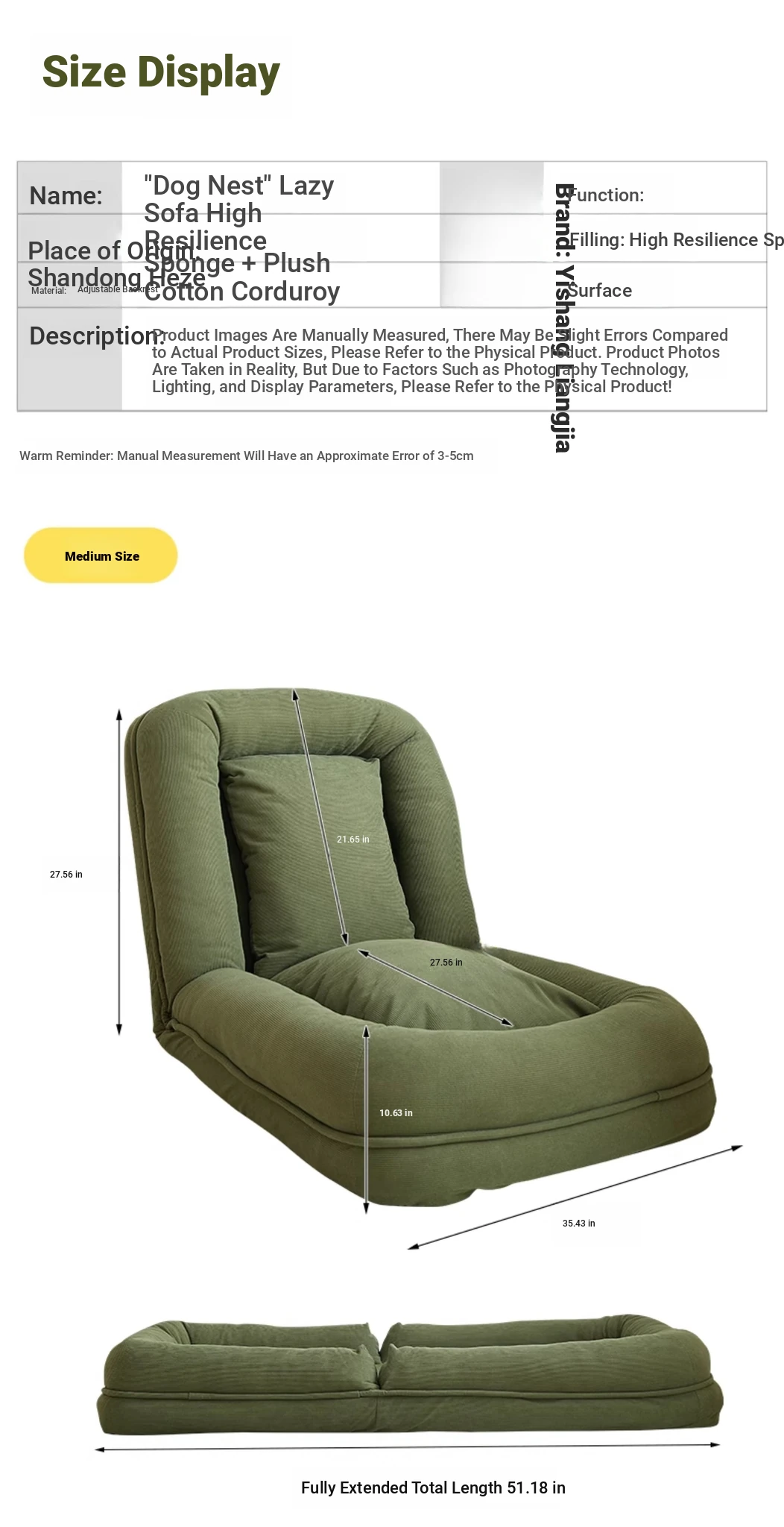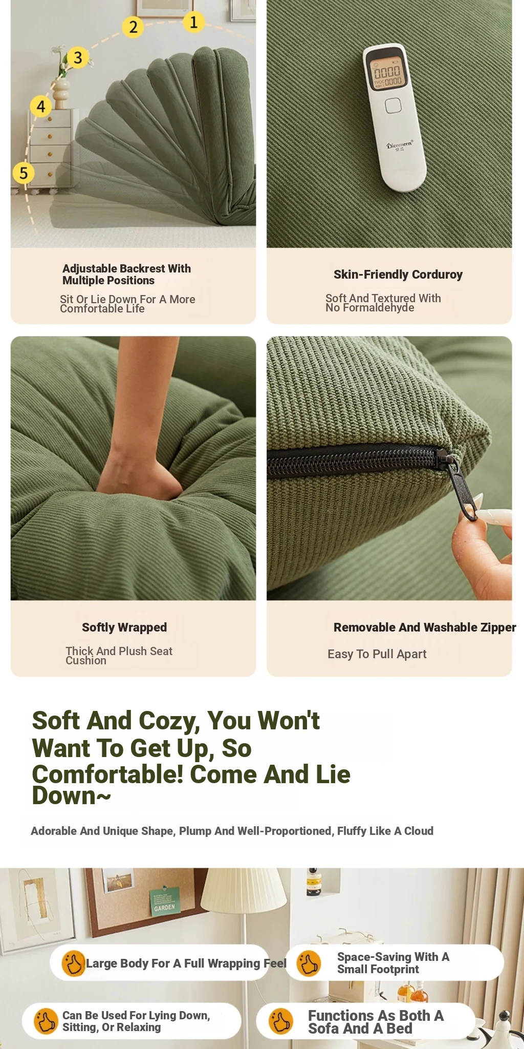 Upgraded Large Size - Thickened New Model [Unfold 185Cm*95Cm] Skin-Feeling Corduroy Fabric - Dark Green [Free Backrest + Cushion]