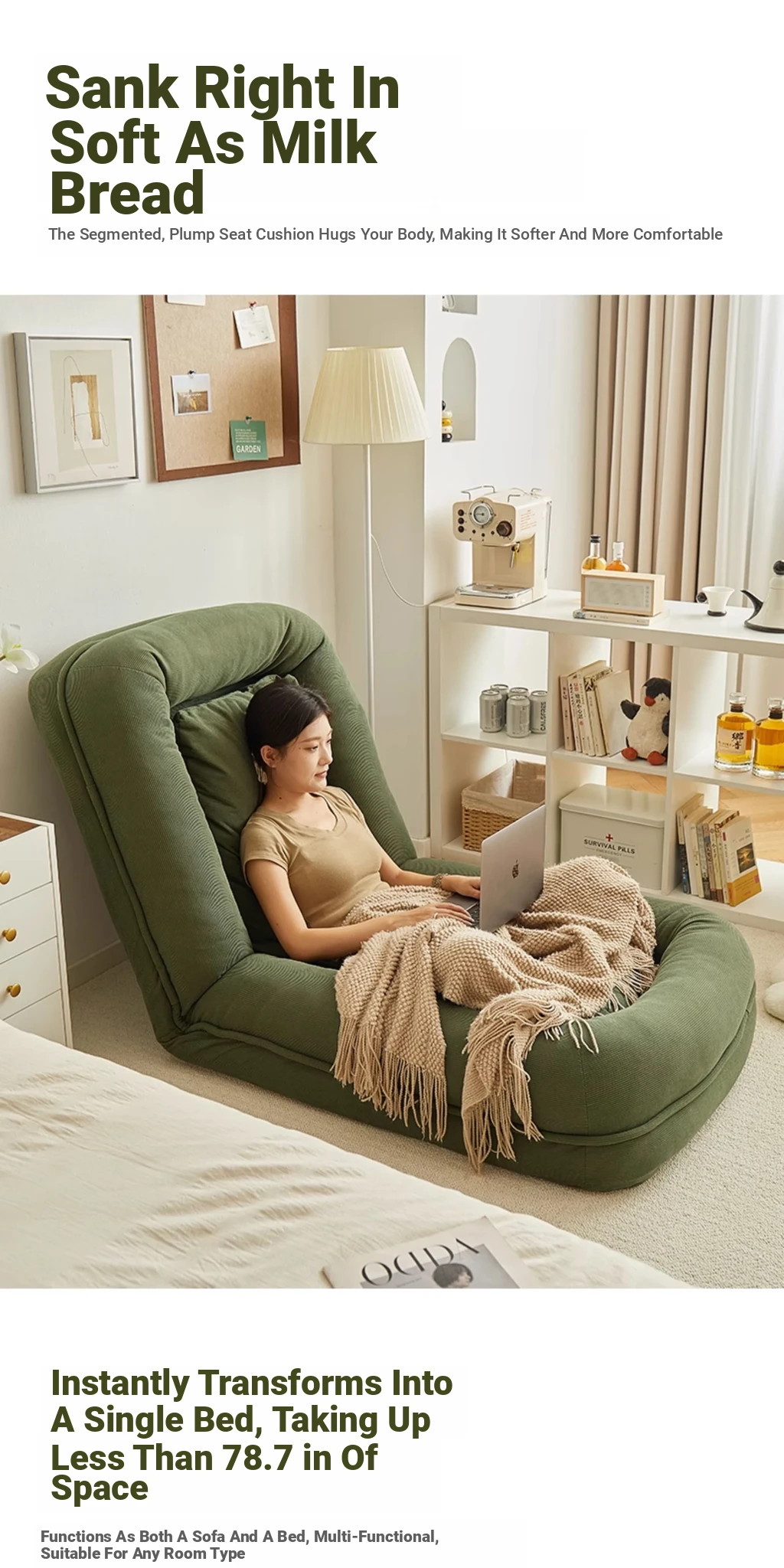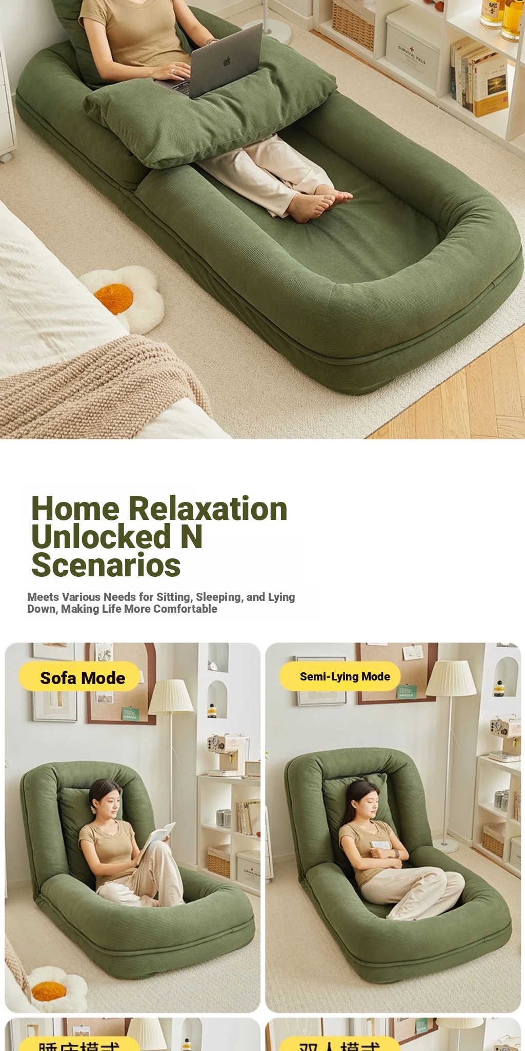 Comfortable Lazy Sofa Bed - Versatile Folding Bed for Adults and Pets, Perfect for Small Spaces, Tatami Style for Girls and Single Rooms