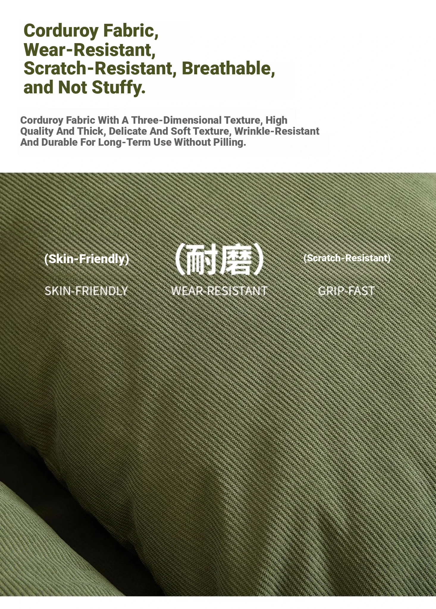 Large Size - Thickened New Style [Expanded 178Cm*95Cm] Skin-Feeling Corduroy Fabric - Dark Green [Free Backrest + Seat Cushion]