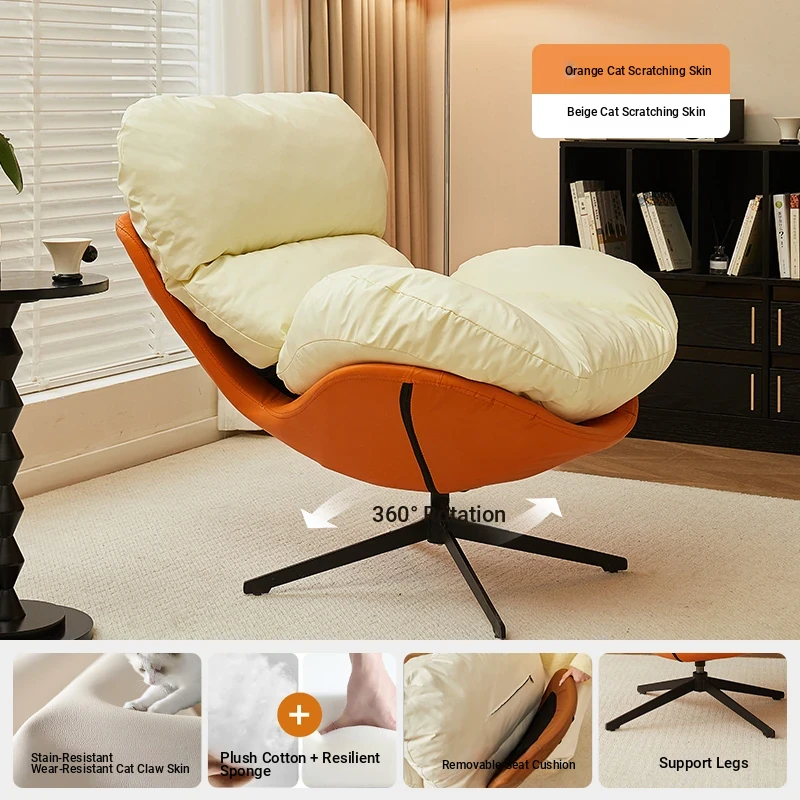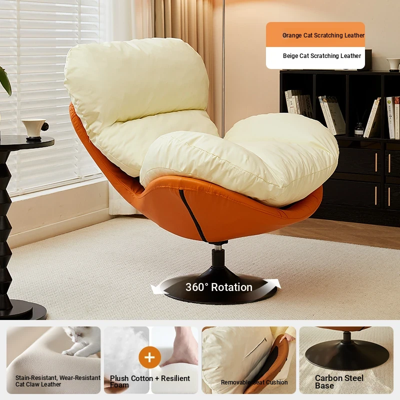 【Orange】Cream White Cat Scratch Leather - Upgraded Black Frame (Rotatable + Thickened Padding + Cloud-Like Comfort)