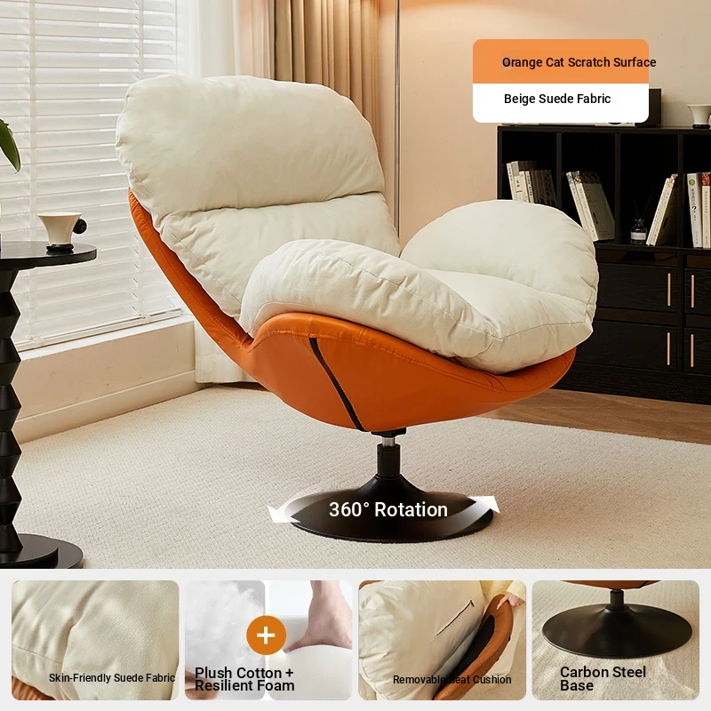 【Orange】Creamy White Suede - Upgraded Black Frame (Rotatable + Thickened Padding + Cloud-Like Comfort)