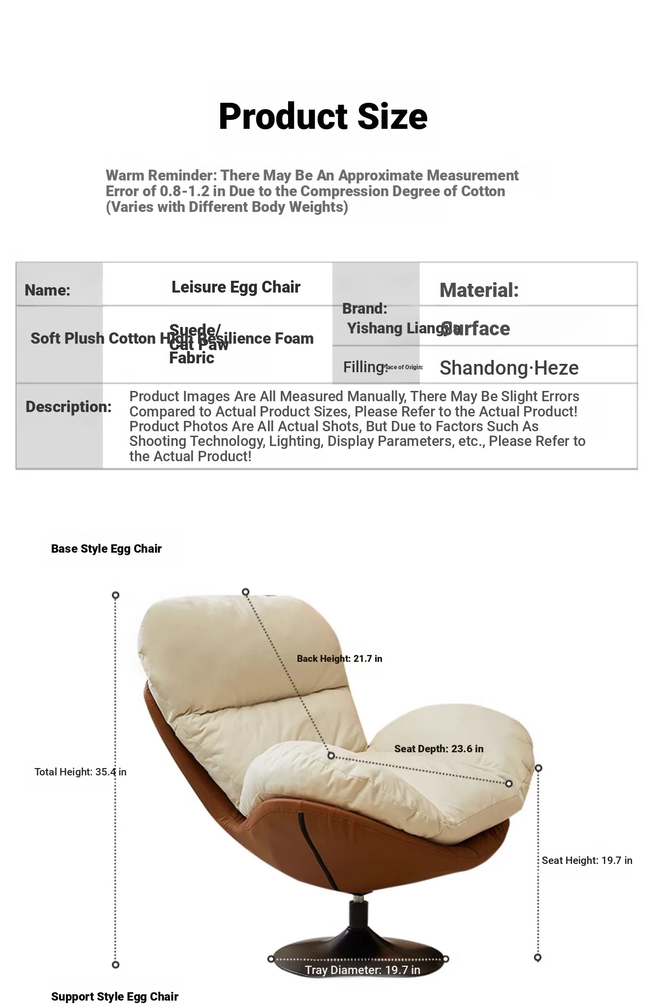 Comfortable Rocking Chair for Living Room - Stylish Lounge Sofa for Home, Balcony, and Relaxation. Rotating Egg Chair Design for Ultimate Leisure and Style. Perfect for Single Use!