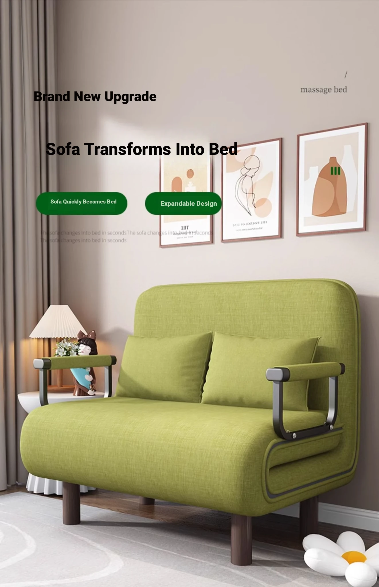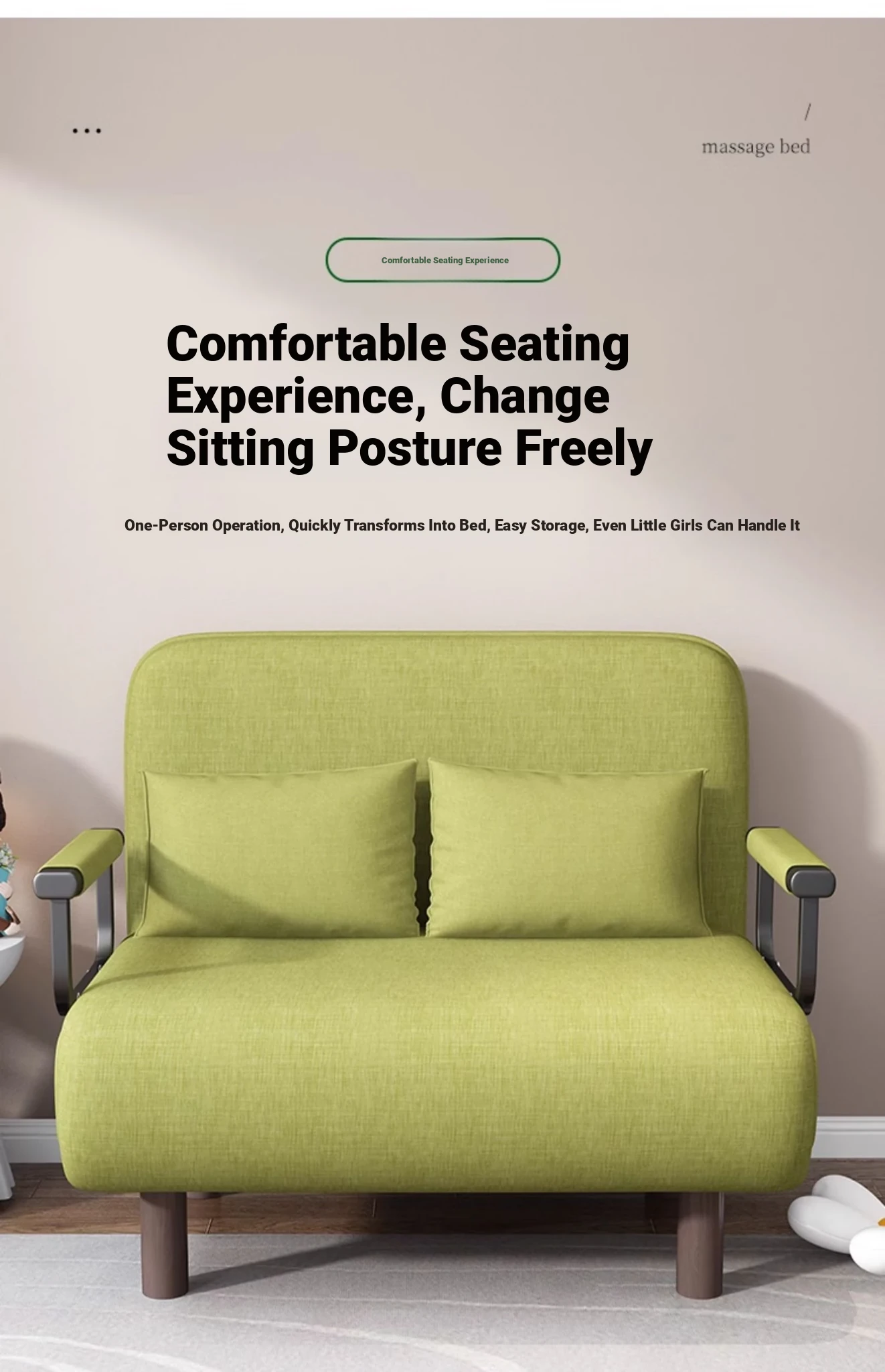 Compact Foldable Sofa Bed for Home - Versatile 2-in-1 Design for Small Living Rooms, Balconies, and Study Rooms - Perfect Single Bed Solution for Limited Spaces
