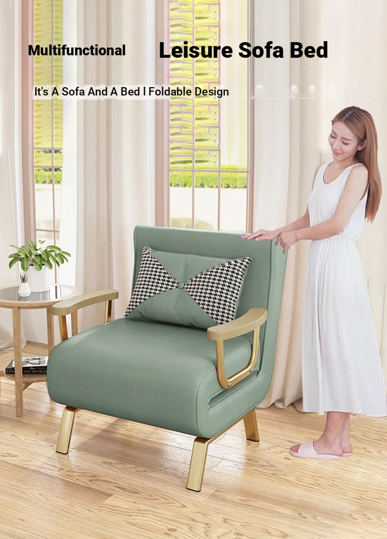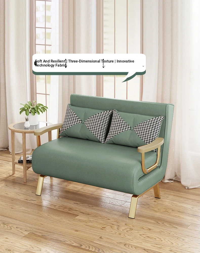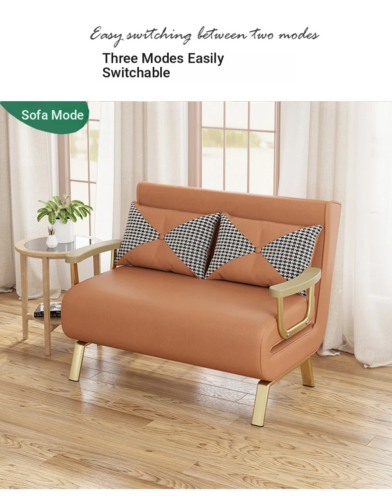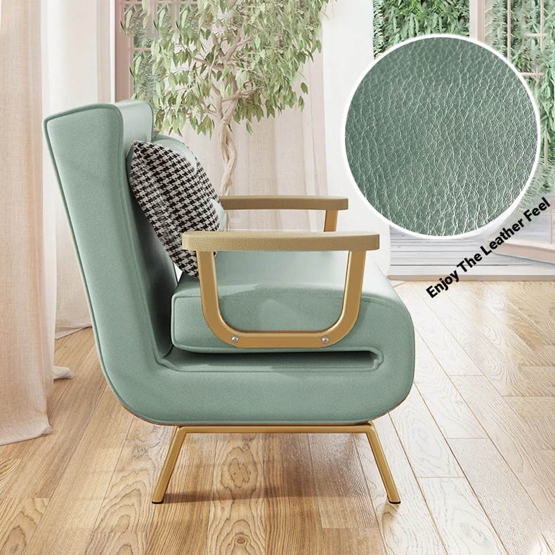 Compact Folding Sofa Bed - Versatile Leather Upholstered Single Sofa for Small Spaces, Perfect for Balconies and Apartments, Space-Saving Design with Extendable Features