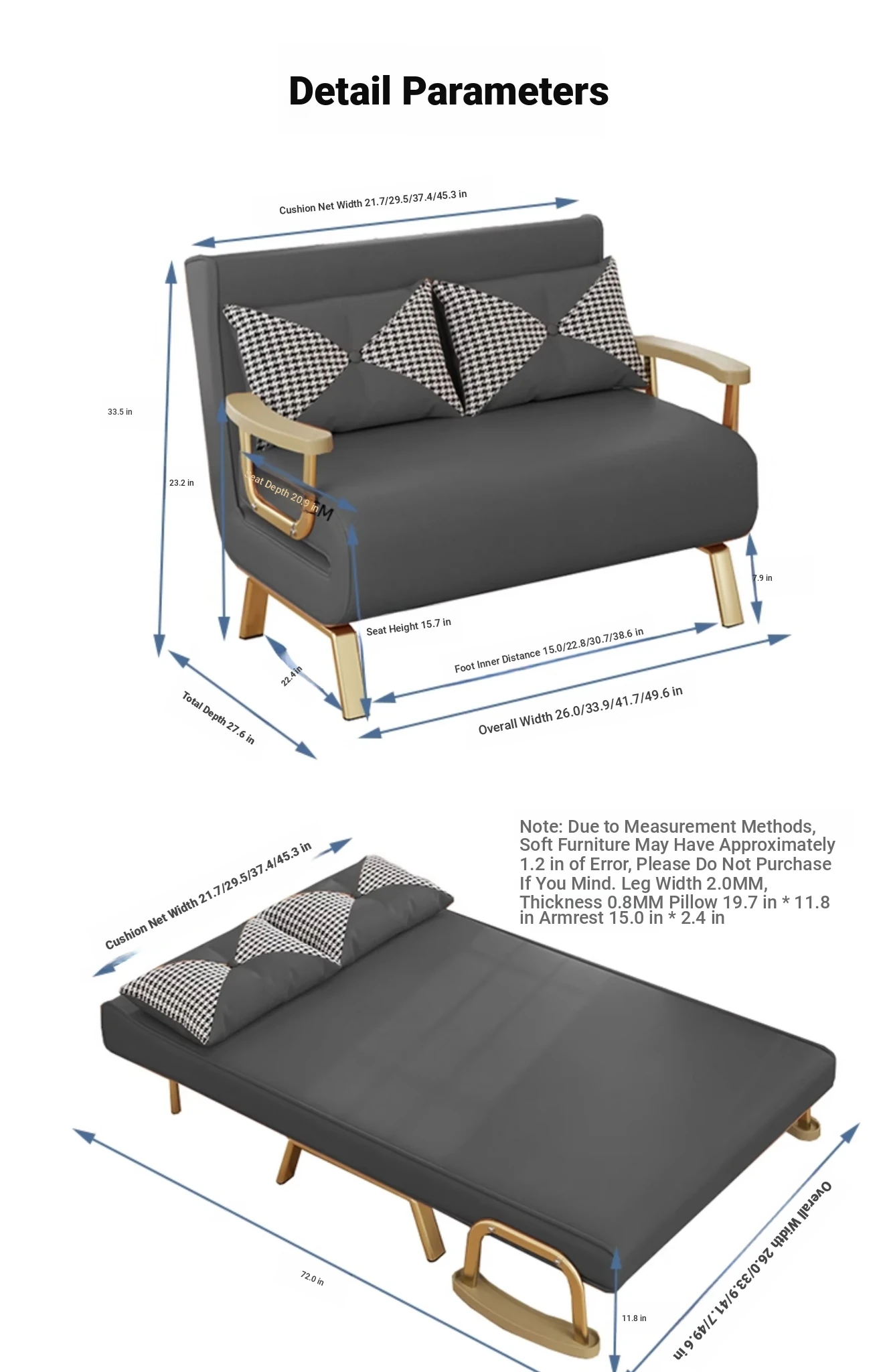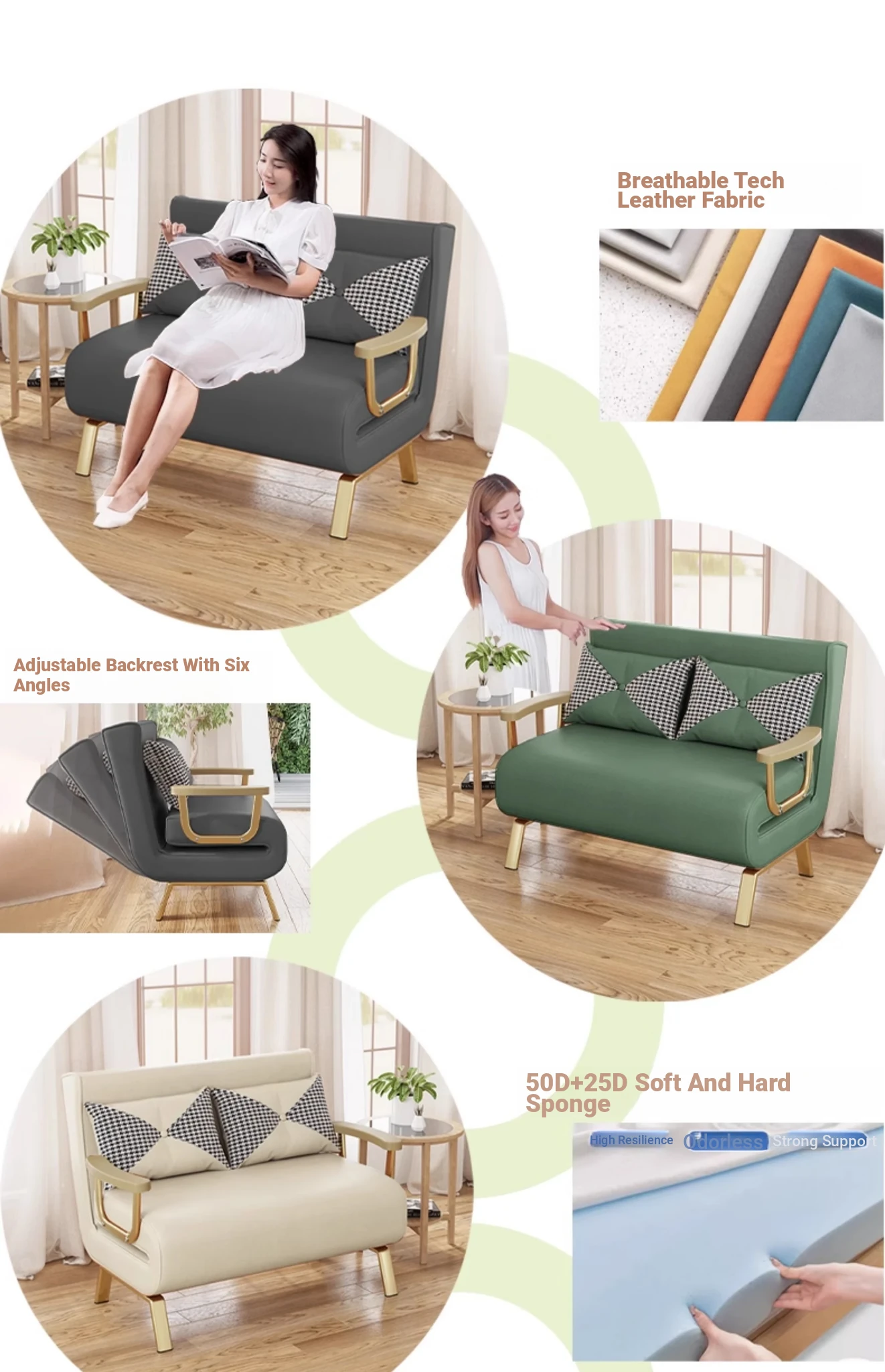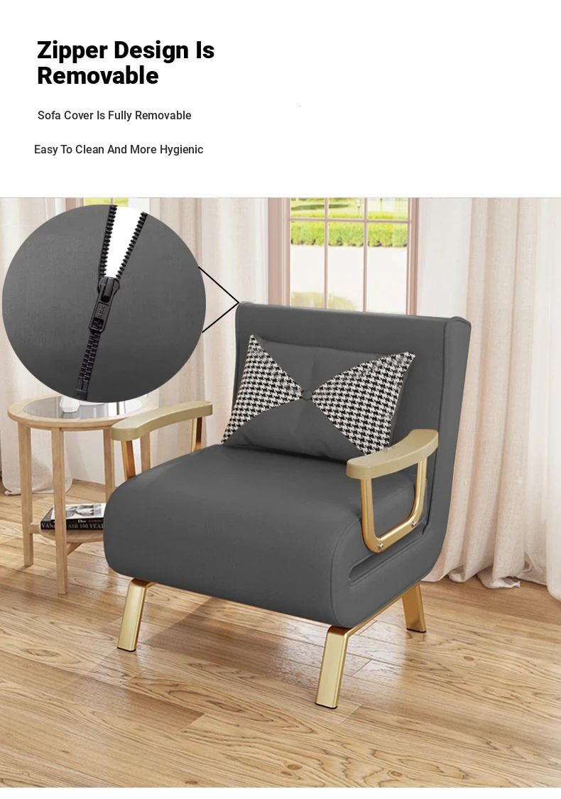 Compact Folding Sofa Bed - Versatile Leather Upholstered Single Sofa for Small Spaces, Perfect for Balconies and Apartments, Space-Saving Design with Extendable Features