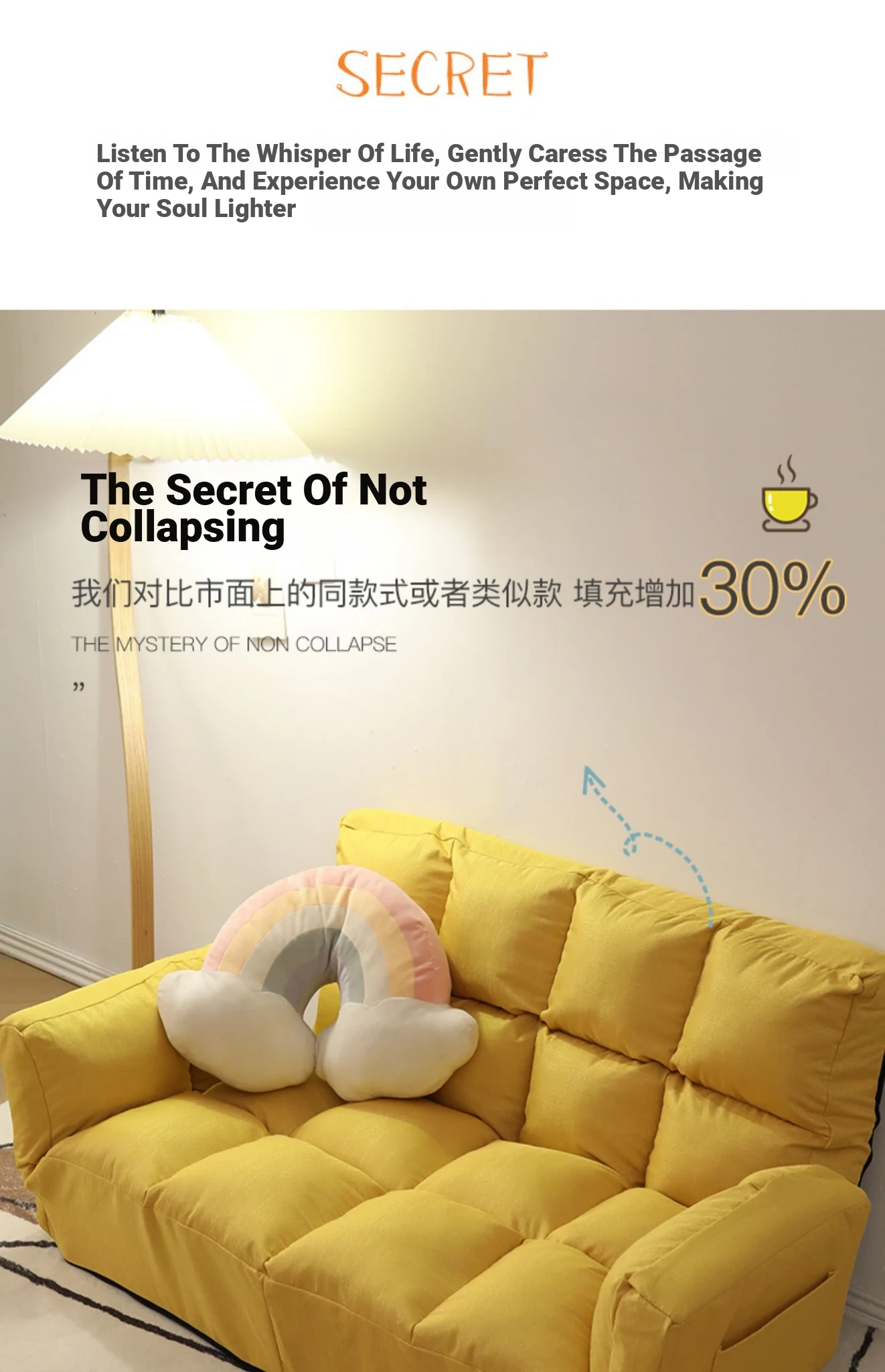 [Deluxe Thick] [Backrest Five Gear Adjustment] Yellow + Two Pillows