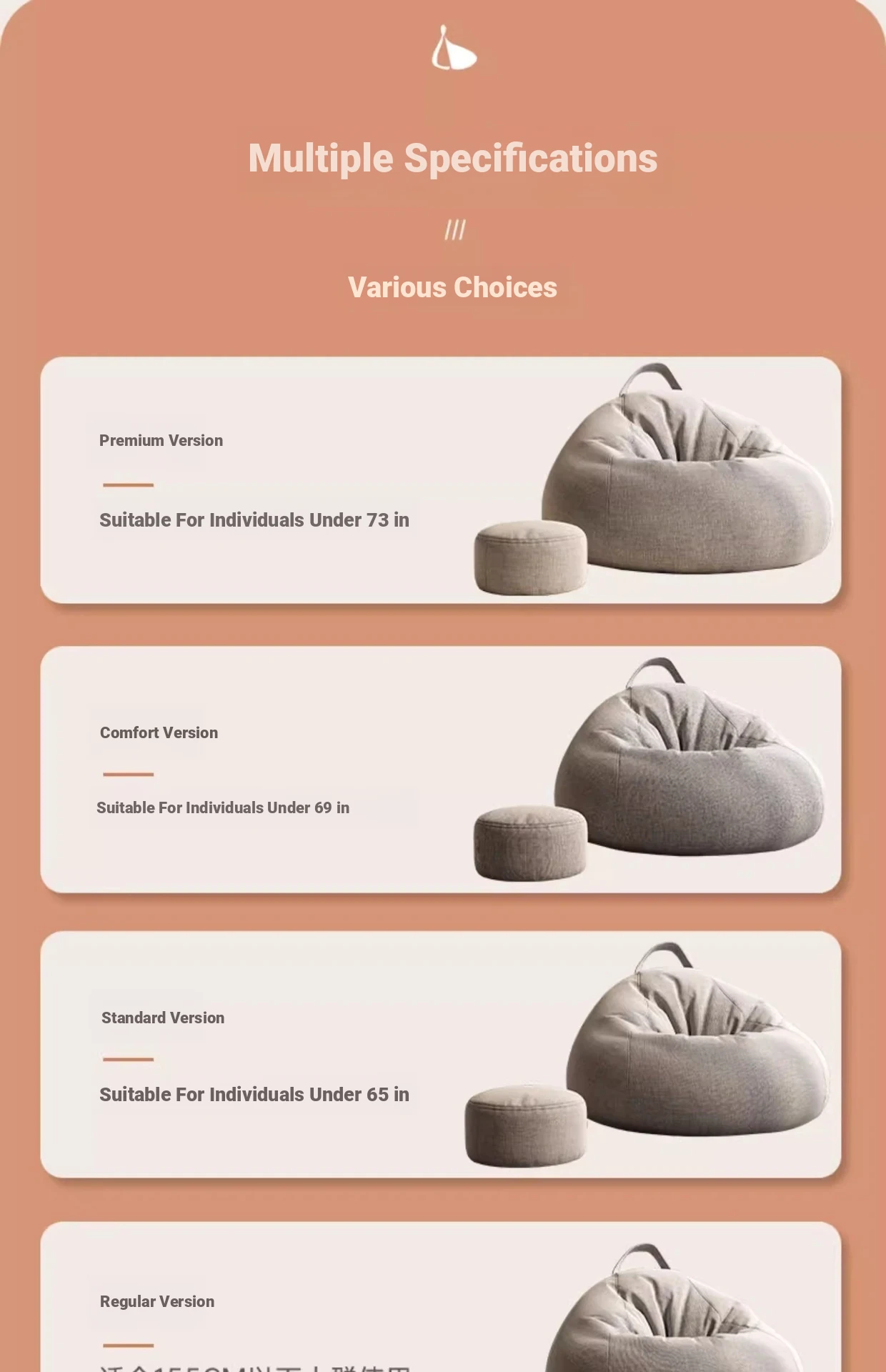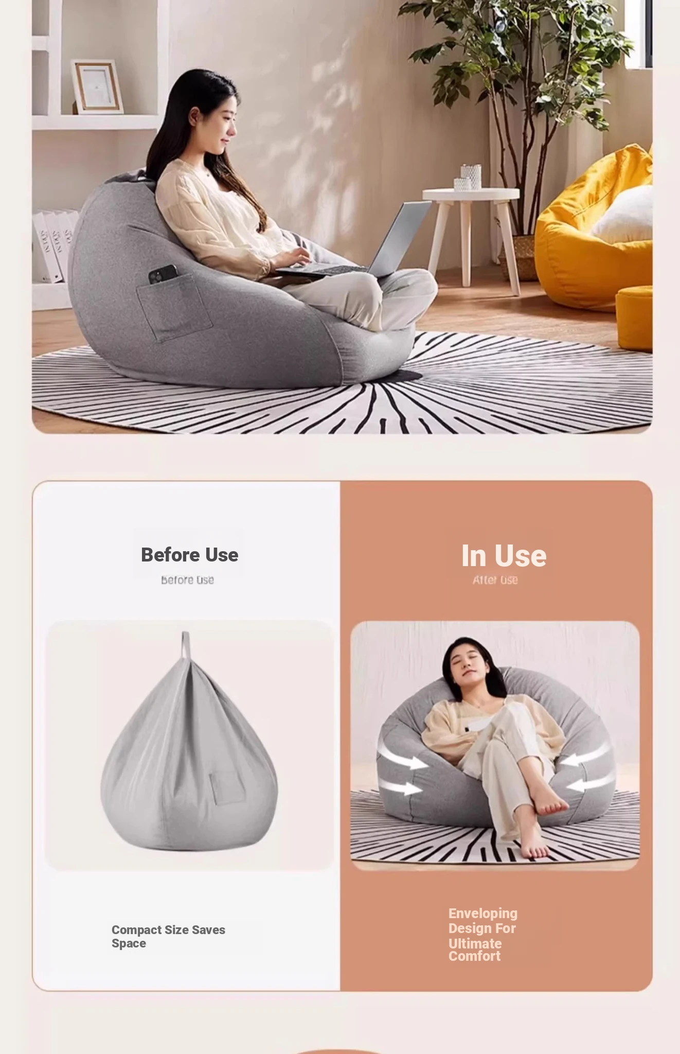 Cozy Bean Bag Sofa for Home - Versatile Lounge Chair for Bedroom, Balcony, or Small Spaces - Perfect for Relaxing, Napping, or as a Cozy Spot for Pets!