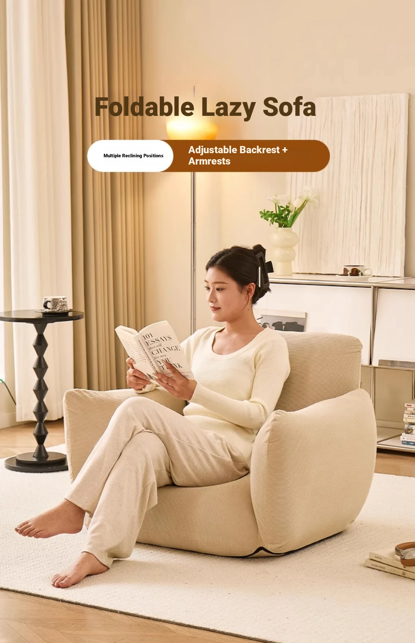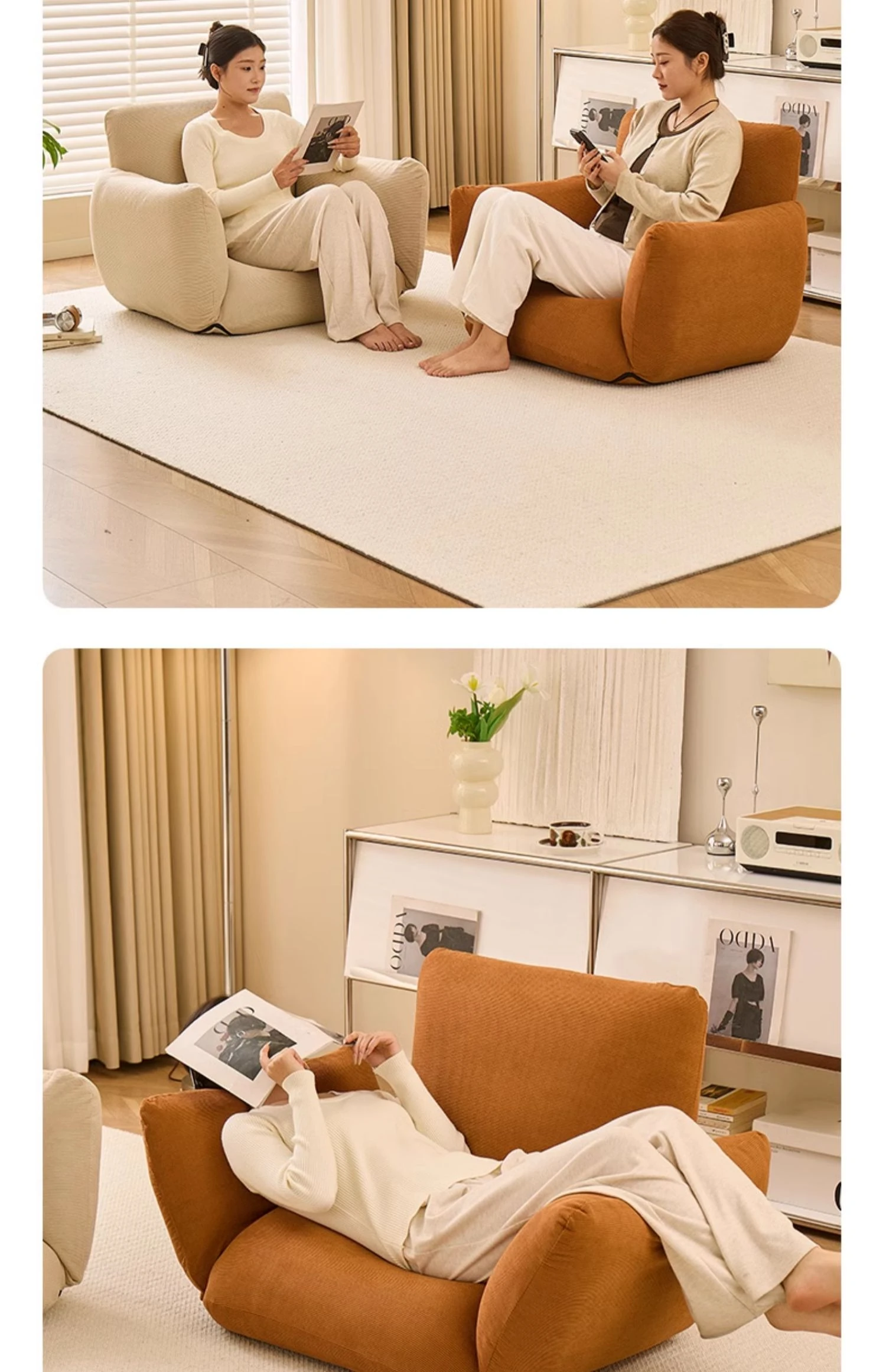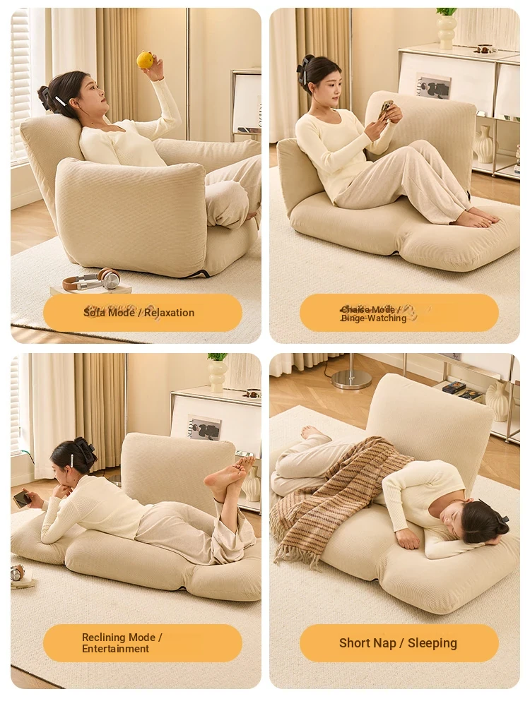 Cozy Lazy Sofa Chair - Foldable, Reclining, and Perfect for Bedroom or Balcony Use - Ideal for Tatami or Floor Seating, Single Person Snuggle Chair with Backrest