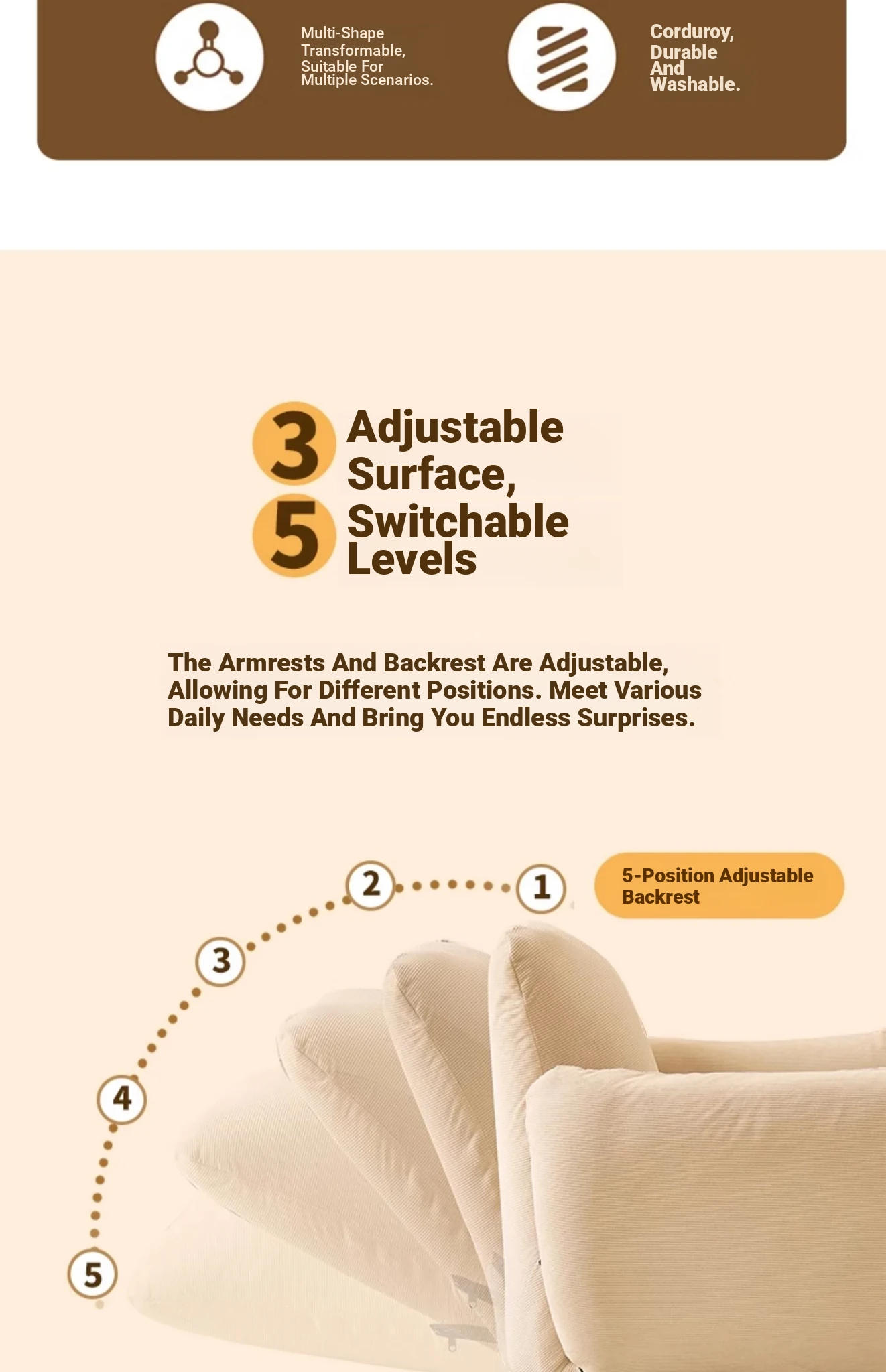Creamy-white [Comfortable corduroy + three-sided multi-step adjustment + filling thickened]]