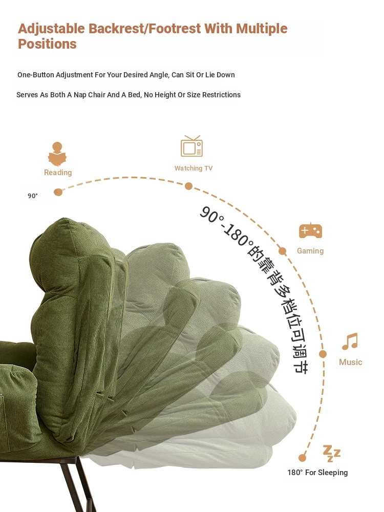 Skin-Friendly Corduroy-Dark Green☆Footrest + Armrest [Multi-Level Adjustable]