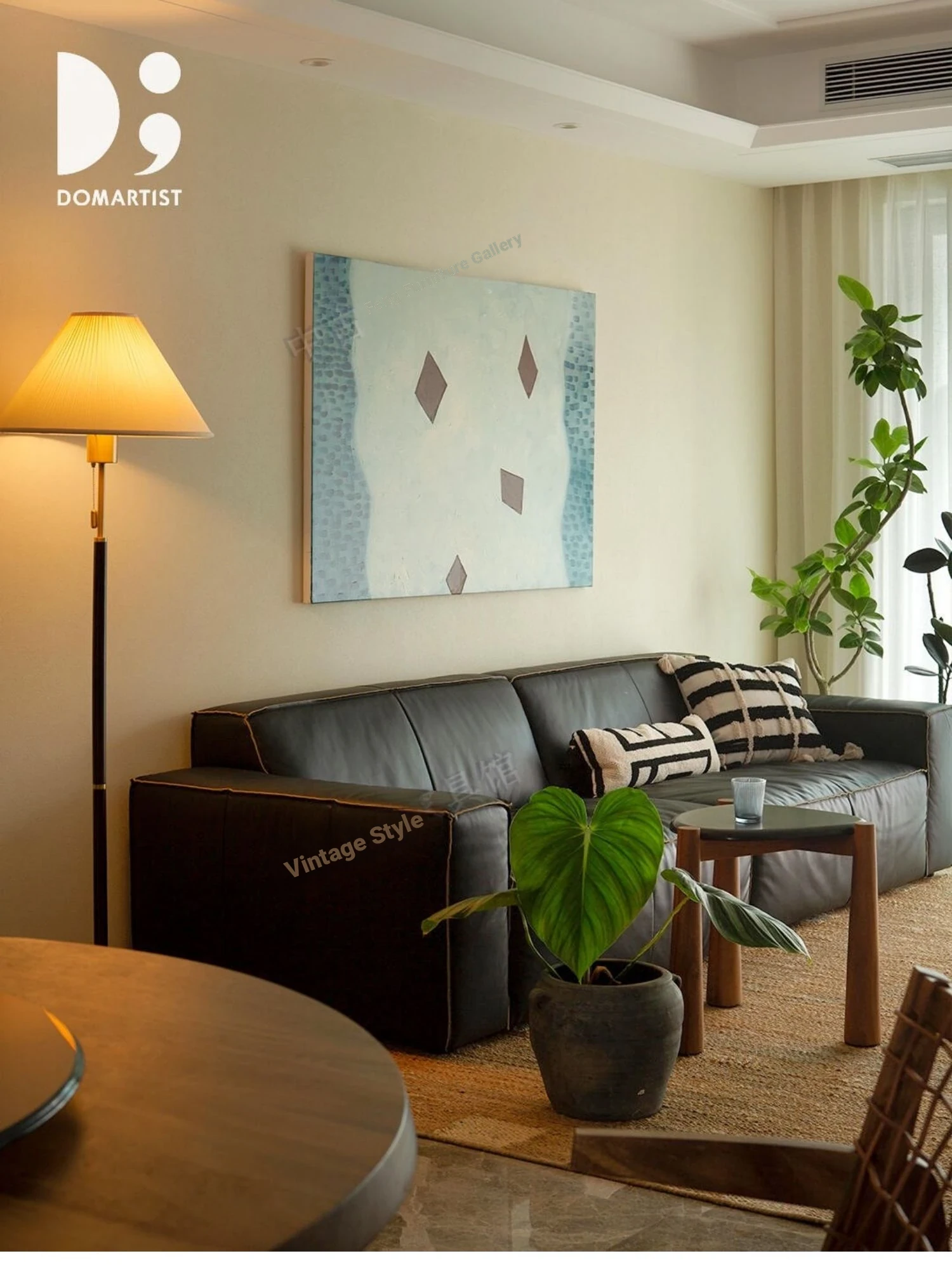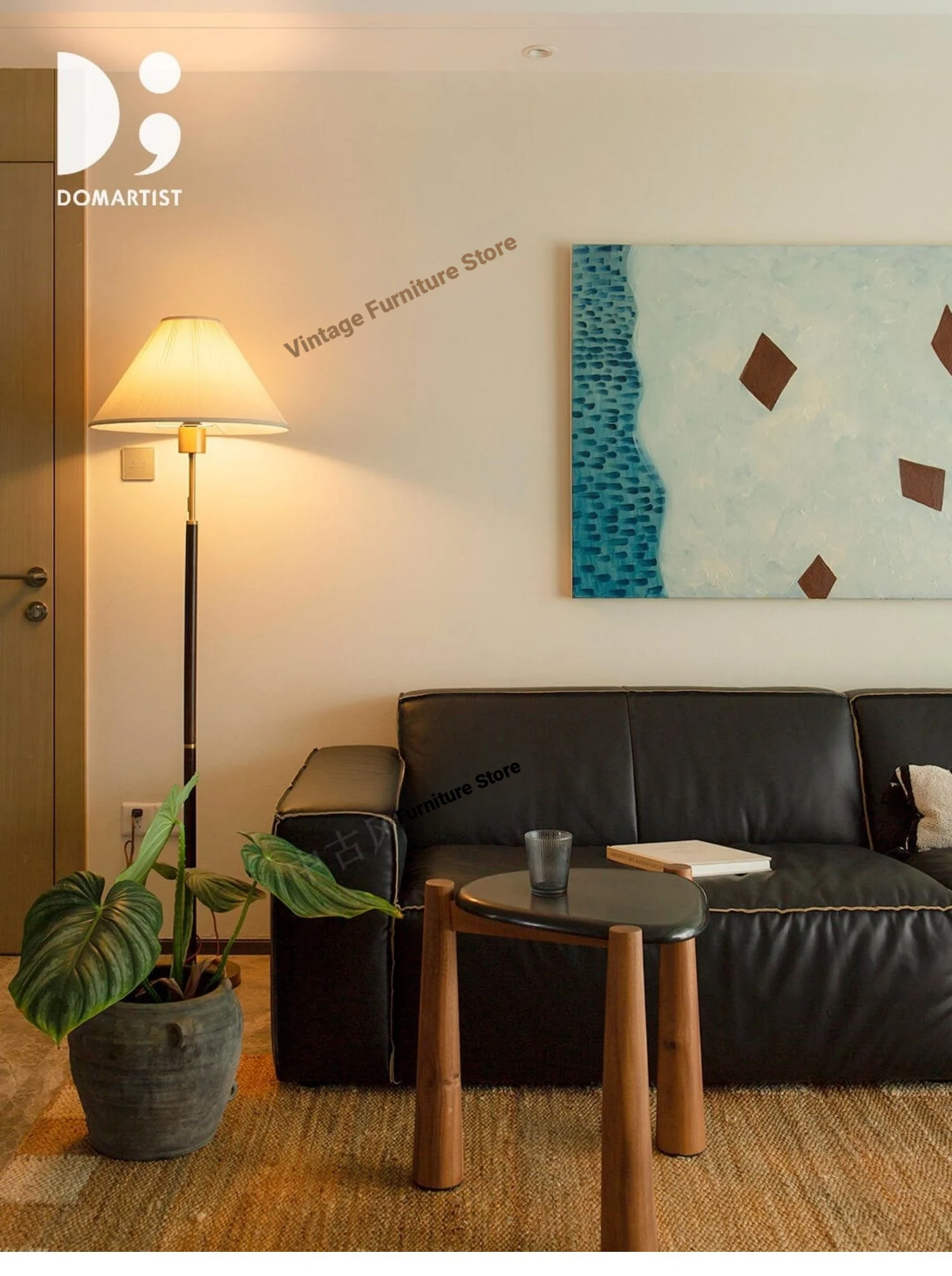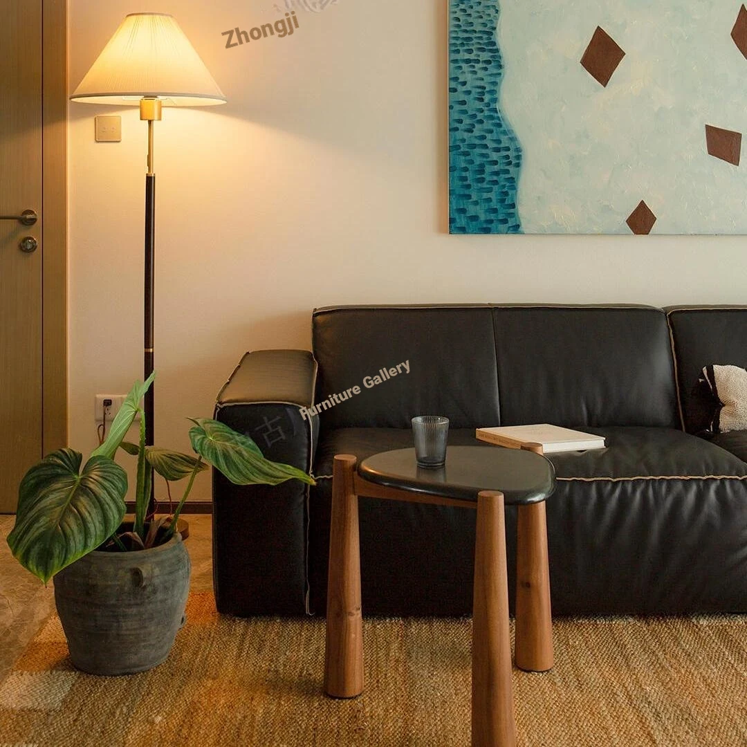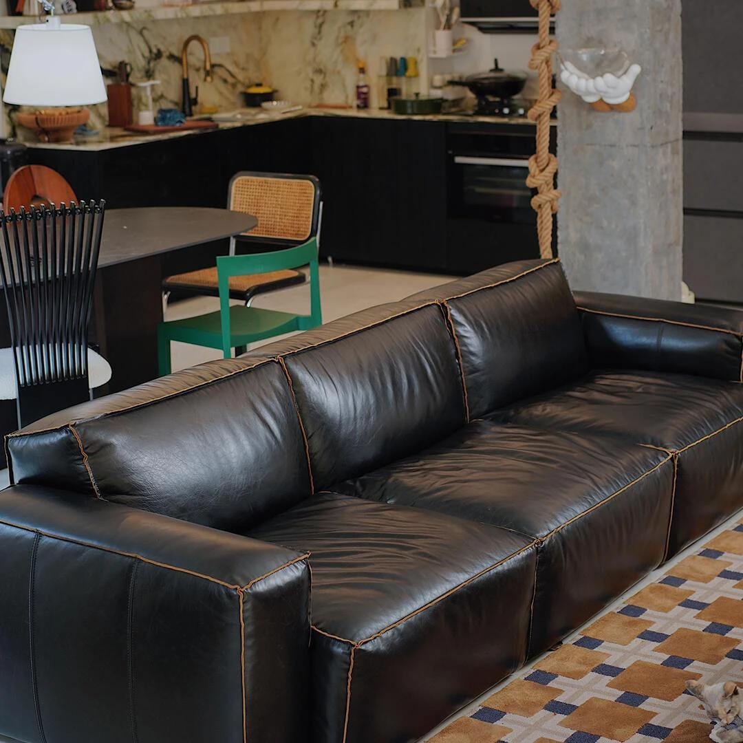 Designer Black Tofu Block Modular Sofa - Modern Minimalist Retro Oil Wax Three-Seater for Spacious Living Rooms