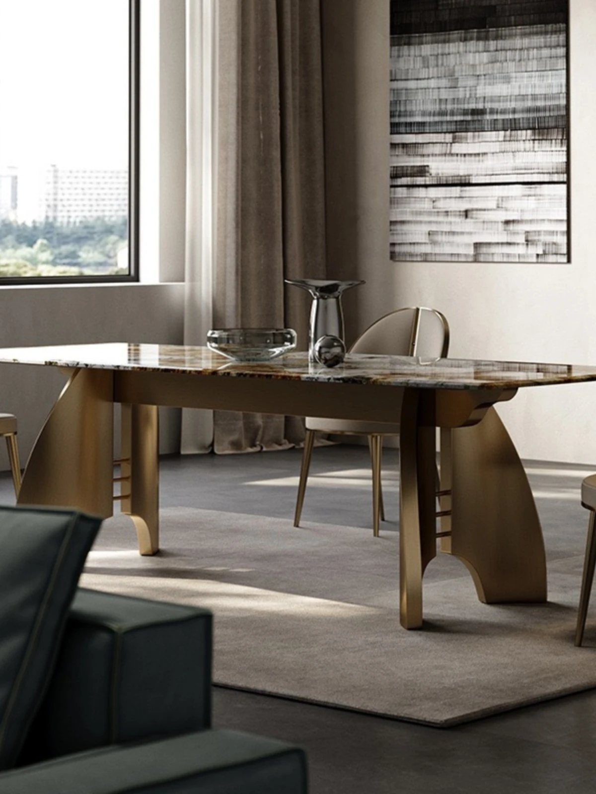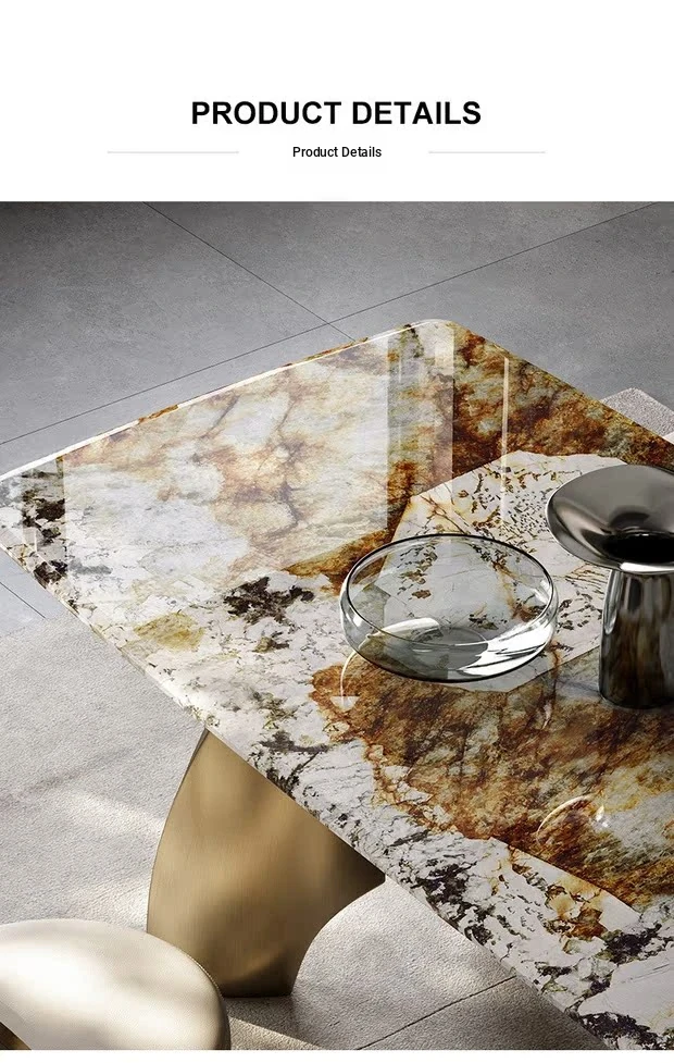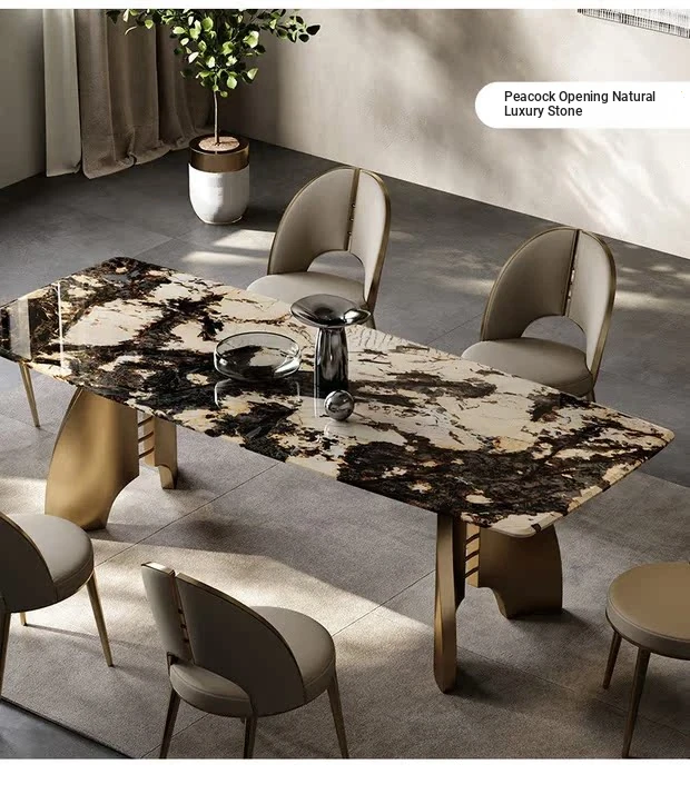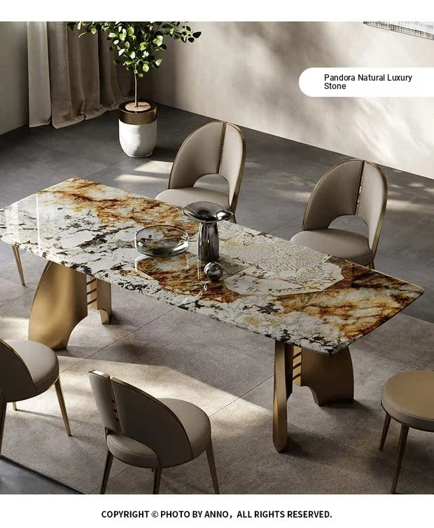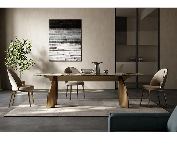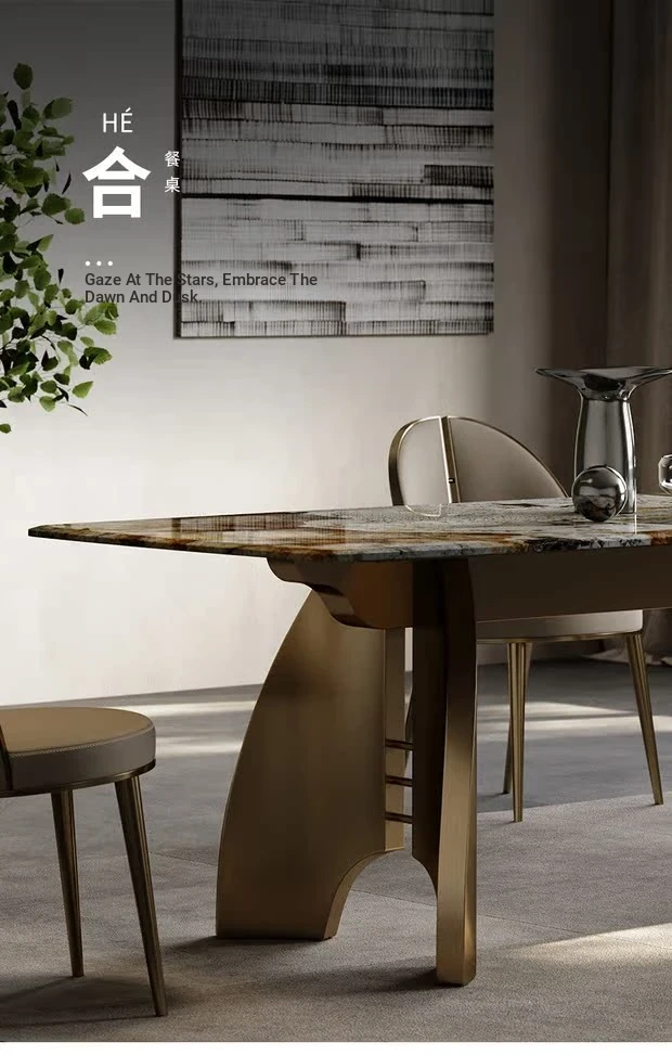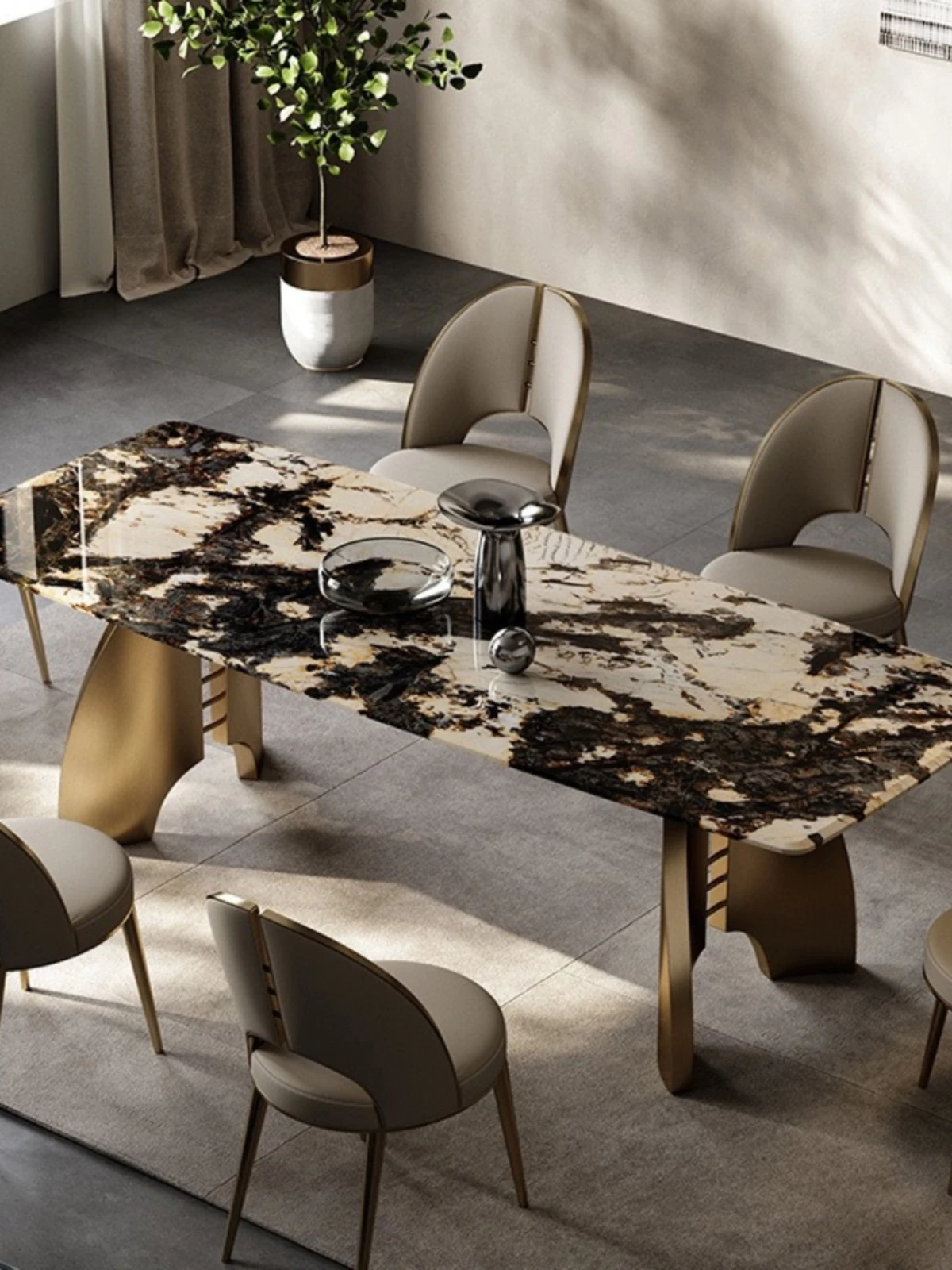 Designer Premium Luxury Marble Dining Table - New Italian Minimalist Style Dining Set for Villas, Featuring Elegant Marble Table and Chair Combination for Home Use.