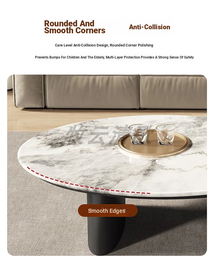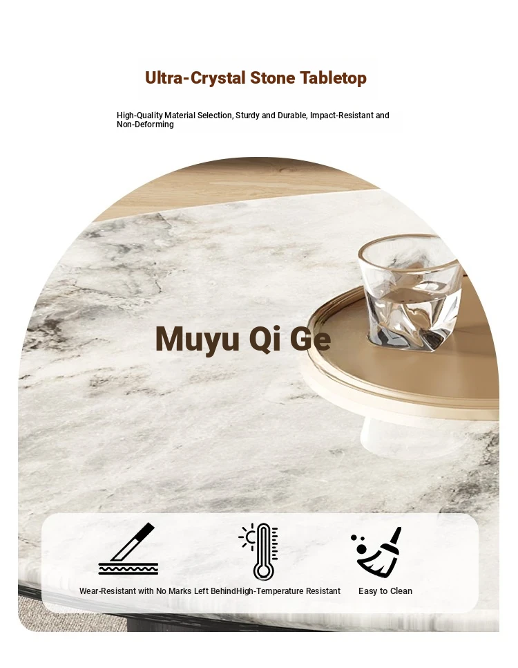 Elegant Italian Minimalist Oval Coffee Table for Small Living Rooms – Luxurious and Creative Design with Thick Ultra-Crystal Stone Finish