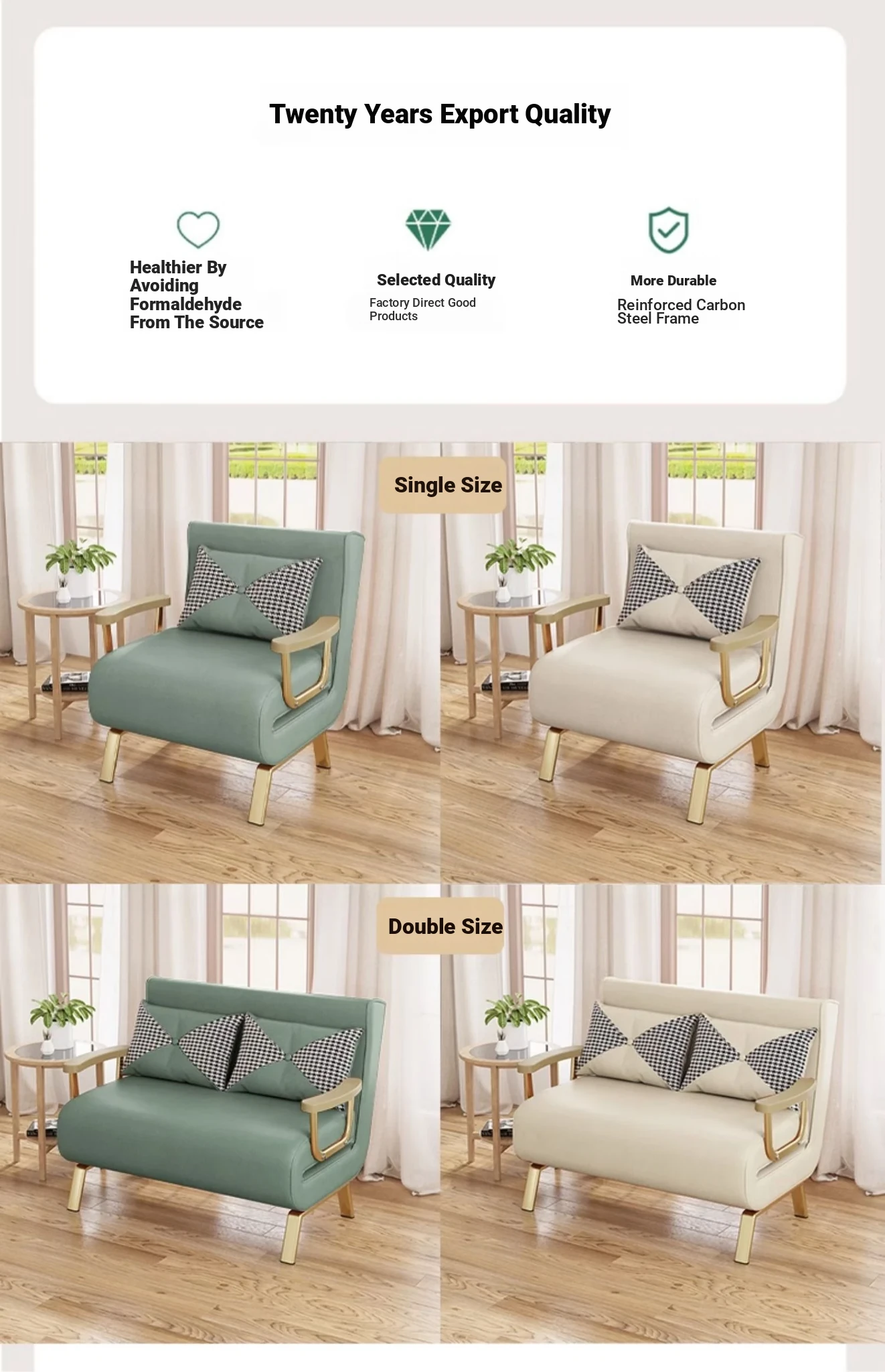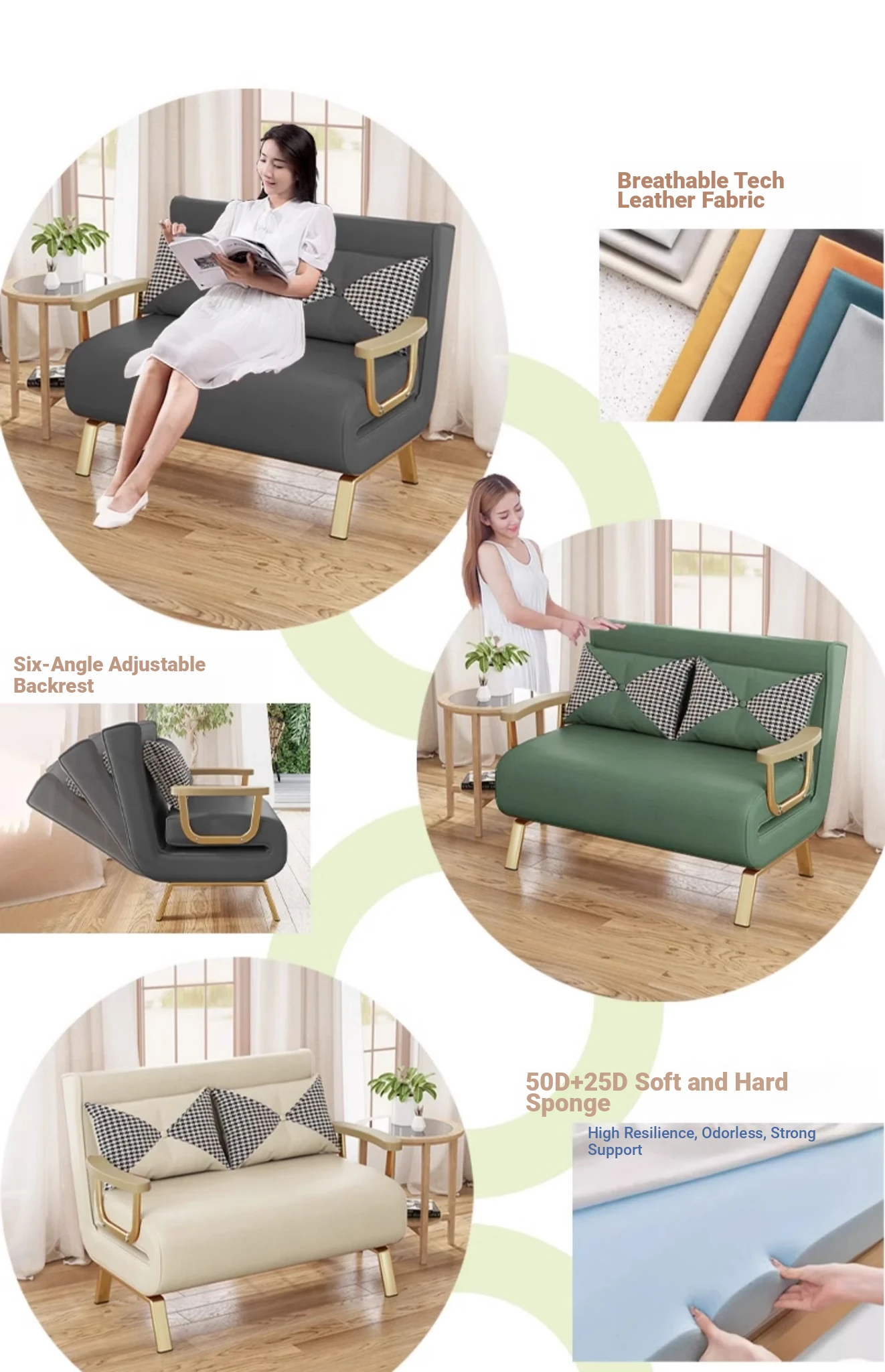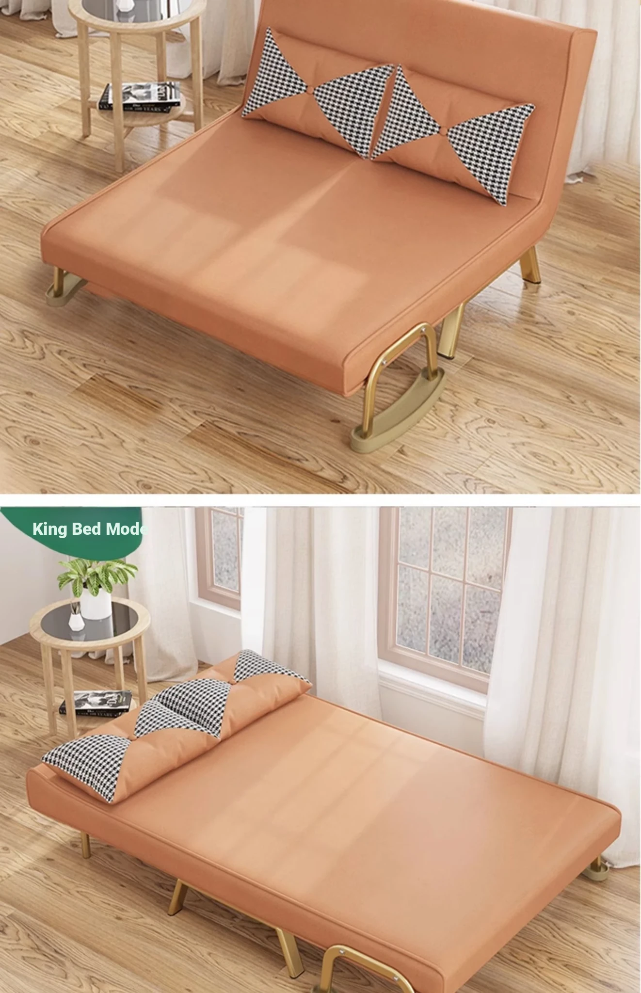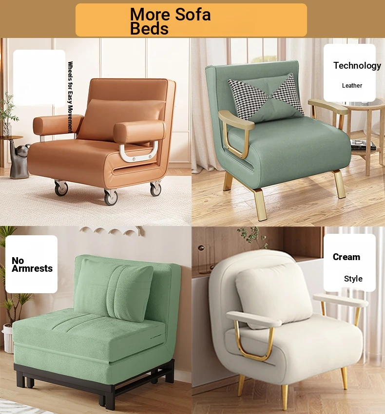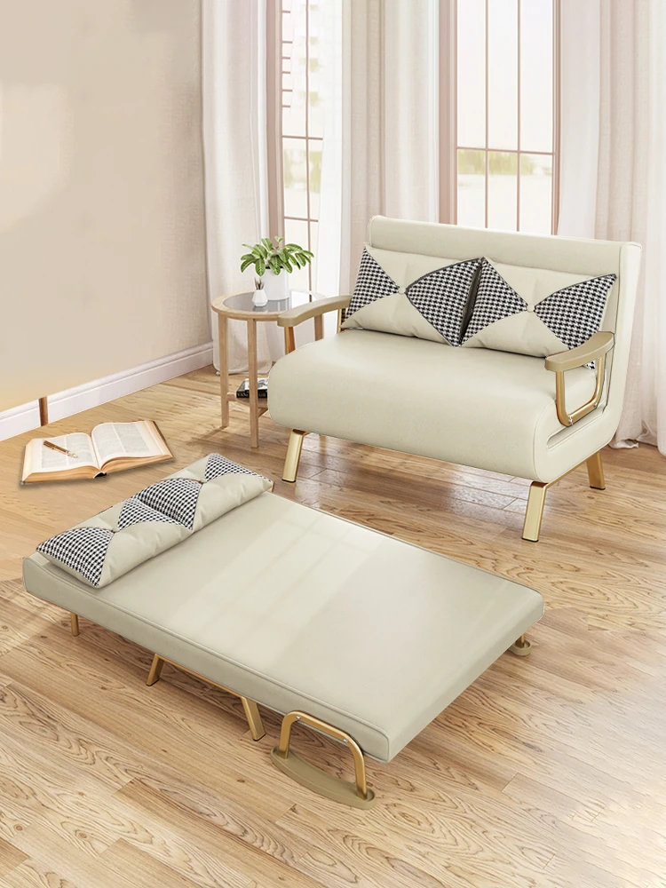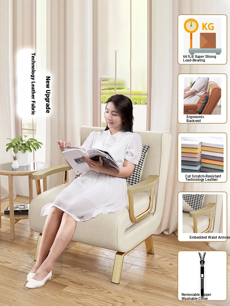 Foldable Sofa Bed - Versatile Lazy Sofa for Single or Double Use, Expandable for Balcony Naps, Trendy Cream Aesthetic Design