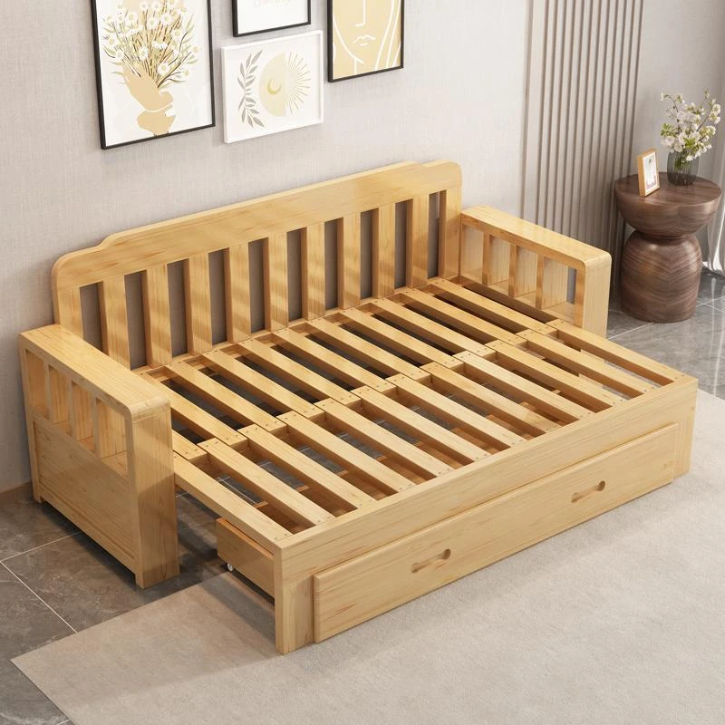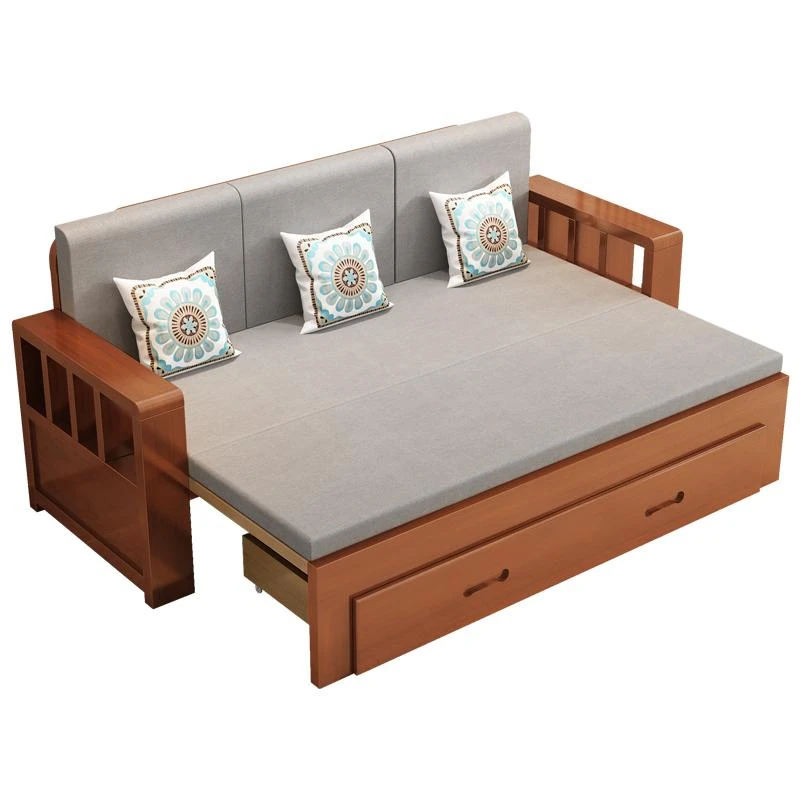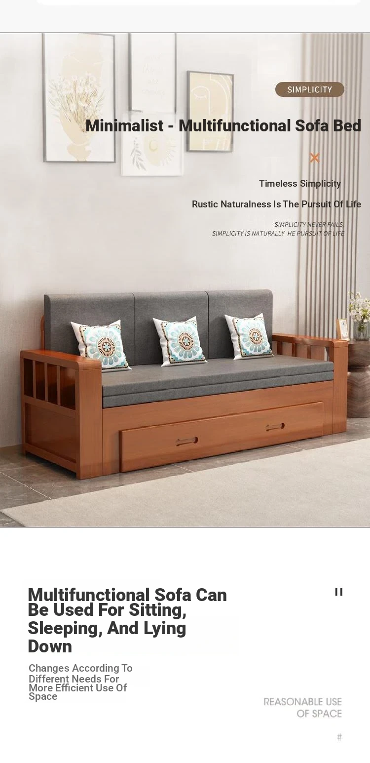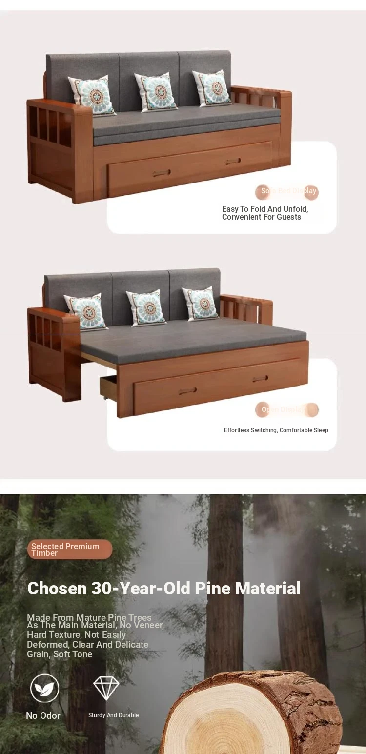 Free Shipping in Hong Kong: 2023 New Multi-Functional Solid Wood Folding Sofa Bed - Space-Saving Solution for Small Living Rooms!