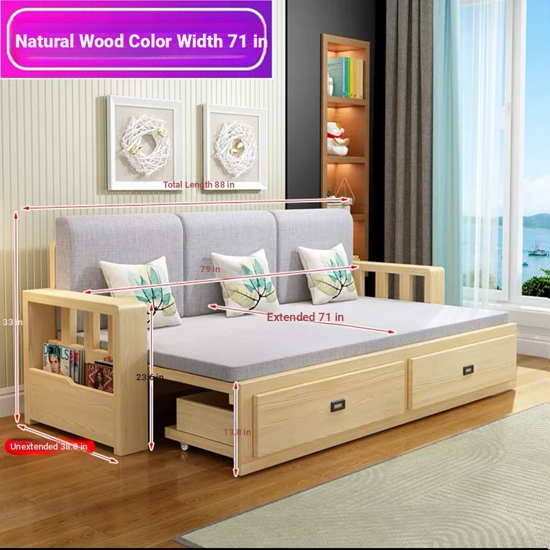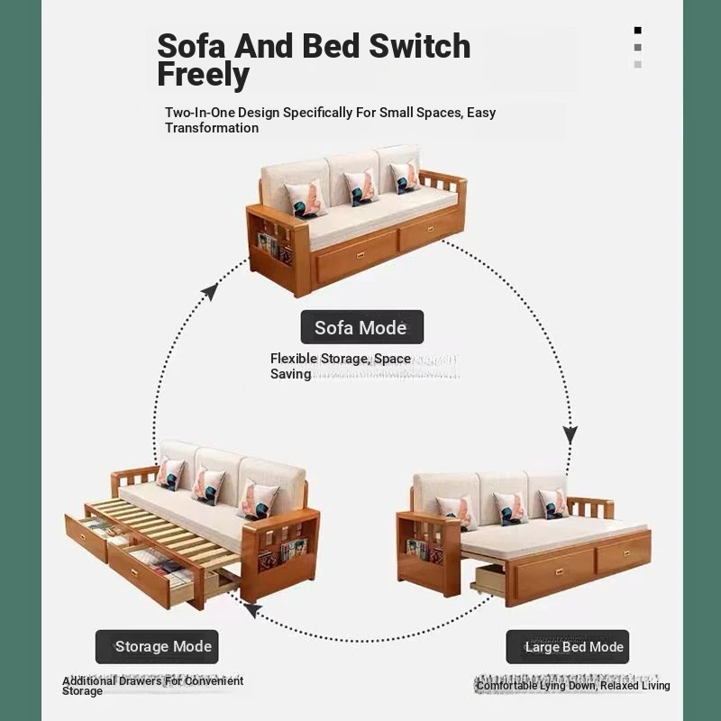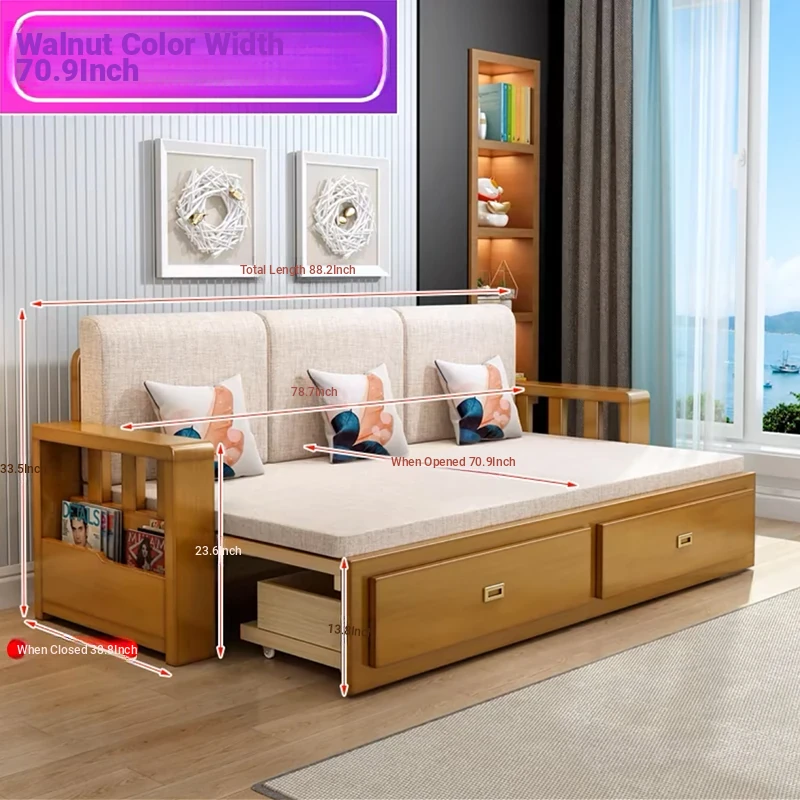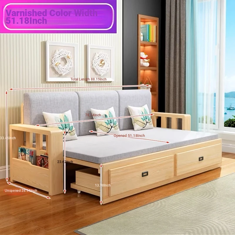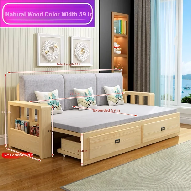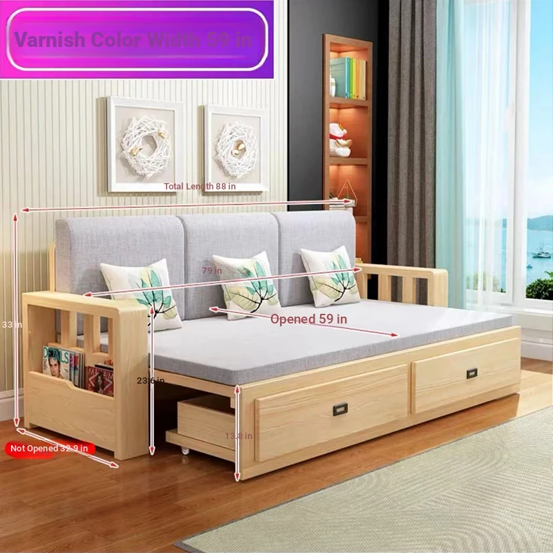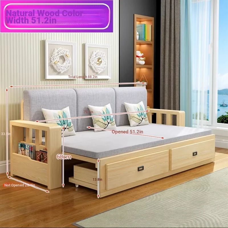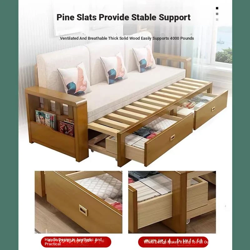 [Free Shipping to Hong Kong] Multifunctional Foldable Solid Wood Sofa Bed - 1.5m Space-Saving Pull-Out Design for Small Living Rooms - Perfect for Couples!
