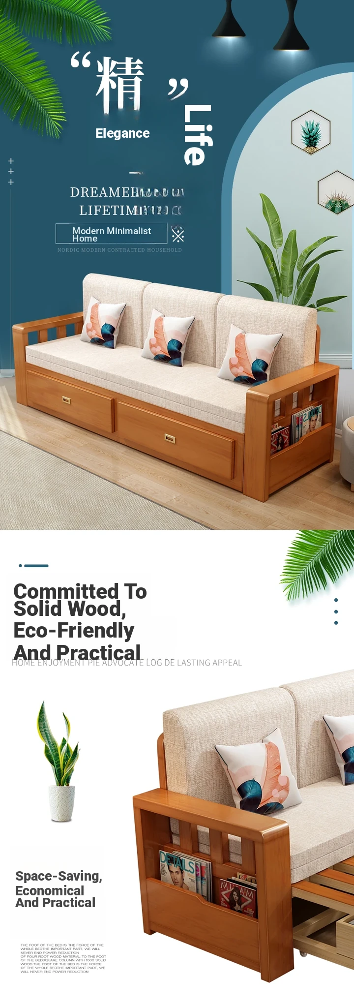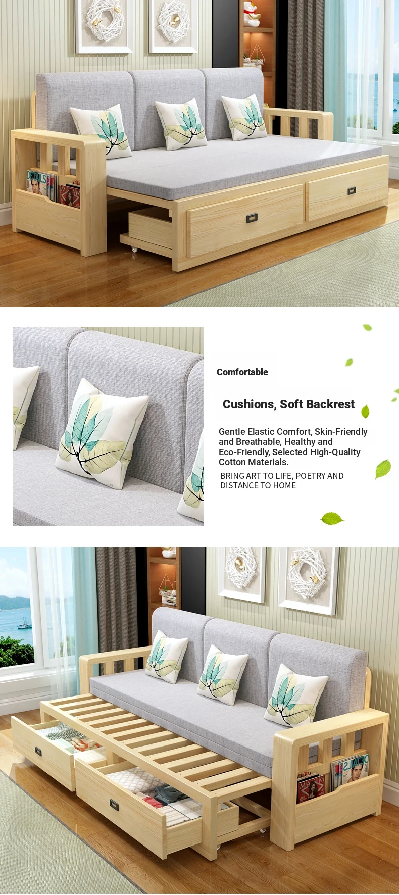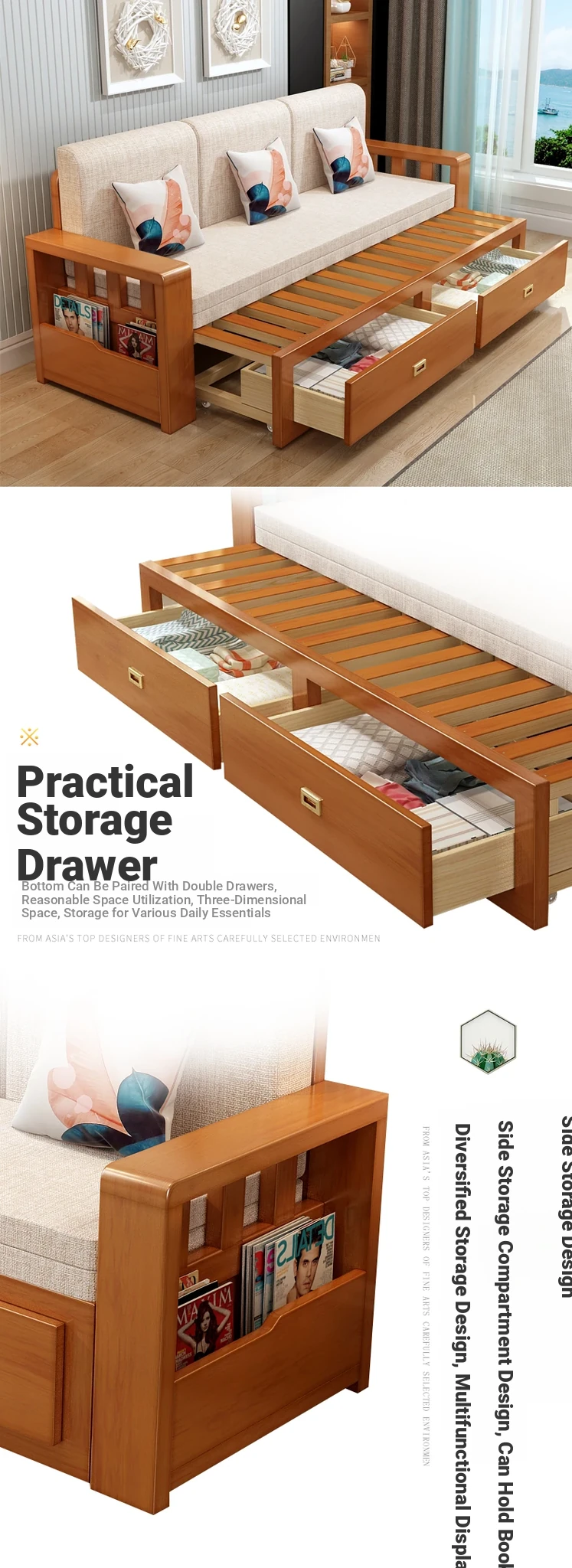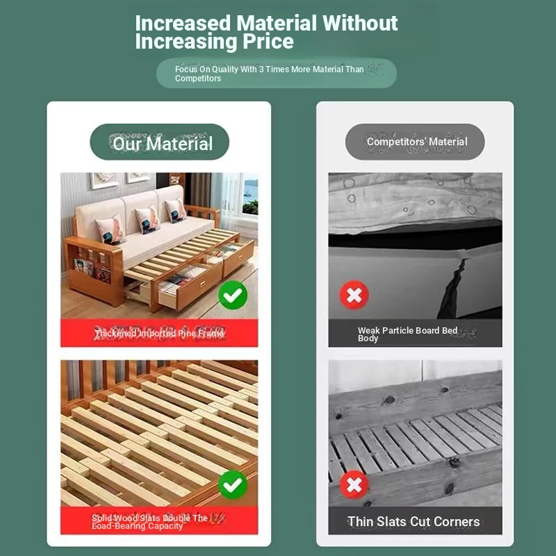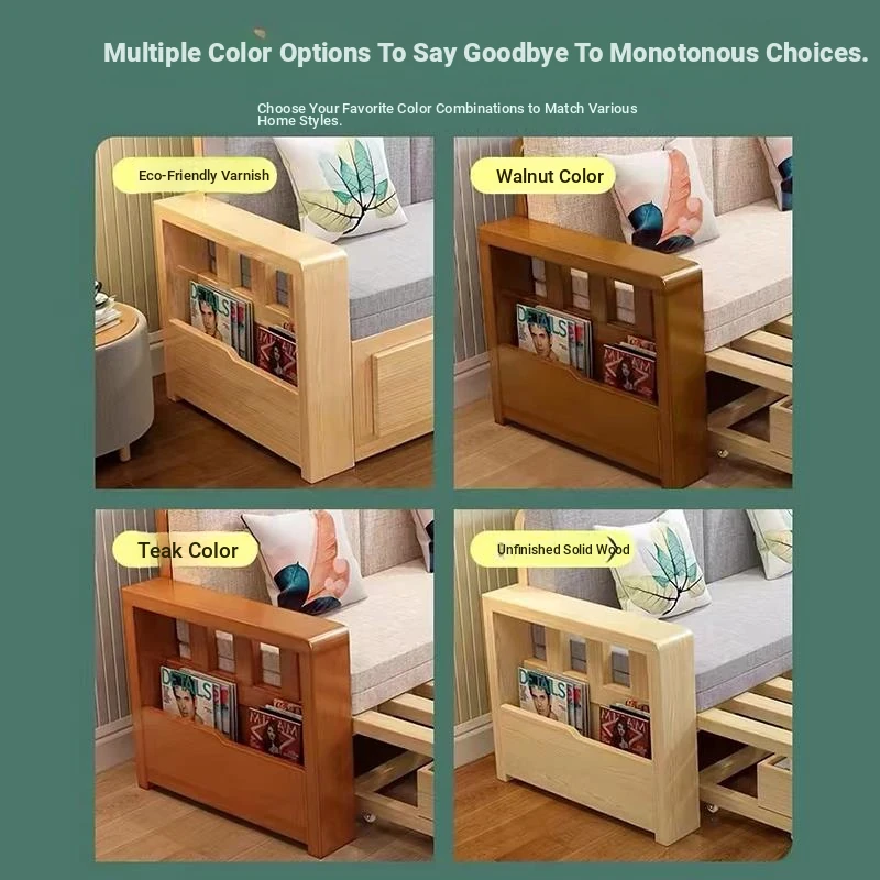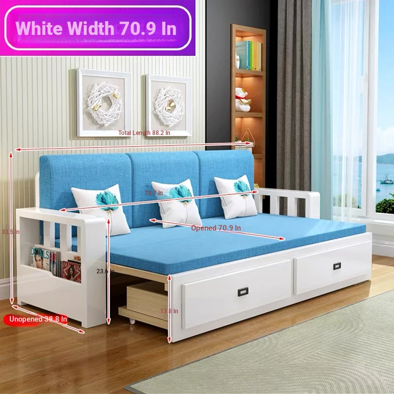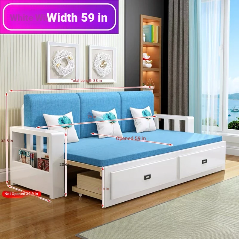 [Free Shipping to Hong Kong] Multifunctional Foldable Solid Wood Sofa Bed - 1.5m Space-Saving Pull-Out Design for Small Living Rooms - Perfect for Couples!
