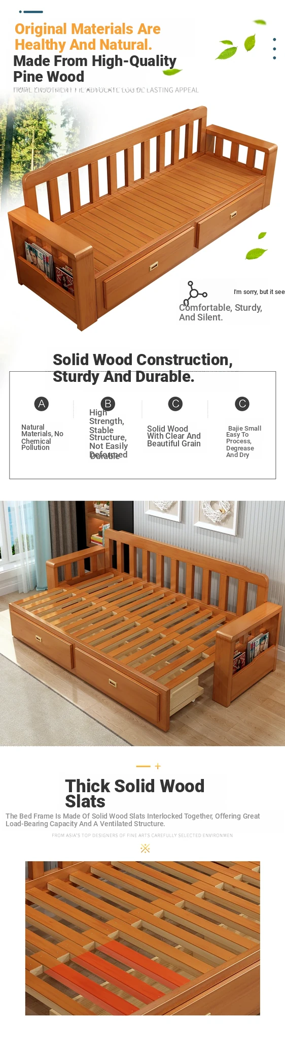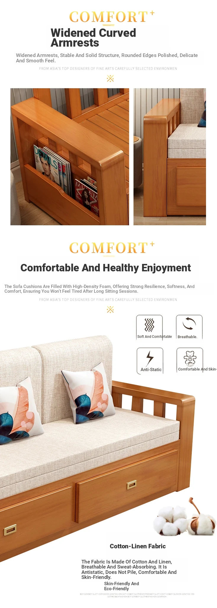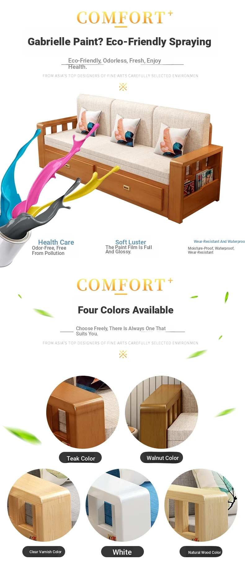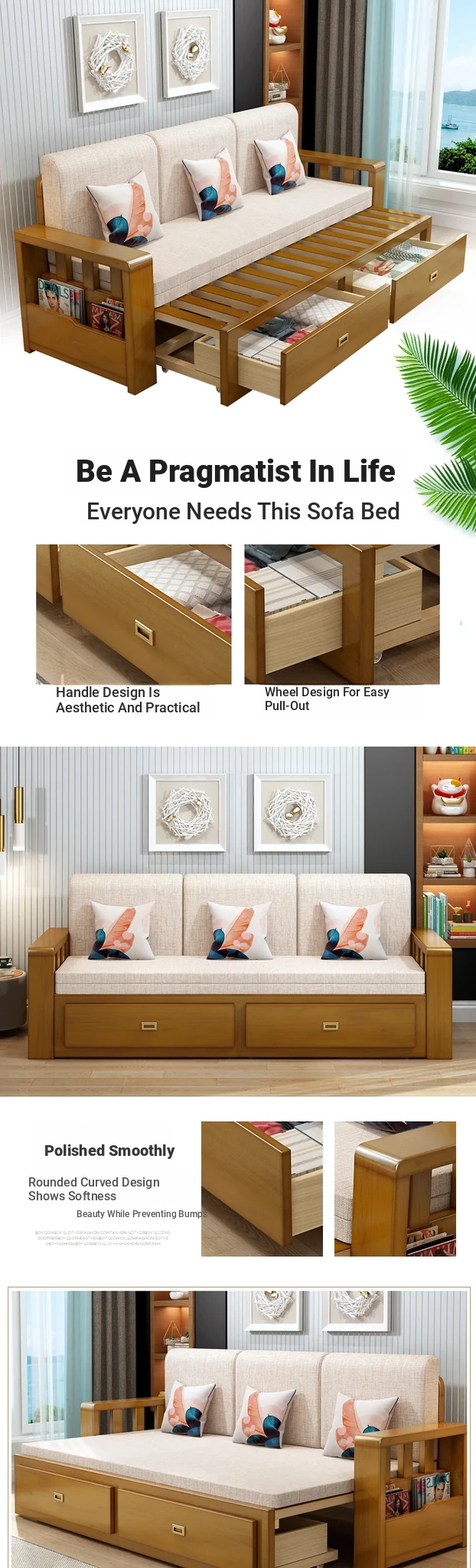 [Free Shipping to Hong Kong] Multifunctional Foldable Solid Wood Sofa Bed - 1.5m Space-Saving Pull-Out Design for Small Living Rooms - Perfect for Couples!