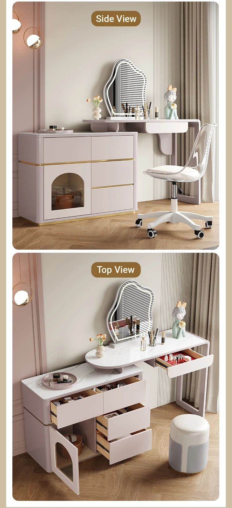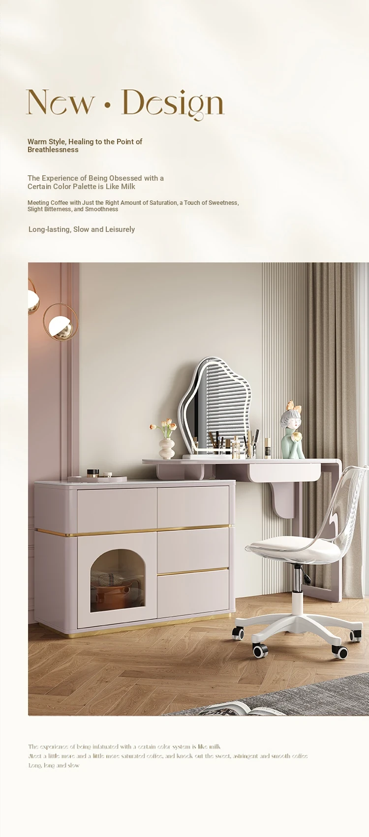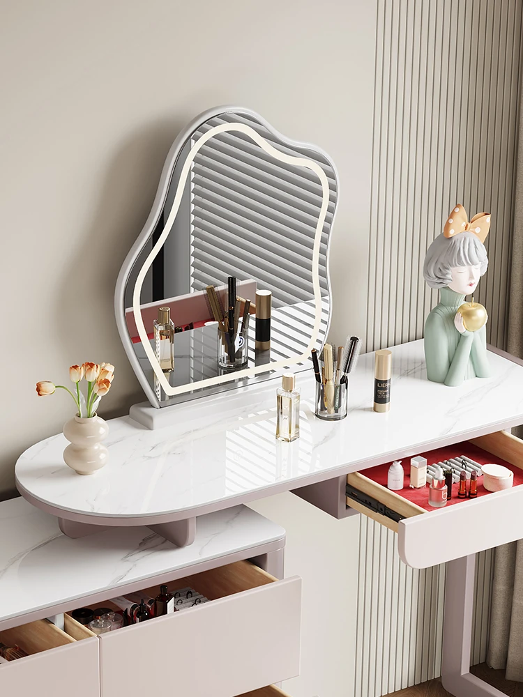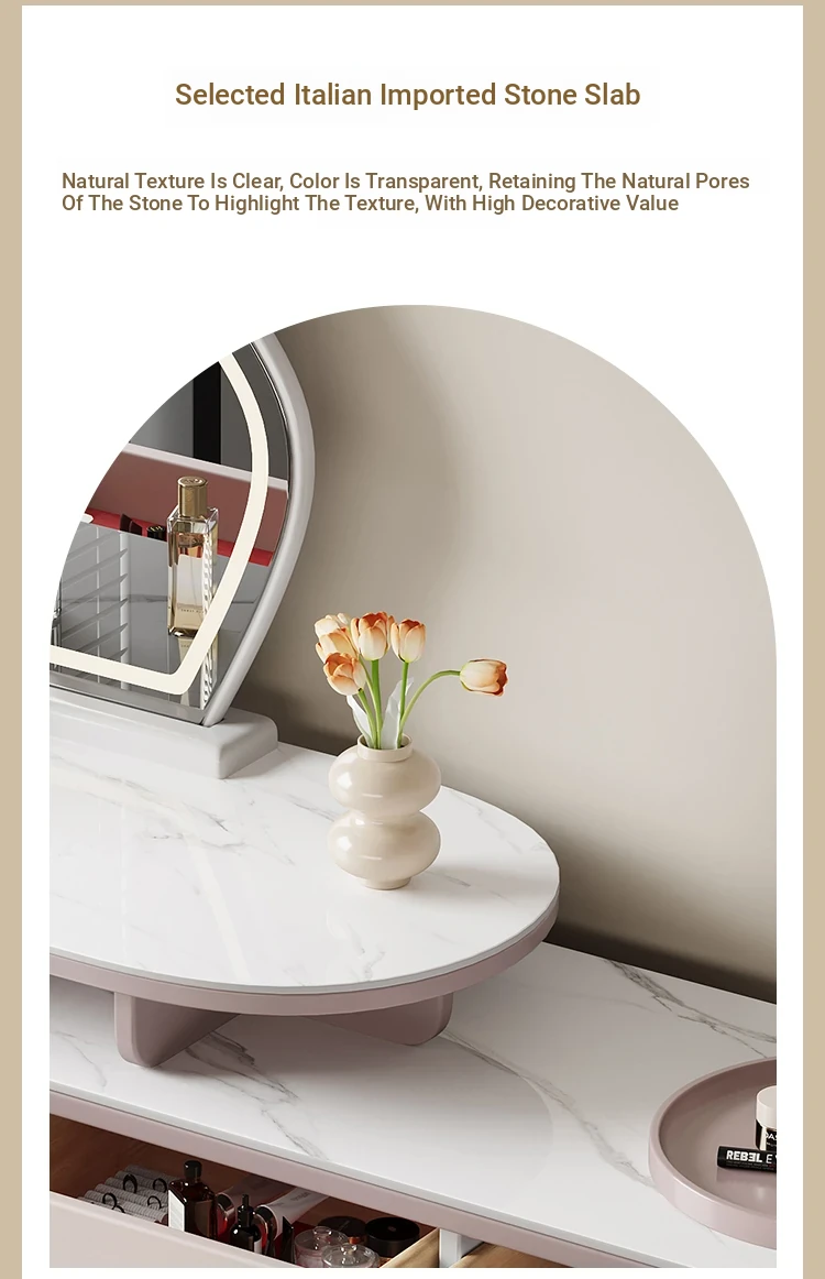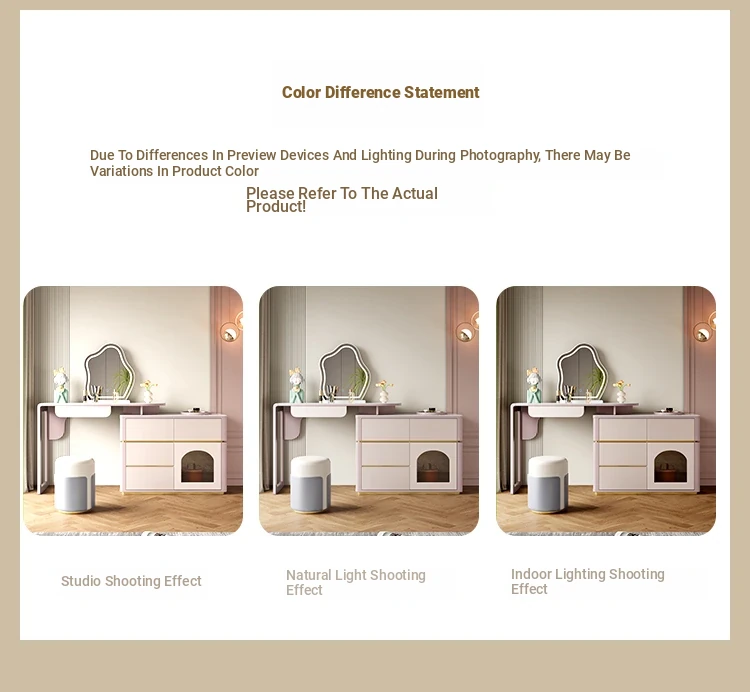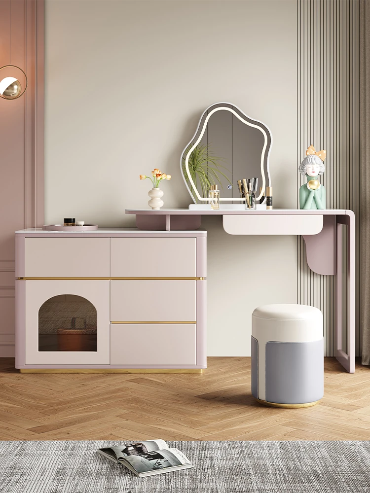 French Cream Vanity Makeup Table - Modern Minimalist Design with Expandable Storage - Elegant Small-Space Solution for Chic Homes